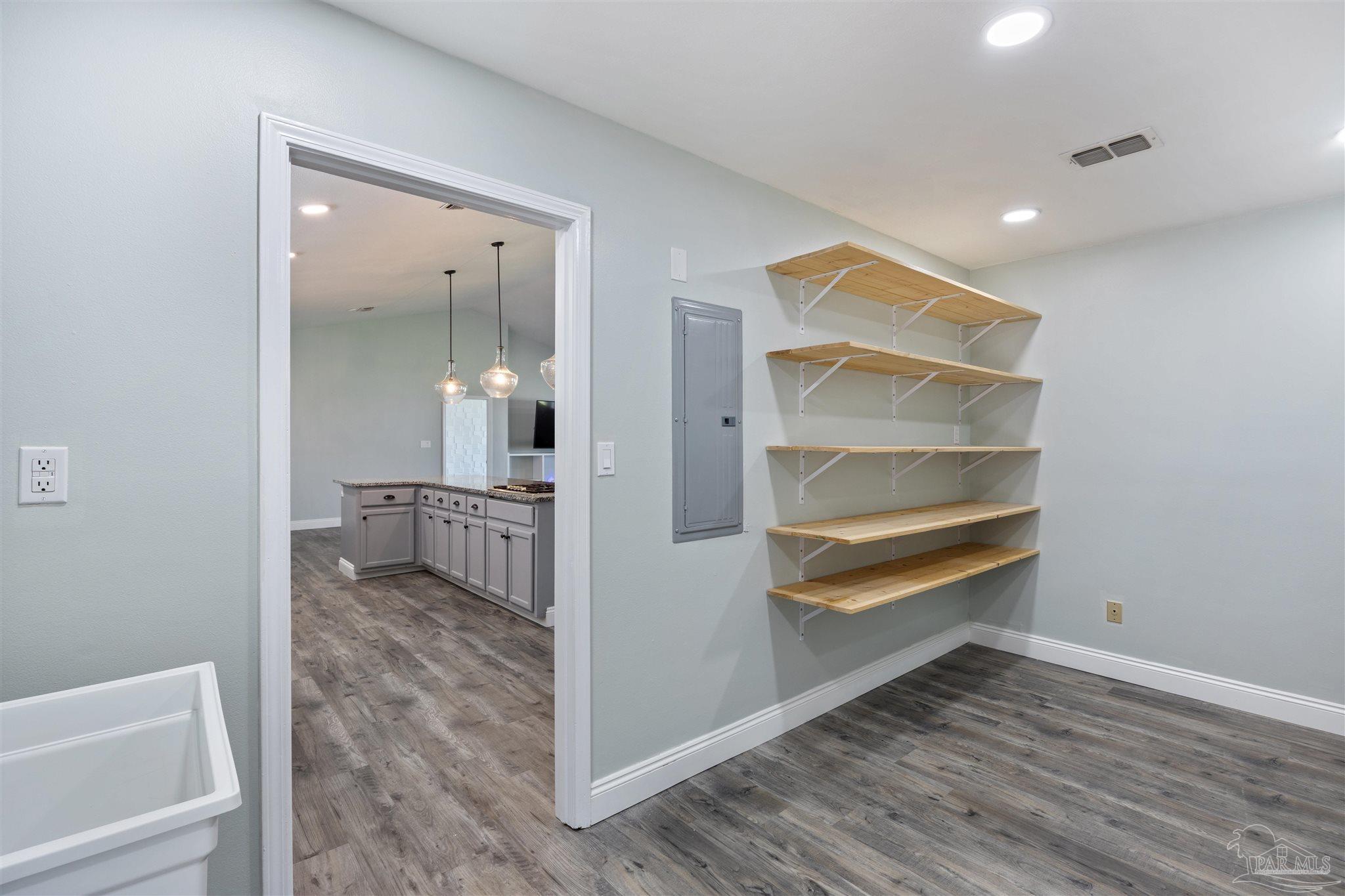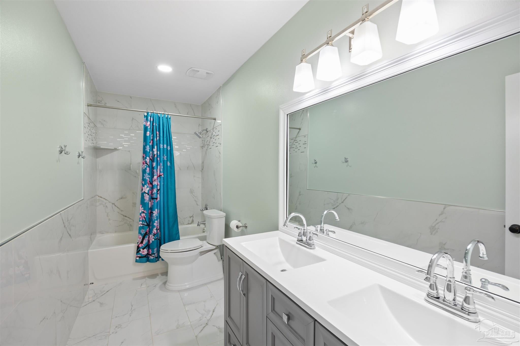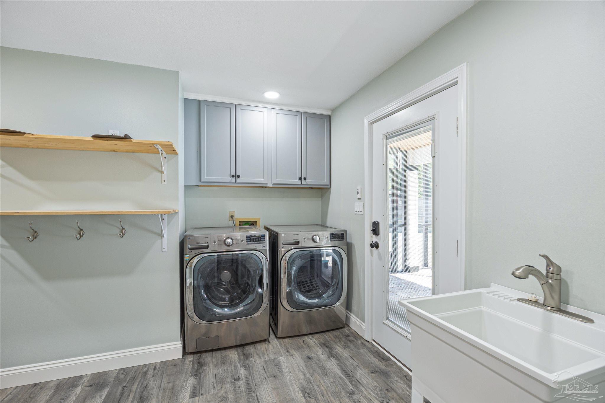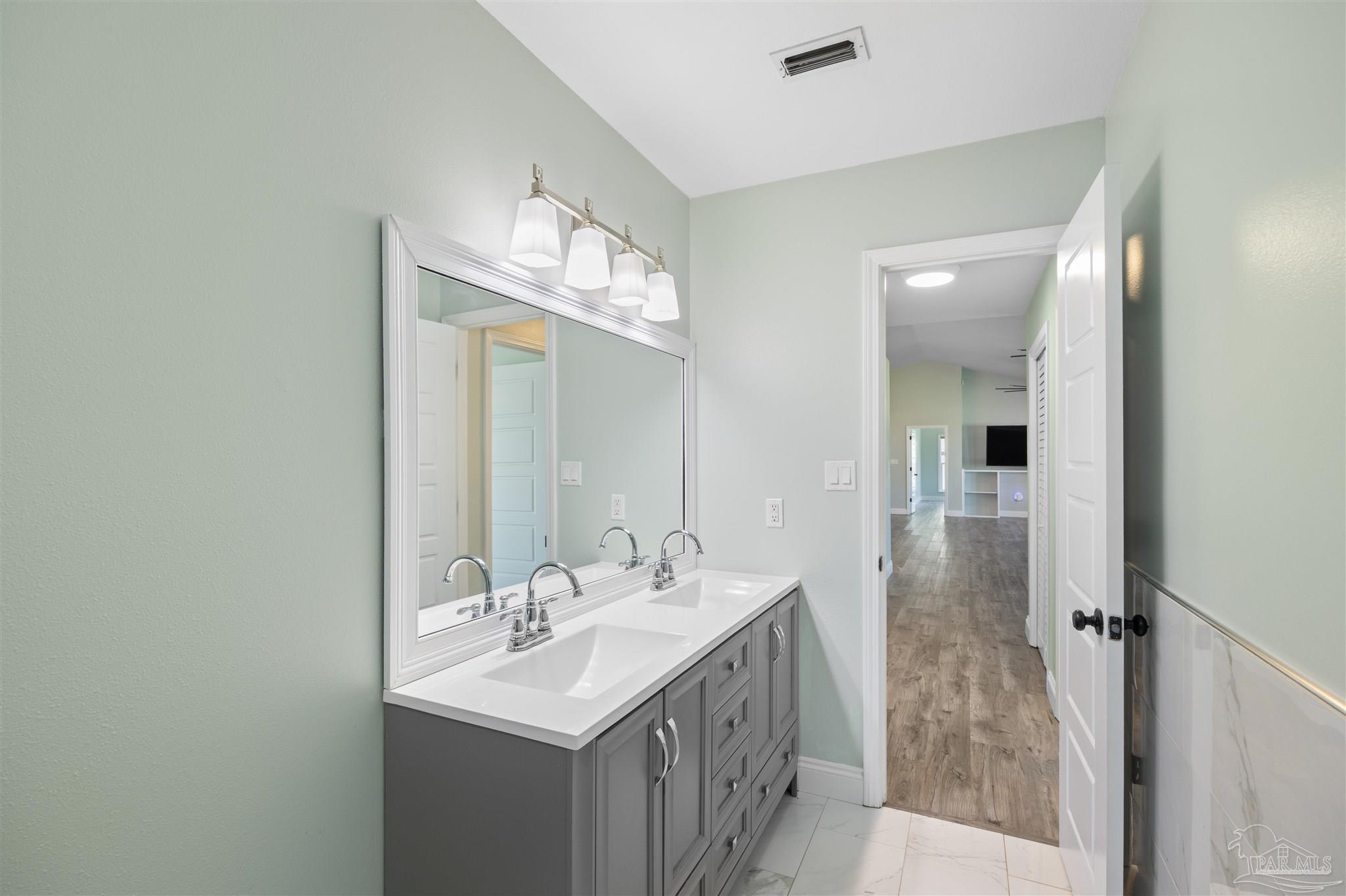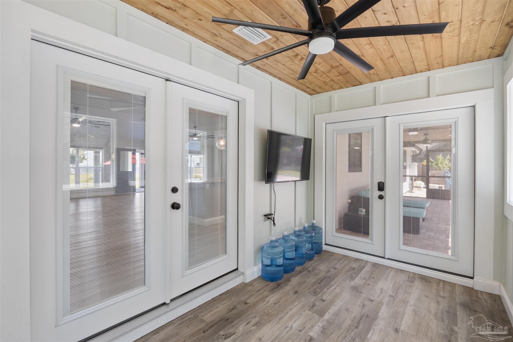 ENJOY PRIVACY, A SPACIOUS OPEN FLOOR PLAN WITH ABUNDANT NATURAL LIGHT THROUGHOUT, AND LIVING IN A GATED COMMUNITY ON A PRIVATE ISLAND. Located just minutes from NAS Pensacola, this custom 3BR/2BA home with pool offers modern luxury and coastal charm in the exclusive gated community of Innerarity Island. Set on an elevated cul-de-sac lot, the home features an open floor plan, soaring ceilings, impact-rated windows (2024), new doors (2024), smart-home upgrades, and glimpses of Perdido Bay from the wide front porch. The chef’s kitchen boasts a gas Thermador cooktop, wi-fi double ovens, granite counters, large island, walk-in pantry, spice pantry, wine fridge, and touch-activated faucet. French doors from multiple rooms open to the heated saltwater gunite pool (2020, new pump 2025) with tanning ledge, bubblers, flagstone coping, and paver deck (sealed 2025). Screen enclosure (2023), outdoor shower, she-shed/pool house, deckboard fence, 50-amp RV/EV service, and a sprinkler system powered by private well complete the backyard oasis. The primary suite offers French doors to the porch, walk-in closet, and spa-like bath with jetted tub, towel warmer, and oversized custom shower (2025). Guest rooms are spacious, with the front bedroom also opening to the porch. Guest bath updated with double vanity and polished tile. Additional features include heated/cooled Florida room, Nest thermostat, Ring cameras, fireplace, laundry with washer/dryer, and lush landscaped yard with mature trees and blueberry bushes. Community amenities include a bayfront pool, tennis courts, pickleball, basketball, kayak launch, park, and pier. Residents enjoy neighborhood traditions and abundant wildlife within this unique conservation-focused community. This is more than a home — it’s a lifestyle. Schedule your private showing today!