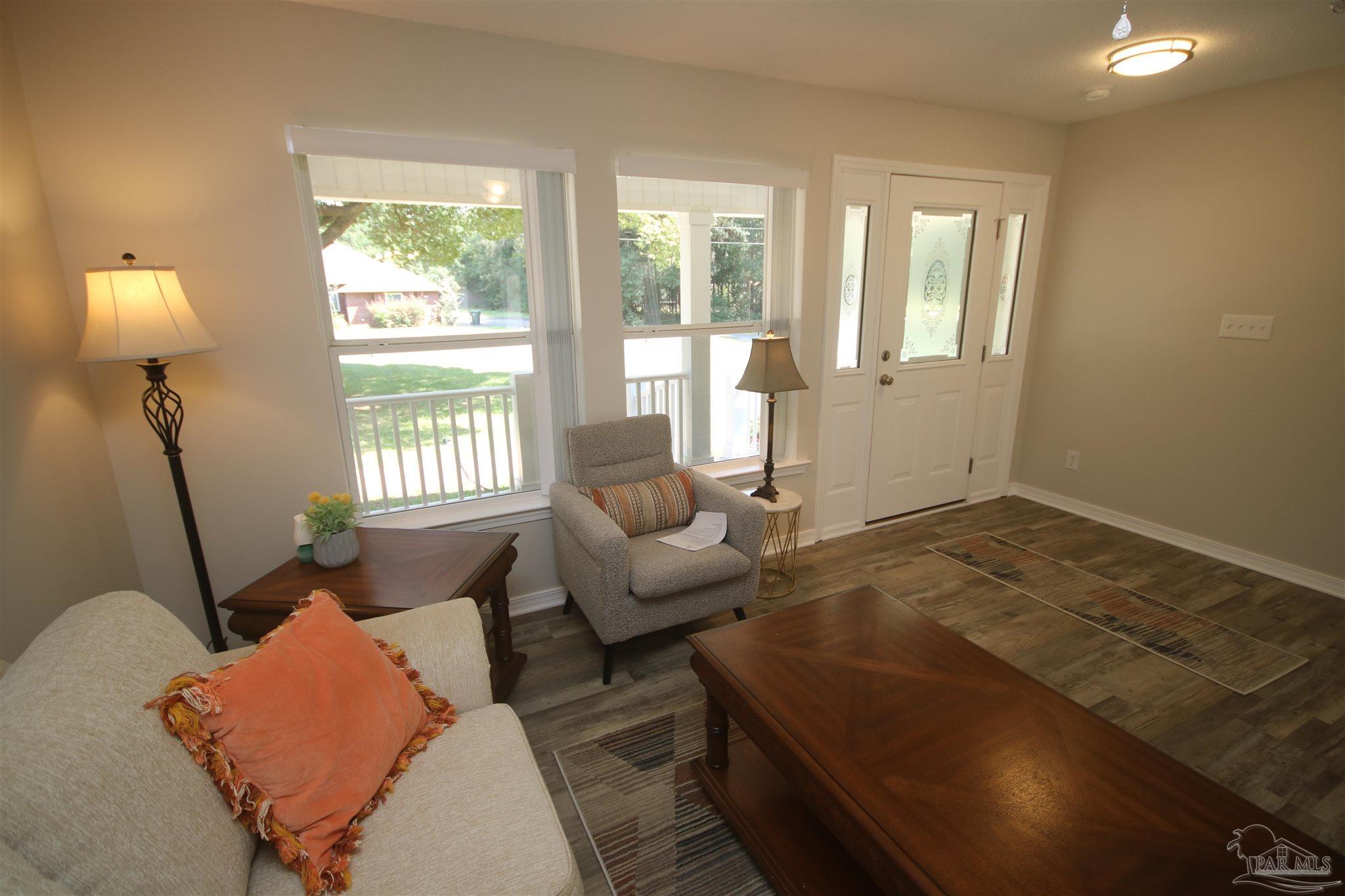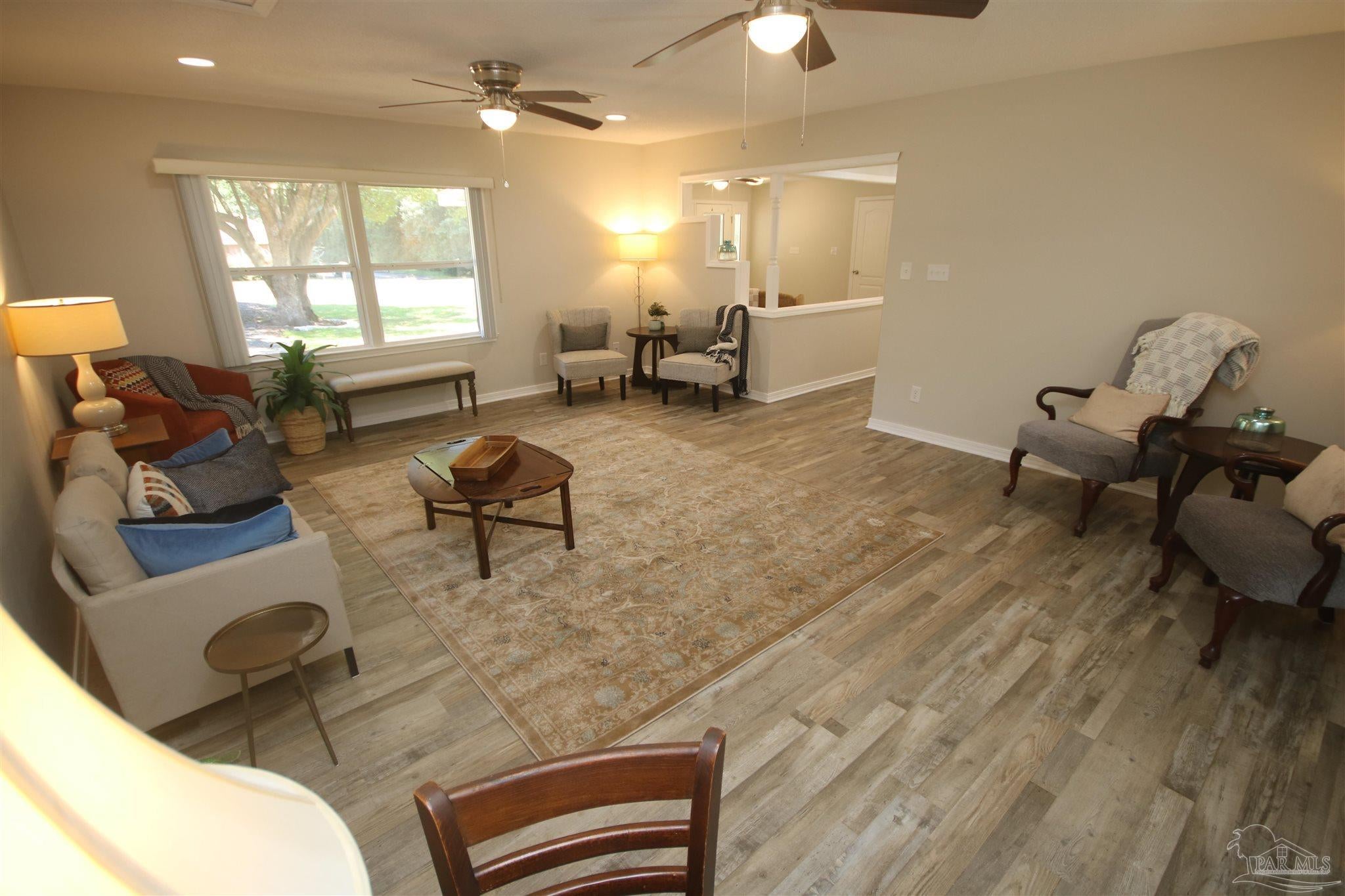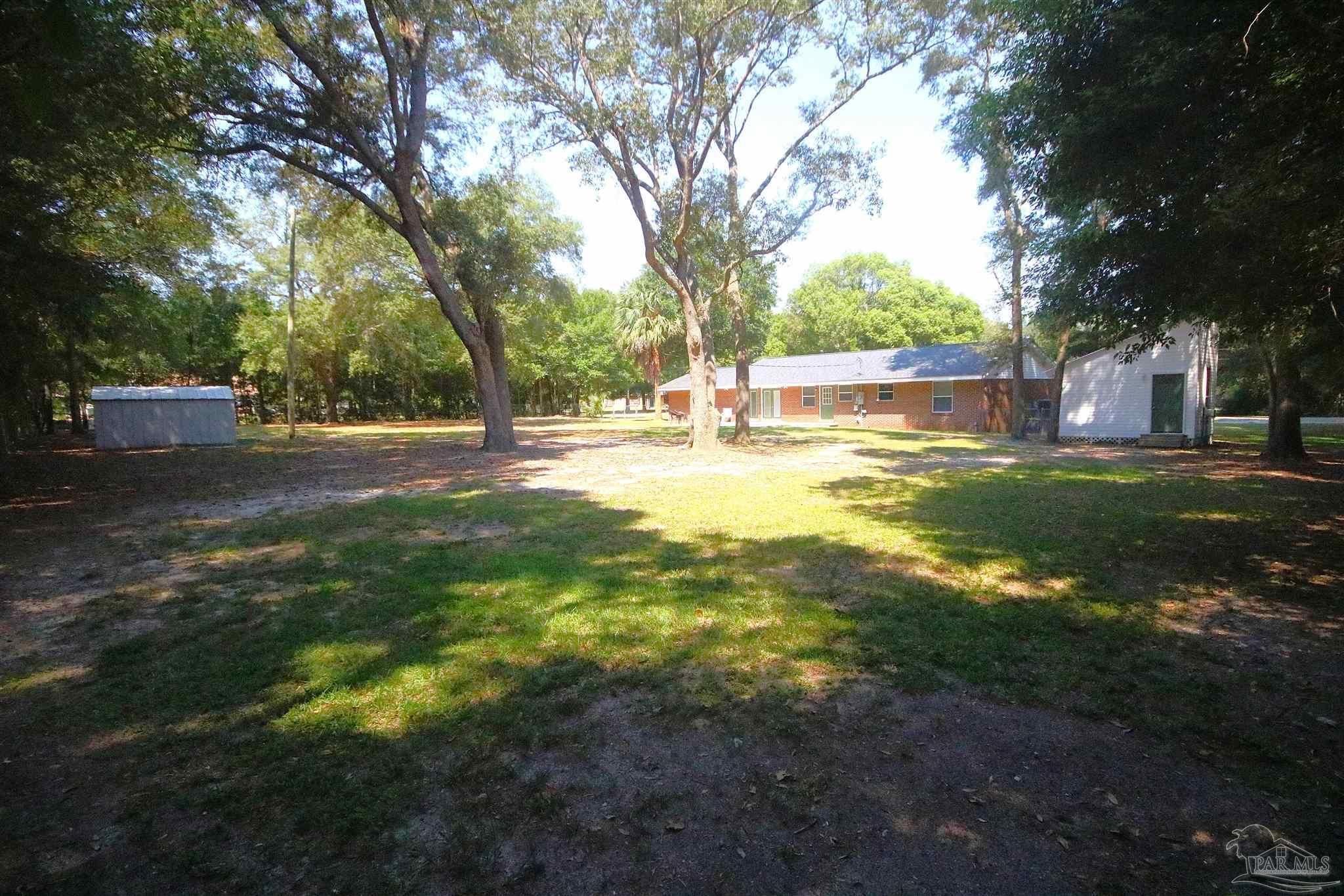 Open House Sat. 11-8-25, 1-4 pm. BEAUTIFULLY UPDATED in 2025! This beautiful open-concept home has been COMPLETELY REFRESHED with all NEW luxury vinyl plank flooring, NEW blinds, fresh interior paint, NEW ceiling fans in every room, and a NEW water heater. The kitchen shines with ALL new appliances, granite countertops, disposal, sink & fixture. The home offers two spacious living areas ~ a living room and a family room plus four spacious bedrooms along a private hallway. The primary suite includes two walk-in closets and a completely remodeled bath, including tub/shower, new solid wood cabinets w/ Granite countertops, mirrors, light fixtures, toilet, tile flooring & bathroom fan. The hall bath was also fully gutted and redone right down to new towel holders. Step outside through double French doors to the 17 x 24.6 patio and shaded backyard, boasting mature oaks, an air conditioned SHE SHED, and a 12 x 10 separate YARD BUILDING with NEW flooring. The backyard is fully fenced and has tons of space for your RV & is complete with a 60 amp RV HOOK UP. The front porch is perfect for enjoying cool relaxing evenings in your rocker. Additional features/ upgrades ~ NEW receptacles & switch plates, NEW door knobs & hinges, NEW railing & post on front porch, NEW French Doors in dining room, Sod in front yard, asphalt driveway, all NEW exterior light fixtures, NEW paint on She Shed along with NEW windows, NEW window unit, NEW vinyl flooring, NEW roof & blinds. NEW ROOF installed on home 9/2021, NEW HVAC 7/2023 inside & outside. Termite Bond w/ Extreme Termite. This is a floor plan that feels much larger than the square footage suggests. This home is in walking distance to Gospel Projects Youth Athletic Club. This home is TRULY a MUST SEE!