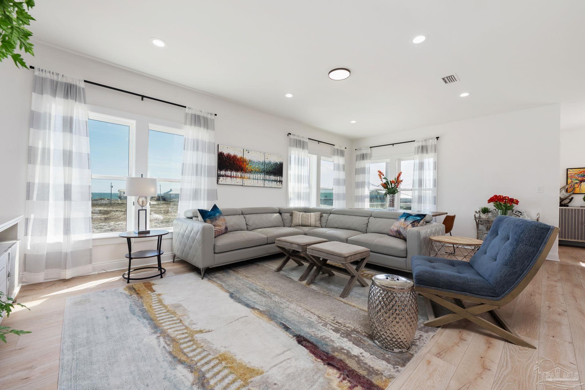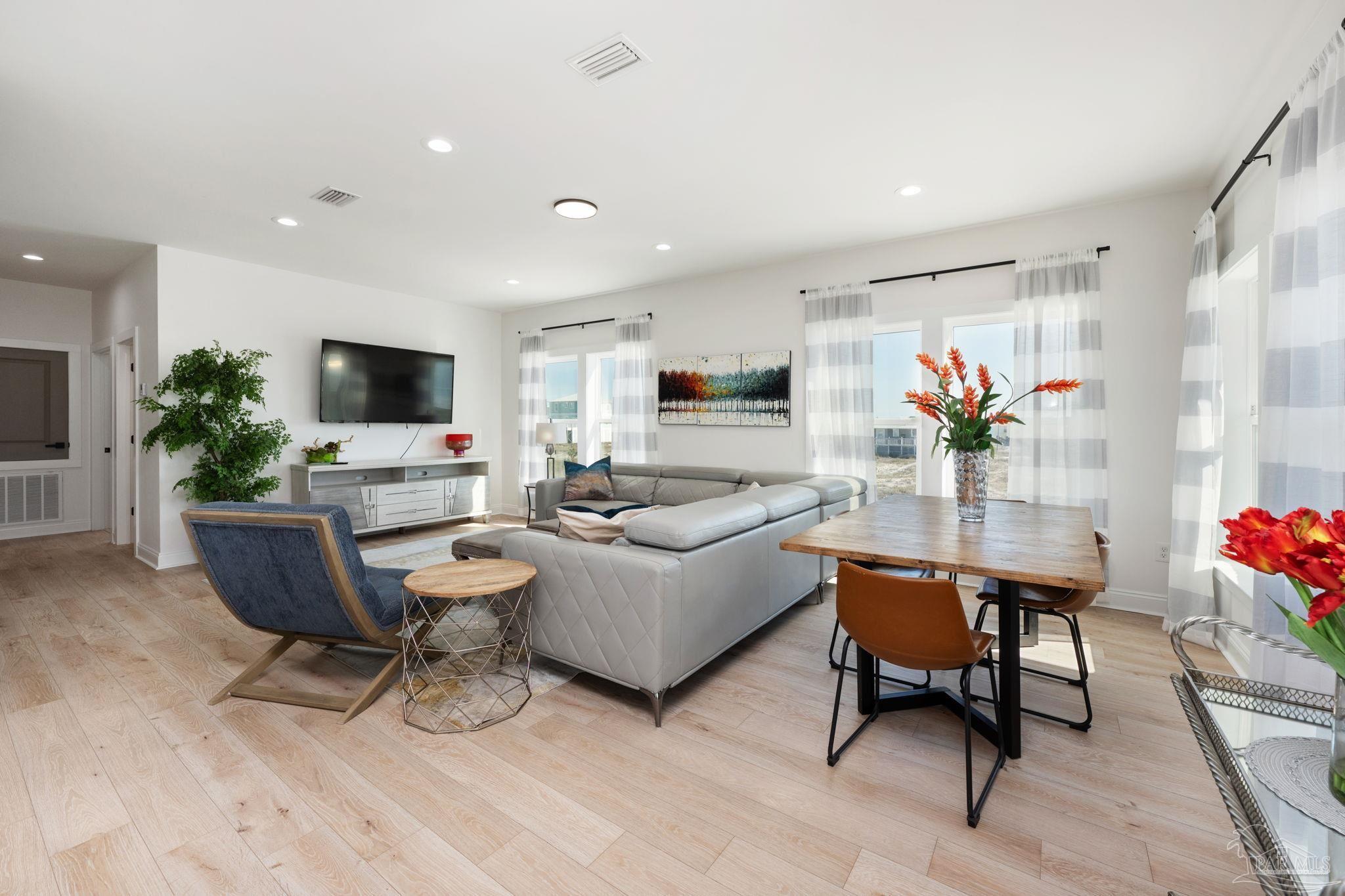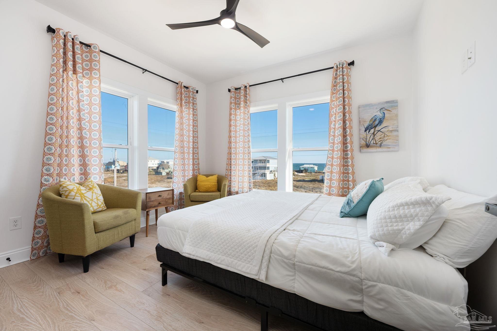 Short-term rental projections available in docs are coming in at $79,000+ in gross rental income! Welcome to your dream coastal retreat in the peaceful and serene Fort Morgan, Alabama! This stunning 6-bedroom, 4-bathroom home is being sold FULLY FURNISHED! Built in 2023, the home offers a modern design and an unbeatable location just steps from Gulf beach access. Whether you're looking for the perfect family getaway or a lucrative investment property, this home has it all. The second floor is the heart of the home, featuring an open-concept living and kitchen area where windows showcase breathtaking Gulf views. The modern kitchen is a chef’s delight, complete with quartz countertops, stainless steel appliances, and a sleek, contemporary design. A breakfast bar and two dedicated dining areas provide plenty of seating for large gatherings. Just off the main living space, a balcony offers the perfect spot to unwind while soaking in the coastal breeze. The primary suite is also on this level, boasting a spa-like ensuite bathroom with a large standing shower, garden tub, double vanities, and a private water closet.Upstairs, the third floor hosts five expansive bedrooms, making it easy to accommodate multiple beds for large groups. One features its own ensuite bathroom, making it a second potential primary suite, while another has direct access to another private balcony. A shared bathroom is conveniently situated between two of the bedrooms. Throughout the home, beautiful wood-look tile adds warmth and durability. This home is truly a gem! It has enough parking for 12 vehicles, or a boat or RV, as well as a dedicated laundry room. Nestled on a peaceful street, yet close to a nearby boat launch, parks, golf courses, and dining. This fully furnished home is an exceptional opportunity for a full-time residence, vacation getaway, or investment property. Experience the best of Fort Morgan—schedule your showing today!