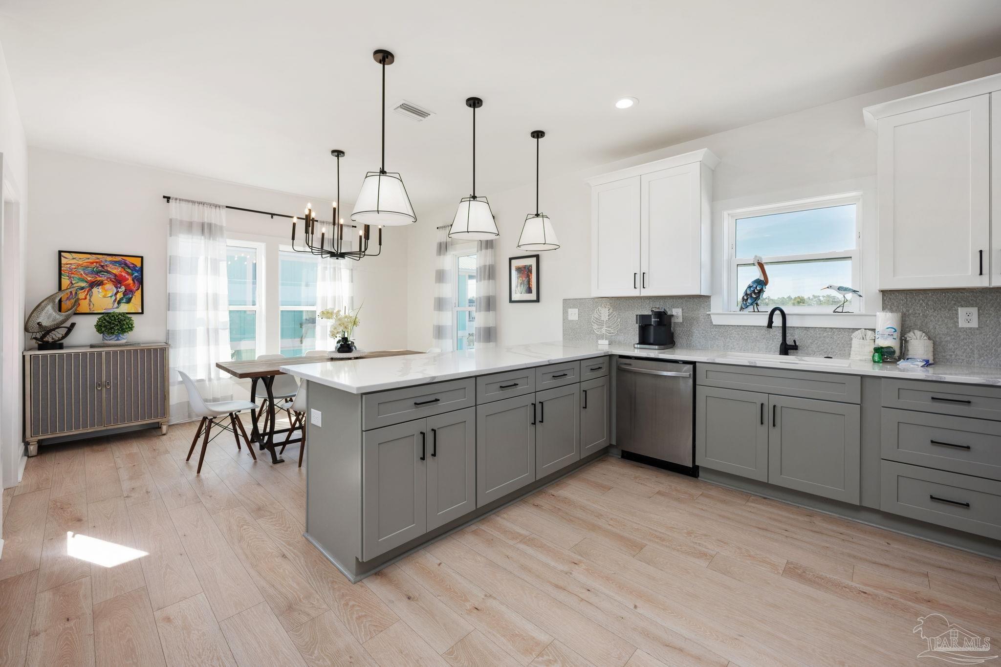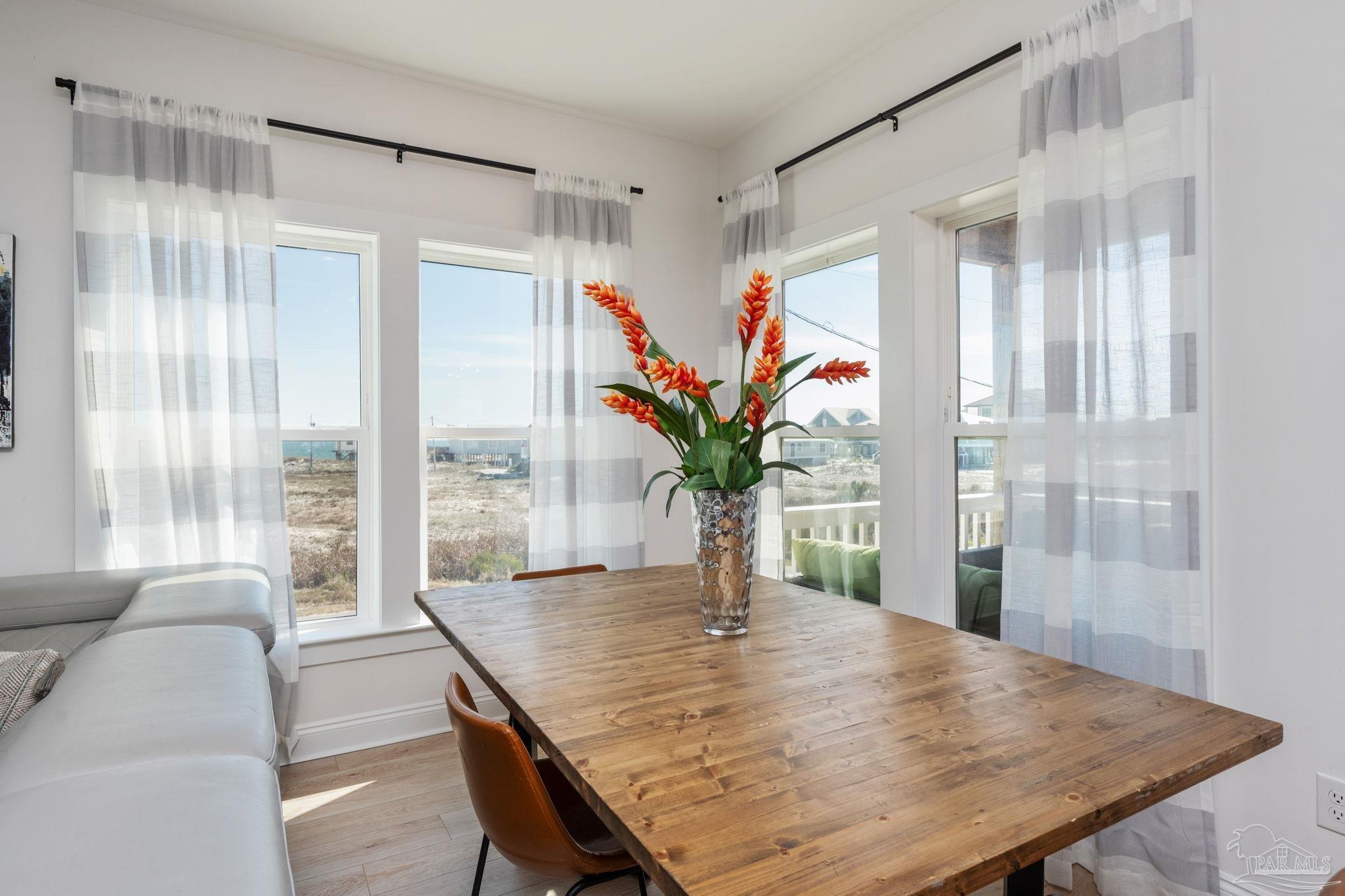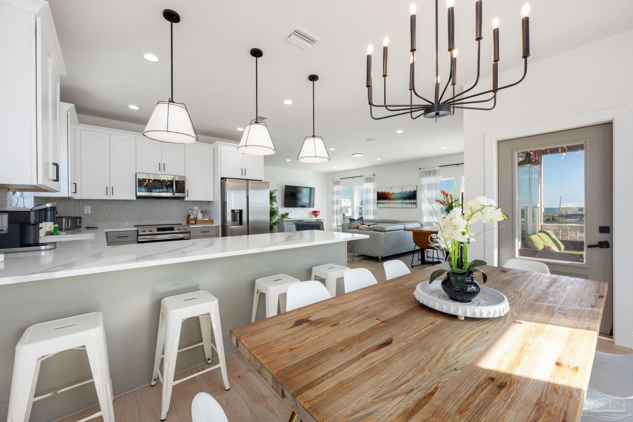 Short-term rental projections available in docs are coming in at $79,000+ in gross rental income! Welcome to your dream coastal retreat in the peaceful and serene Fort Morgan, Alabama! This stunning 6-bedroom, 4-bathroom home is being sold FULLY FURNISHED! Built in 2023, the home offers a modern design and an unbeatable location just steps from Gulf beach access. Whether you're looking for the perfect family getaway or a lucrative investment property, this home has it all. The second floor is the heart of the home, featuring an open-concept living and kitchen area where windows showcase breathtaking Gulf views. The modern kitchen is a chef’s delight, complete with quartz countertops, stainless steel appliances, and a sleek, contemporary design. A breakfast bar and two dedicated dining areas provide plenty of seating for large gatherings. Just off the main living space, a balcony offers the perfect spot to unwind while soaking in the coastal breeze. The primary suite is also on this level, boasting a spa-like ensuite bathroom with a large standing shower, garden tub, double vanities, and a private water closet.Upstairs, the third floor hosts five expansive bedrooms, making it easy to accommodate multiple beds for large groups. One features its own ensuite bathroom, making it a second potential primary suite, while another has direct access to another private balcony. A shared bathroom is conveniently situated between two of the bedrooms. Throughout the home, beautiful wood-look tile adds warmth and durability. This home is truly a gem! It has enough parking for 12 vehicles, or a boat or RV, as well as a dedicated laundry room. Nestled on a peaceful street, yet close to a nearby boat launch, parks, golf courses, and dining. This fully furnished home is an exceptional opportunity for a full-time residence, vacation getaway, or investment property. Experience the best of Fort Morgan—schedule your showing today!