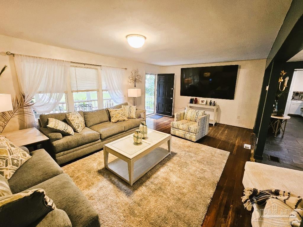 Golf Community Gem With Modern Upgrades. This beautifully renovated home is move-in ready, featuring a brand-new 4-ton HVAC, new electrical, plumbing, roof, and hot water heater. Located on a huge corner lot in a quiet golf community, you’ll love being directly across from the park and walking trail. Inside, the open floor plan showcases original refinished oak floors in the spacious living room, flowing naturally into a bright dining area and modern kitchen. The chef’s kitchen shines with granite countertops, all new cabinets, stainless steel appliances—including a Wi-Fi enabled stove—and new tile flooring. The split floor plan provides privacy with a large master suite, two closets, an updated private bath, and refinished oak floors. Guests will enjoy a freshly upgraded bathroom with a garden tub, jacuzzi jets, and floor-to-ceiling tile. Additional perks include a large garage with storage, a laundry room, and extra outbuildings for flexible use. Don’t miss this rare property offering modern comfort, timeless charm, and unbeatable location. Interior Highlights • Kitchen: Granite countertops, brand-new cabinets, stainless steel appliances (including Wi-Fi enabled stove), and new tile flooring. • Living & Dining: Spacious open floor plan with original refinished oak floors in the living room, seamlessly connecting to the dining area. • Bathrooms: Guest bath features a garden tub with jacuzzi jets and full wall-to-wall tile. Private master bath adjoins a large master bedroom with two closets and refinished oak floors. • Layout: Split floor plan provides privacy for the homeowner and guests. Additional Features • Quiet neighborhood in a golf course community. • Located directly across from a park and walking trail. • Large garage with ample storage plus a laundry room (in need of refinishing). • Expansive corner lot on a curve; Large outdoor space