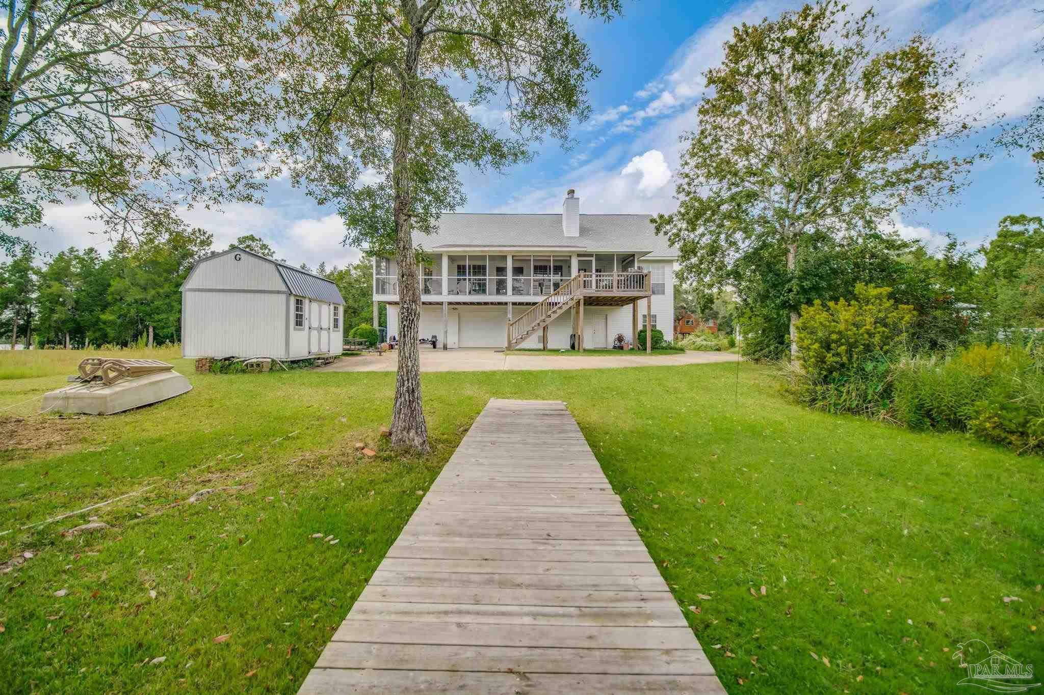 Step into this stunning waterfront home that offers the perfect blend of luxury, comfort, and outdoor recreation. Tucked away near the end of a peaceful cul-de-sac, this stately residence boasts impressive curb appeal from the front and breathtaking water views from the back, overlooking the beautiful Wright Basin off Blackwater River. As you enter the main level, you are welcomed by an open floor plan and a family room that features high ceilings, a cozy fireplace with an updated mantel and shelving, tons of natural light and panoramic views of Basin! The kitchen flows seamlessly from the living area and features an eat-in dining area, bar seating, a new wall oven and microwave and ample cabinet space. For those that enjoy hosting, this home features a formal dining room as well as an additional space, previously used as a bar area that is equipped with plumbing for any future endeavors utilizing the space. The oversized primary bedroom offers a fireplace with an updated mantel, extra closet space for storage, plenty of natural light, and two french doors that open out onto the screened back porch that stretches over the entire width of the home and overlooks the basin. The primary bathroom is massive with a new oversized walk-in shower, two vanities with updated cabinetry and countertops, a makeup vanity, and massive walk in closet. The two additional bedrooms are large in size with copious closet and storage space, and sit on opposite ends of the third level, allowing for extra privacy. The ground level is an oversized garage that has an additional area perfect for a game room or tool shop. TONS of storage here! Walk out to the 52ft of waterfront views and enjoy a pier with a full sized covered boat lift powered with dual motors, with an additional covered space for seating. Fish from the dock or relax with friends! This home truly checks all the boxes, call or schedule a showing today.