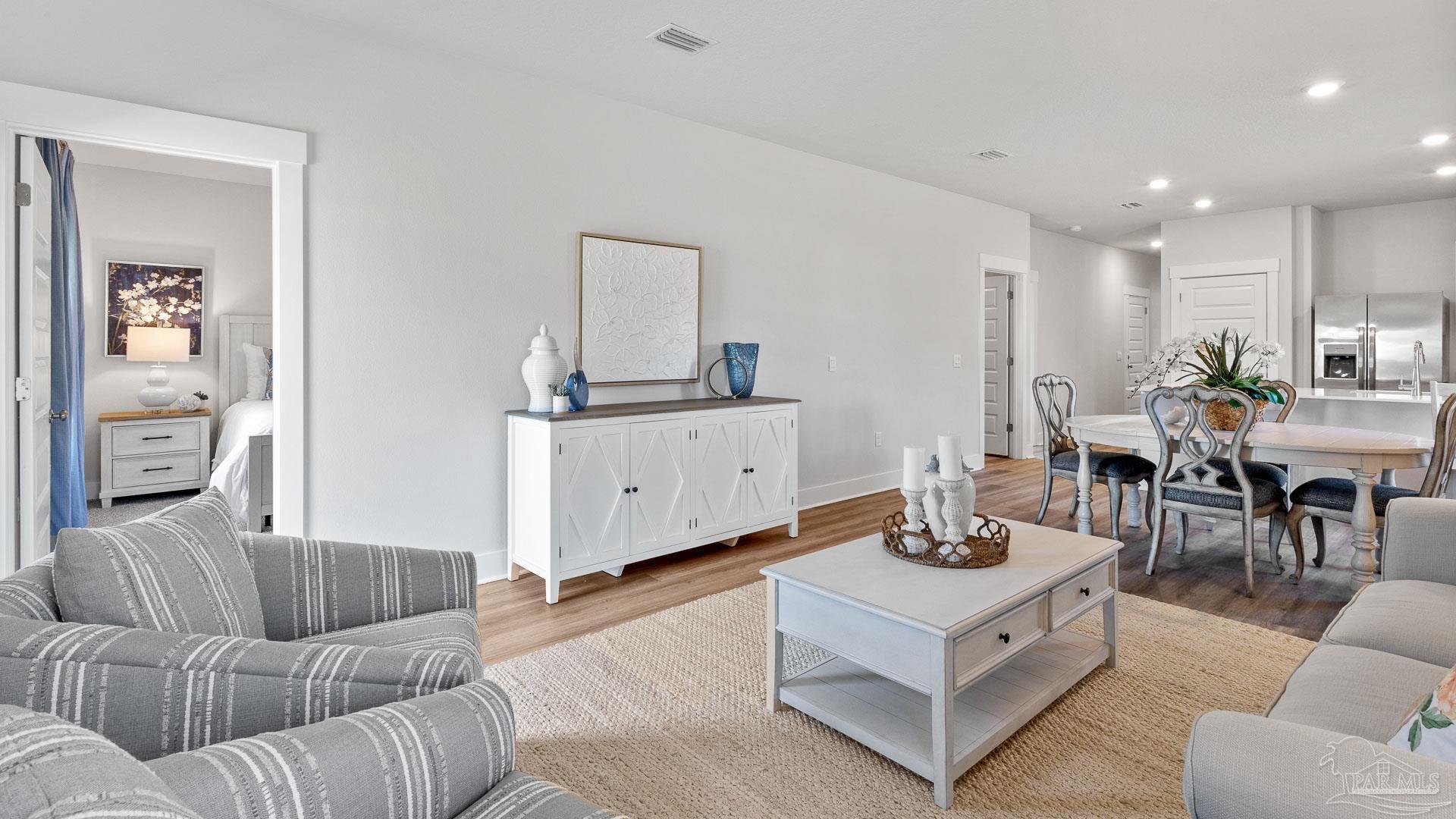 Explore the Camilla Plan at Martin Preserve in Pensacola! This beautiful single-story home offers over 1,500 square feet, featuring 4 bedrooms, 2 bathrooms, and a 1-car garage with an open layout. Inside, you'll find easy access to the first three bedrooms and a guest bathroom, along with a spacious living area that combines the great room, kitchen, and dining space. The kitchen is a dream, equipped with an island, quartz countertops, and stainless-steel appliances. Enjoy meals in the dining area or on the back patio. The primary bedroom includes an attached bathroom with a vanity, walk-in shower, and large closet. This home includes the Smart Home Connected Package. Conveniently located near Blue Angel Parkway and Highway 98, you're just a short drive from the Pensacola Naval Air Station, shopping, dining, schools, and beautiful beaches. Call today to schedule your tour!
