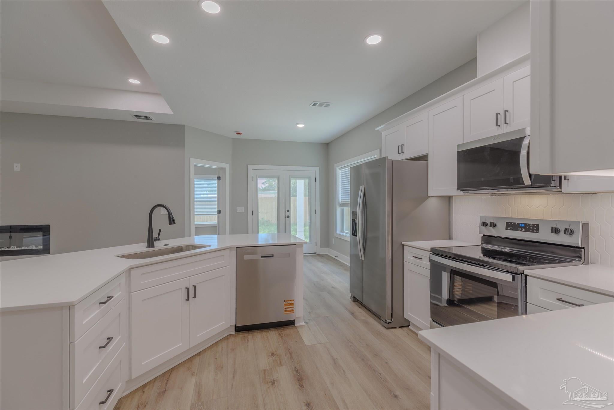*UNDER CONSTRUCTION* Discover a rare opportunity to preview your brand-new home before it’s even complete! The builder has a vacant listing featuring the exact same floor plan. Schedule a showing today and experience the craftsmanship and quality design that make this home stand out unlike any other in this price point! This beautifully crafted 3-bedroom, 2-bathroom home offers 1,472 sq. ft. of thoughtfully designed living space in a well-established neighborhood. From the moment you walk in, you’ll appreciate the meticulous attention to detail and high-end finishes throughout. Highlights include: • Durable, stylish 20 mil luxury vinyl plank flooring throughout (no carpet) • Quartz countertops in the kitchen and bathrooms • Full Whirlpool stainless steel kitchen appliance package (including refrigerator and dishwasher) • Tile backsplash, garbage disposal with air switch, and soft-close cabinetry (not an option, they are included) • Open-concept living area with a striking 48-inch linear electric fireplace and tray ceilings (also featured in the primary bedroom) • Spa-inspired primary en suite with a large tile shower, plus a shower/tub combo in the secondary bath • Modern touches like anti-fog LED backlit bathroom mirrors, LED lights in the closets, and wood shelving Additional features: • Ceiling fans in all rooms • 6-inch baseboards and window blinds throughout • Fenced backyard with 6-ft privacy fence • Attic storage for added convenience • Hurricane protection fabric shields • Durable Hardie board lap siding Enjoy a true sense of community just minutes from Pensacola’s beaches, downtown, NAS Pensacola, and only five minutes from Joe Patti’s Seafood Market. Some photos are virtually staged.