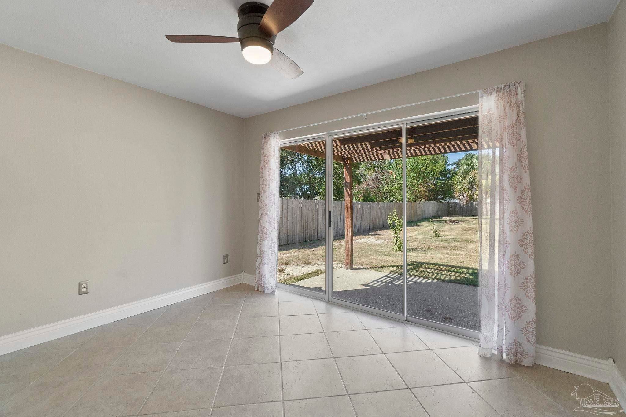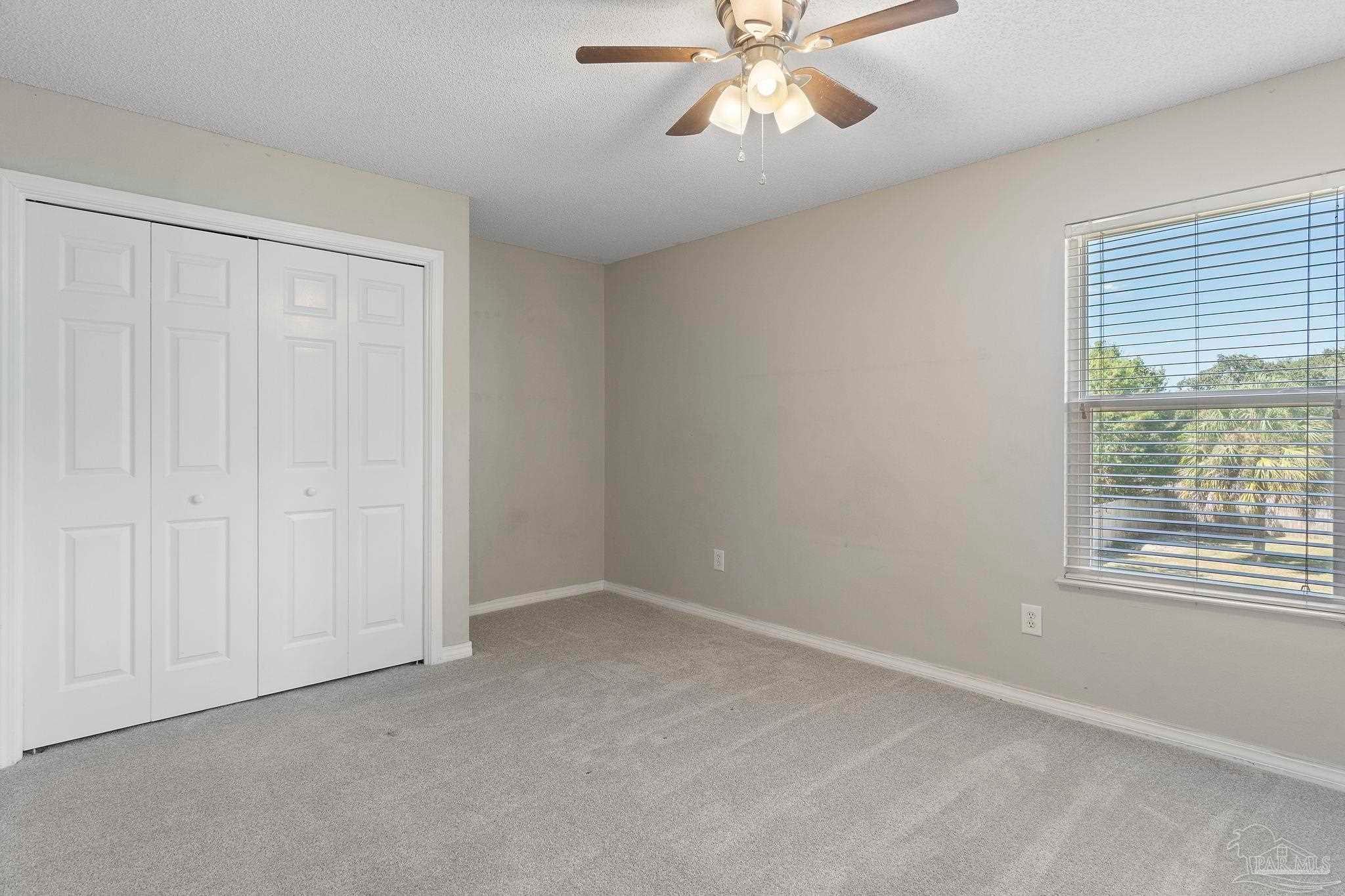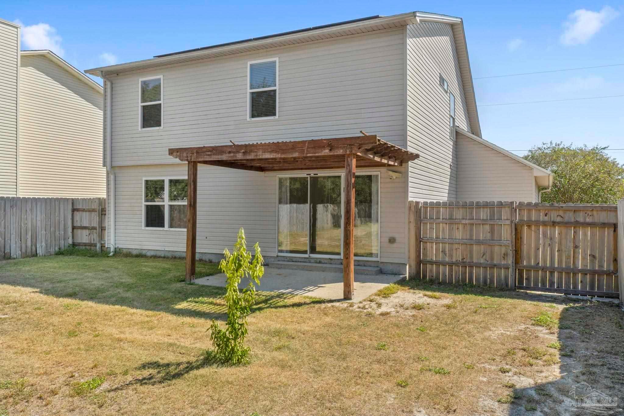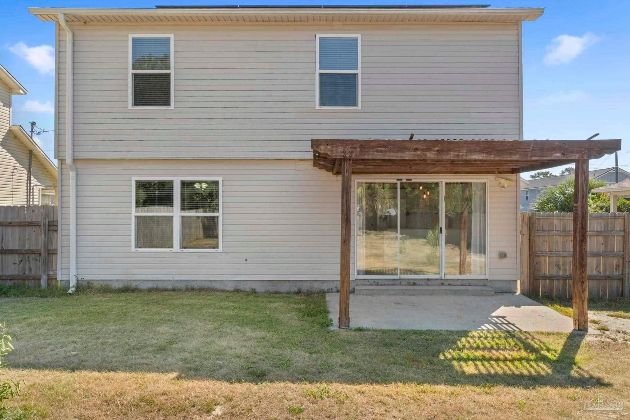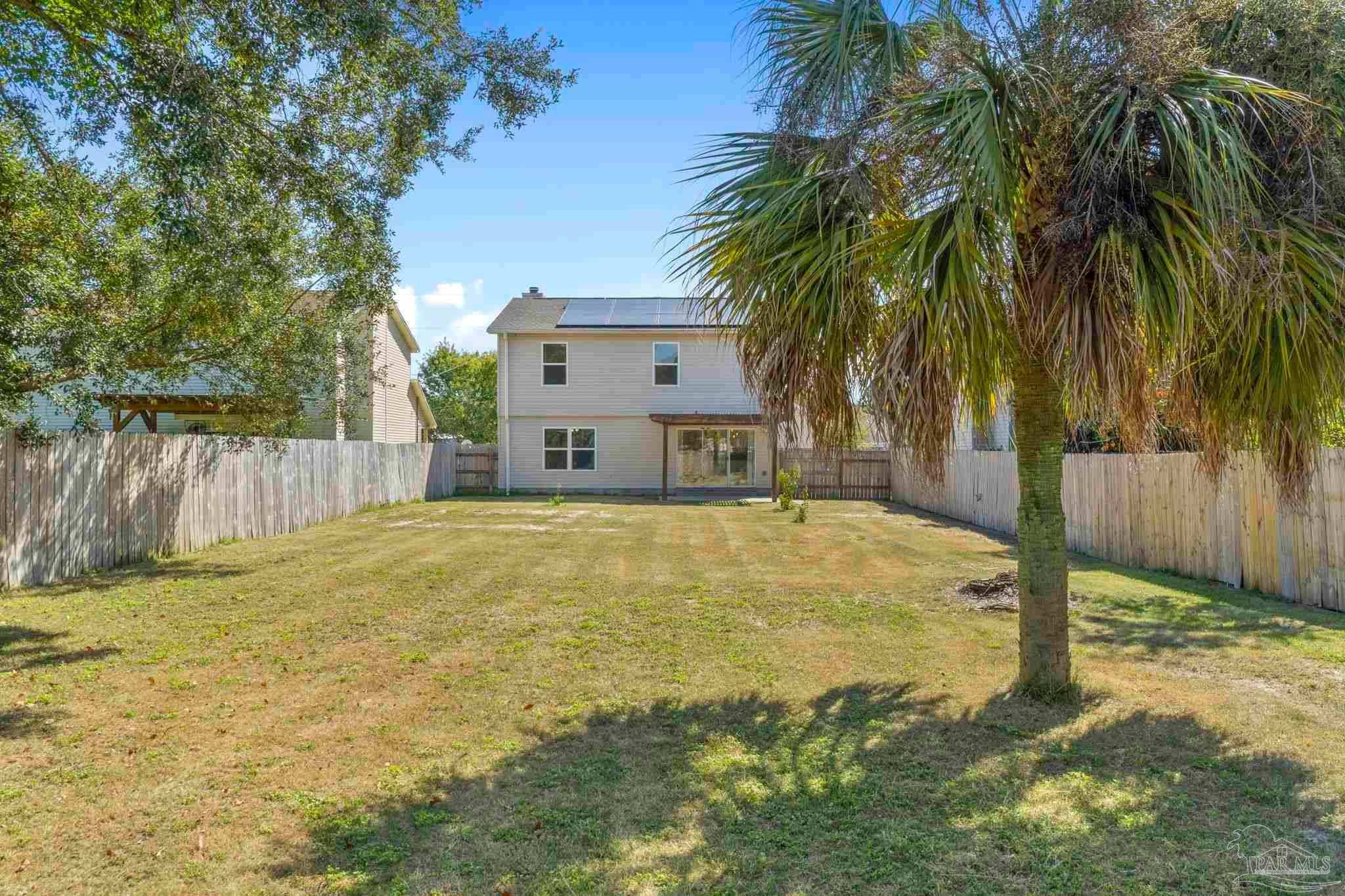 Welcome to this move-in-ready 4 bedroom, 2.5 bathroom home in East Navarre. Conveniently located just minutes from Hwy 98 and 87 - for easy commuting to I-10, local dining, shopping, grocery stores, and just 2 miles from the sugary white sands of Navarre Beach! Great location for local military bases, too! Just 10 miles to Hurlburt Field! This property features a 2022 Roof with paid off solar panels, a 2023 HVAC, and a 2017 water heater - ensuring peace of mind and low electricity bills! Through the front door of this split floor plan home, you enter the living room with vaulted ceiling that opens up to the second floor. Featuring a first floor primary suite with ensuite, laundry room leading to the 2 car garage, kitchen with breakfast bar, dining area just off the kitchen with a view of the expansive fenced-in backyard space, and a half bath for guests downstairs. The additional 3 bedrooms and full bathroom are up the stairs by the front door. Schedule your showing today!
