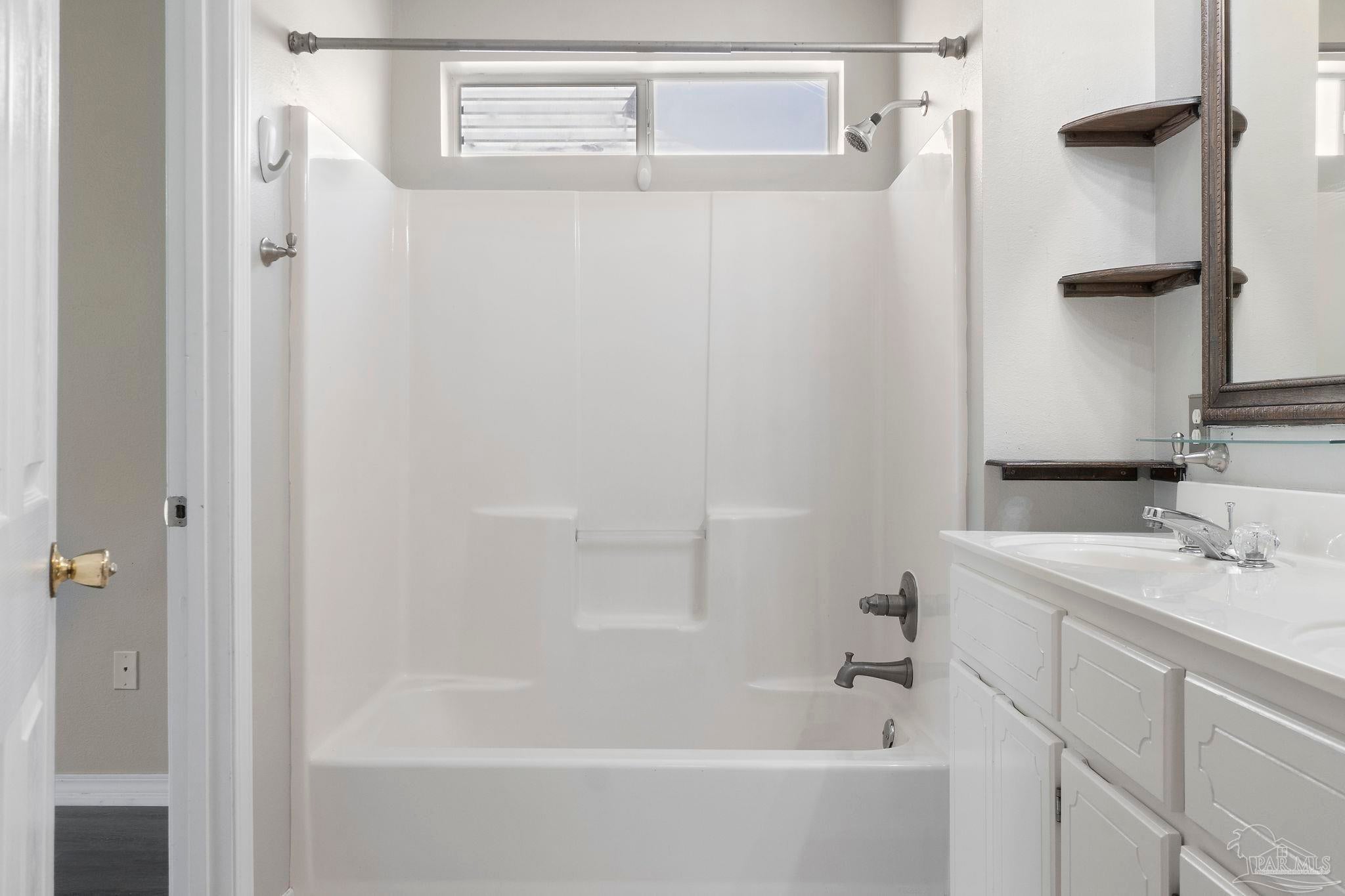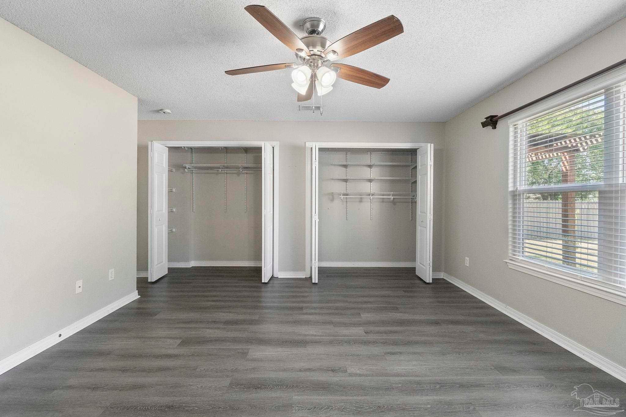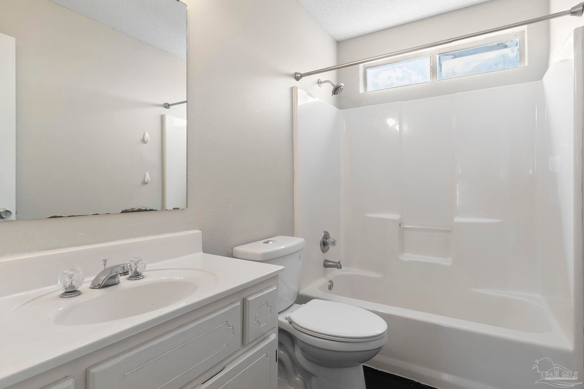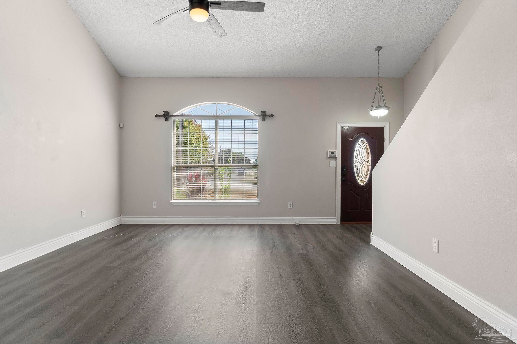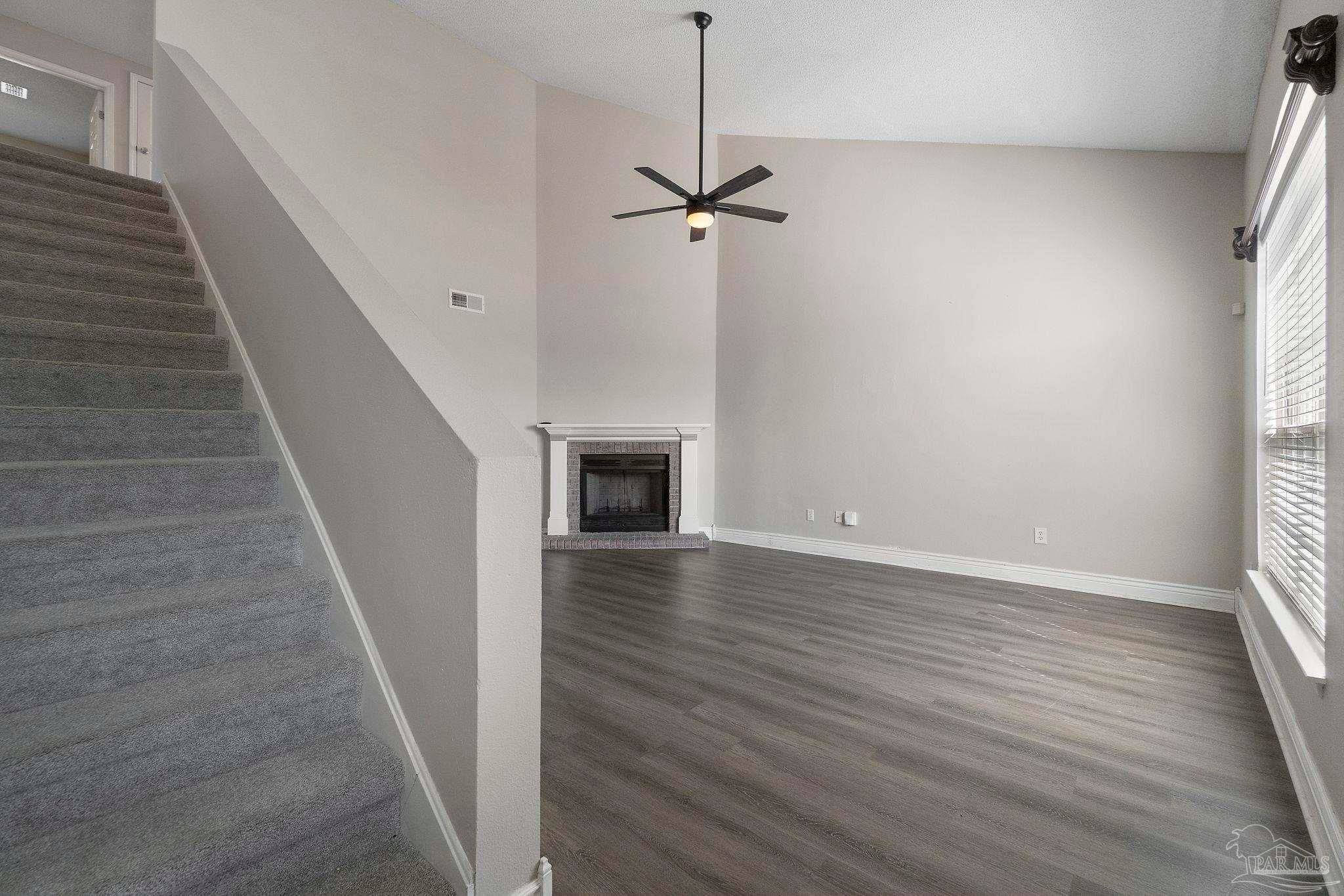 Welcome to this move-in-ready 4 bedroom, 2.5 bathroom home in East Navarre. Conveniently located just minutes from Hwy 98 and 87 - for easy commuting to I-10, local dining, shopping, grocery stores, and just 2 miles from the sugary white sands of Navarre Beach! Great location for local military bases, too! Just 10 miles to Hurlburt Field! This property features a 2022 Roof with paid off solar panels, a 2023 HVAC, and a 2017 water heater - ensuring peace of mind and low electricity bills! Through the front door of this split floor plan home, you enter the living room with vaulted ceiling that opens up to the second floor. Featuring a first floor primary suite with ensuite, laundry room leading to the 2 car garage, kitchen with breakfast bar, dining area just off the kitchen with a view of the expansive fenced-in backyard space, and a half bath for guests downstairs. The additional 3 bedrooms and full bathroom are up the stairs by the front door. Schedule your showing today!