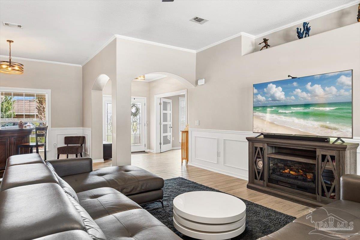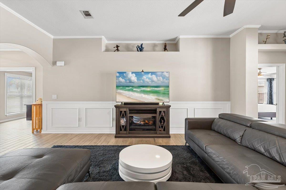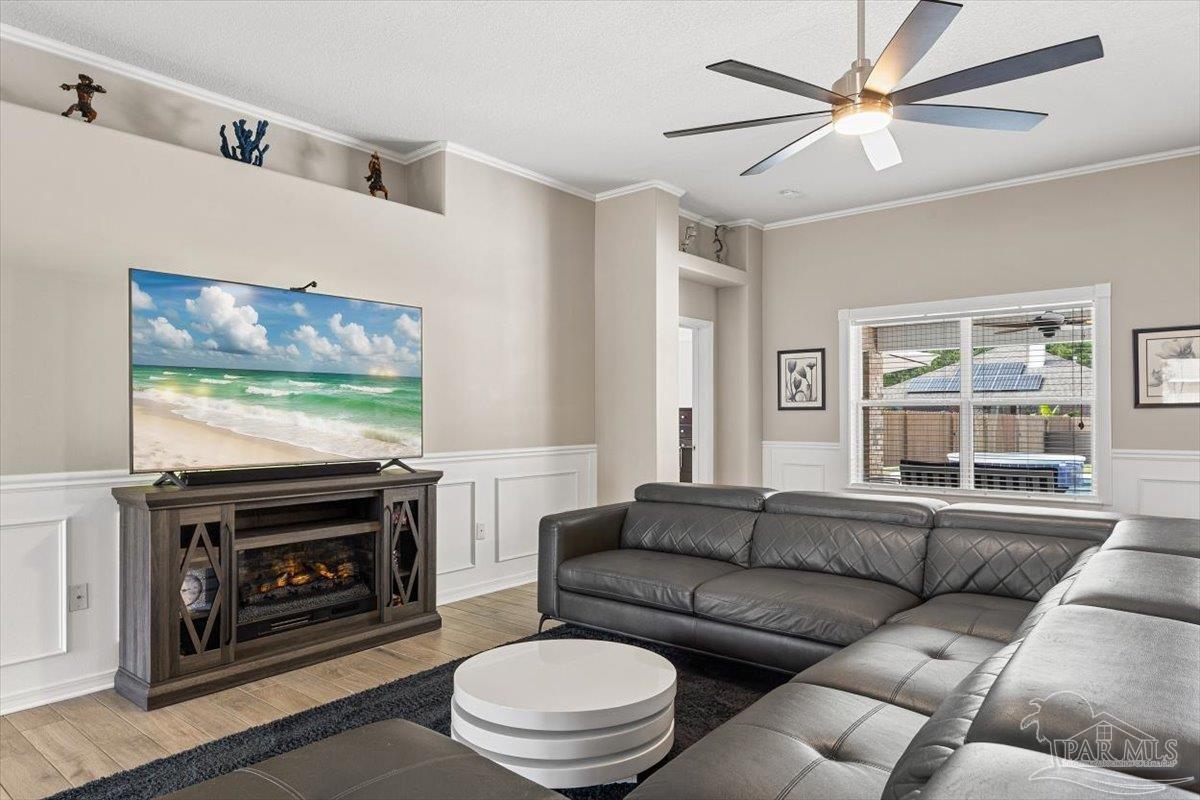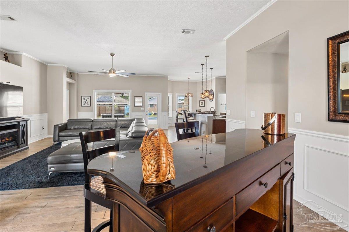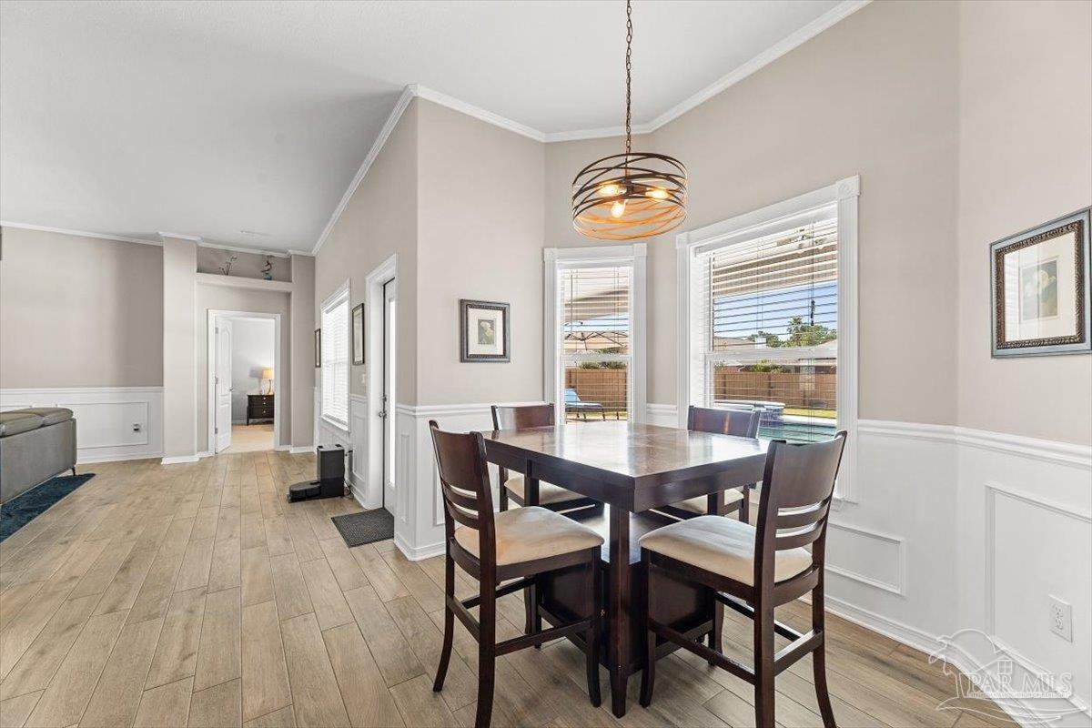 Inviting 4-Bedroom, 3-Bathroom Home with 3-Car Garage, New Roof and Sparkling Gunite Saltwater Pool! Designed for modern living and effortless entertaining, this spacious residence boasts an open-concept floor plan with high ceilings and elegant wood design porcelain tile. Custom woodworking details—such as framed windows and doors, along with classic wainscoting—add a touch of luxury and craftsmanship to the living spaces. The heart of the home is a seamless flow between the living room, dining room, and kitchen—perfect for gatherings or relaxing evenings. The formal dining area and casual breakfast nook offer flexible dining options to suit any occasion. A versatile flex space with double French doors provides the ideal setting for a home office, fitness room, or children's playroom. Featuring four generously sized bedrooms and three well-appointed bathrooms, including a convenient pool bath with access to both the lanai and interior, this home is built for comfort and functionality. The kitchen is a chef’s dream with granite countertops, an oversized breakfast bar, updated lighting, stainless steel appliances, and an electric smooth-top range—complete with a gas stub-out for future conversion. An expanded drive way and second driveway for Boat and RV parking provides additional parking space. Step outside to your fenced private backyard oasis: a sparkling gunite saltwater pool with hot tub, expansive pool deck, and patio area with pergola—ready for entertaining, relaxing, or fun with family and friends. This home offers the perfect blend of elegance, comfort, and resort-style living—don’t miss the opportunity to make it yours! Convenient to Hurlburt, schools, shopping and beaches.