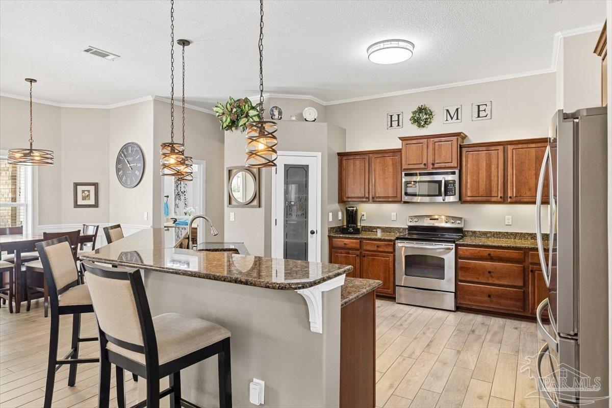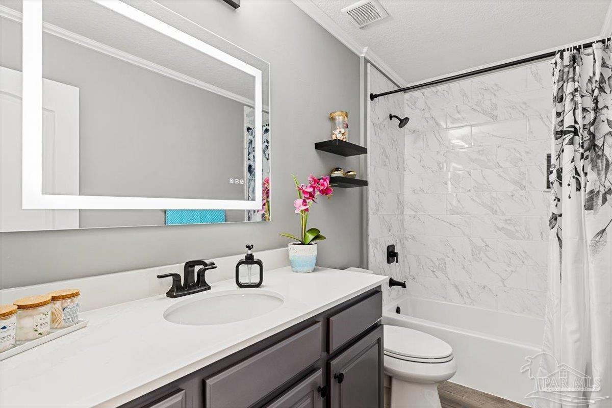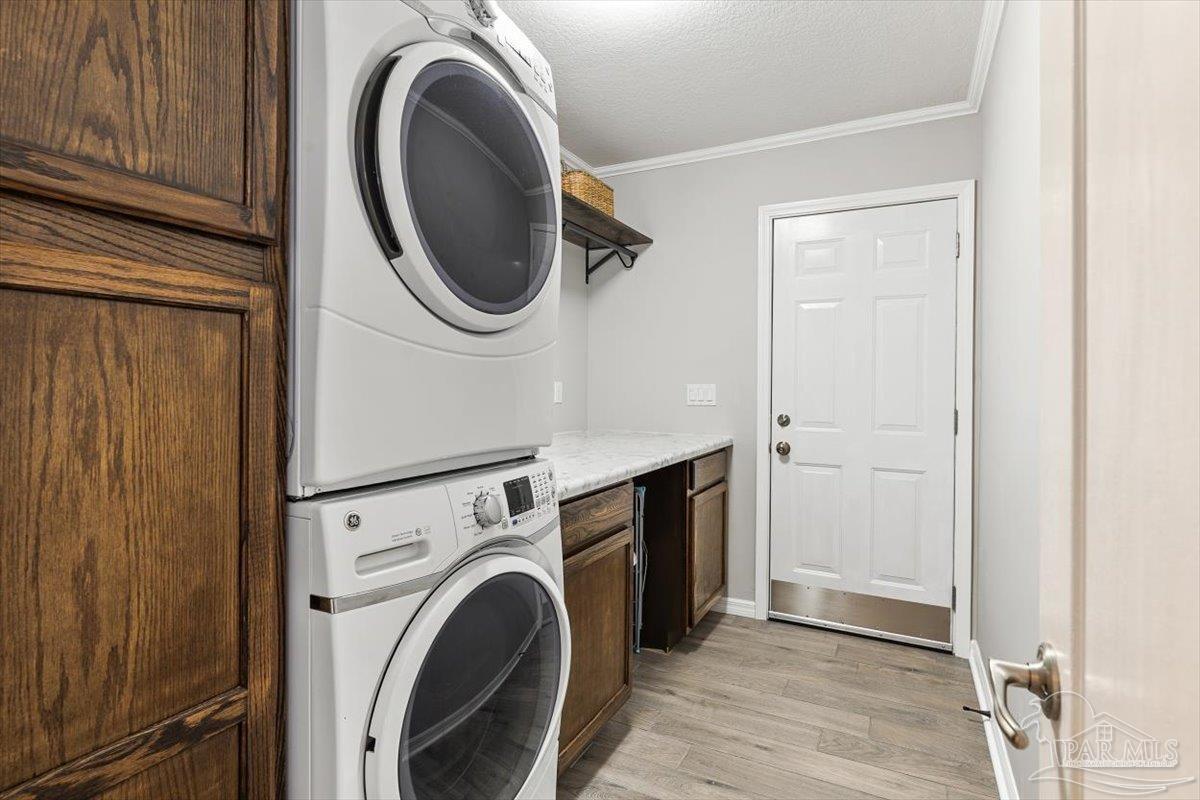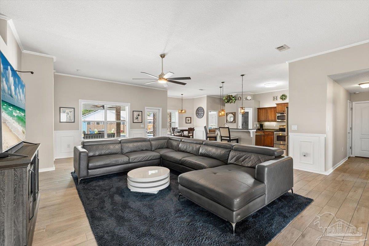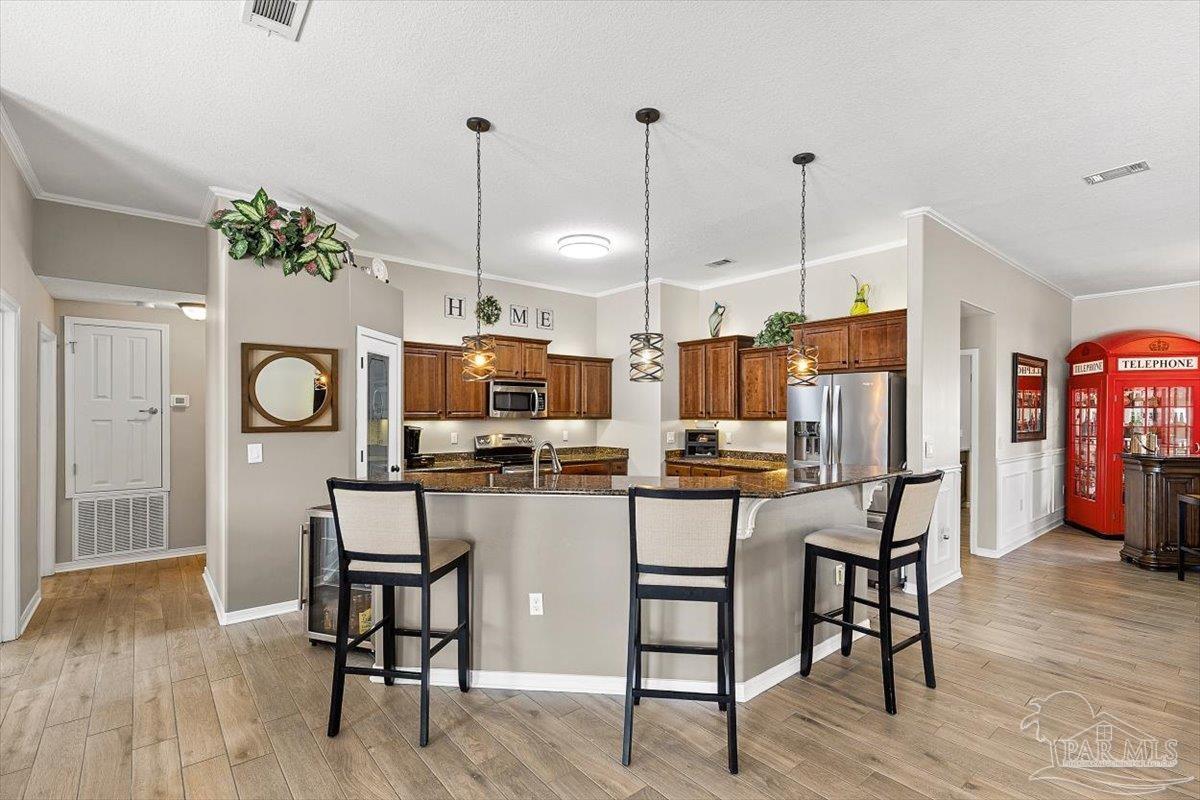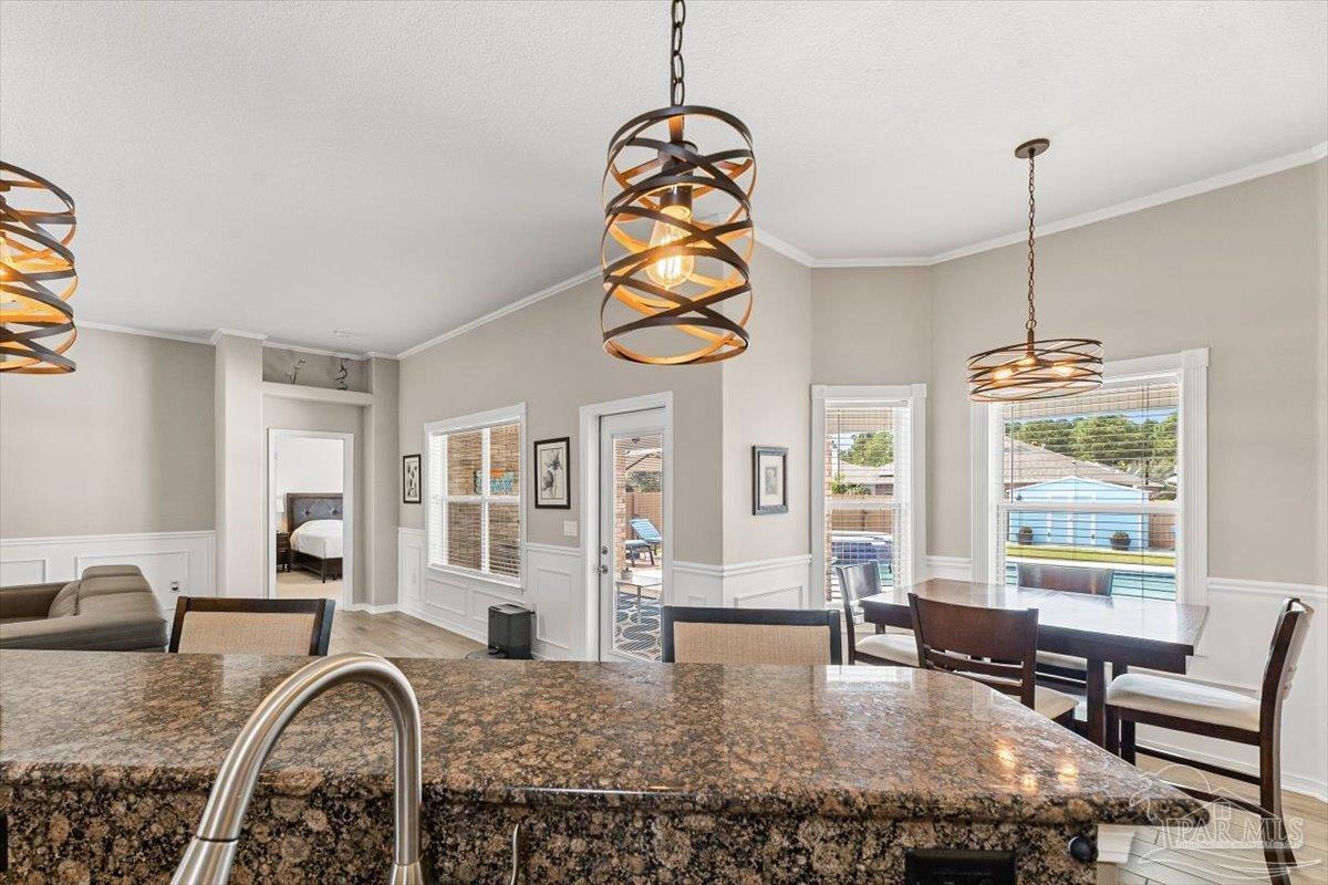 Inviting 4-Bedroom, 3-Bathroom Home with 3-Car Garage, New Roof and Sparkling Gunite Saltwater Pool! Designed for modern living and effortless entertaining, this spacious residence boasts an open-concept floor plan with high ceilings and elegant wood design porcelain tile. Custom woodworking details—such as framed windows and doors, along with classic wainscoting—add a touch of luxury and craftsmanship to the living spaces. The heart of the home is a seamless flow between the living room, dining room, and kitchen—perfect for gatherings or relaxing evenings. The formal dining area and casual breakfast nook offer flexible dining options to suit any occasion. A versatile flex space with double French doors provides the ideal setting for a home office, fitness room, or children's playroom. Featuring four generously sized bedrooms and three well-appointed bathrooms, including a convenient pool bath with access to both the lanai and interior, this home is built for comfort and functionality. The kitchen is a chef’s dream with granite countertops, an oversized breakfast bar, updated lighting, stainless steel appliances, and an electric smooth-top range—complete with a gas stub-out for future conversion. An expanded drive way and second driveway for Boat and RV parking provides additional parking space. Step outside to your fenced private backyard oasis: a sparkling gunite saltwater pool with hot tub, expansive pool deck, and patio area with pergola—ready for entertaining, relaxing, or fun with family and friends. This home offers the perfect blend of elegance, comfort, and resort-style living—don’t miss the opportunity to make it yours! Convenient to Hurlburt, schools, shopping and beaches.
