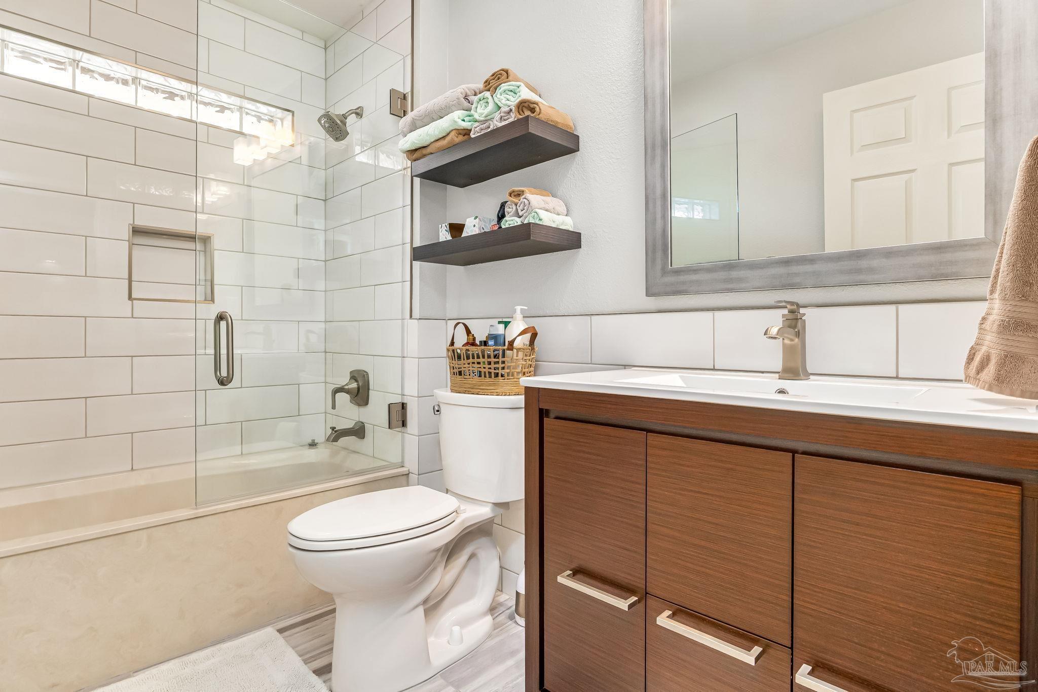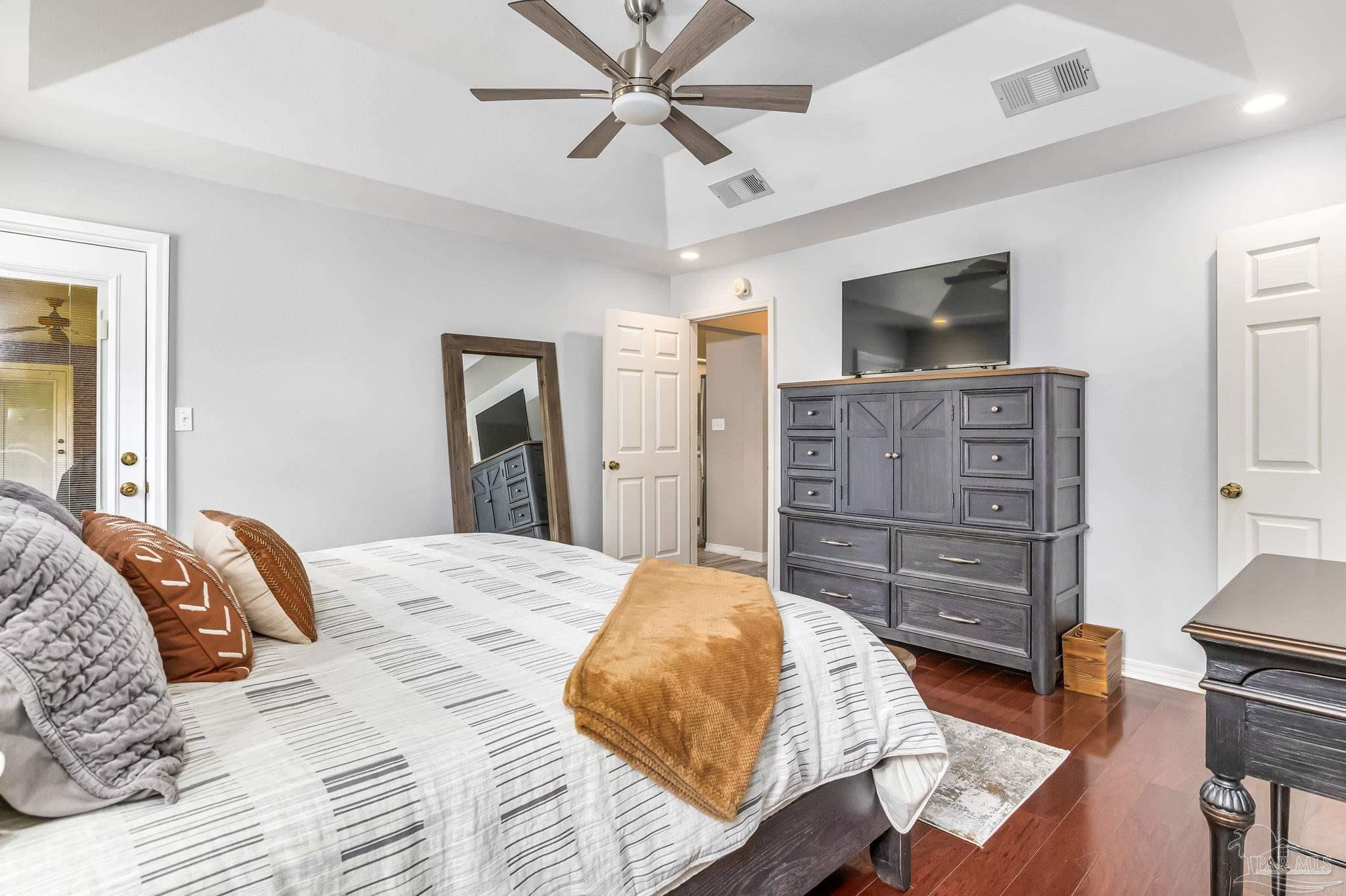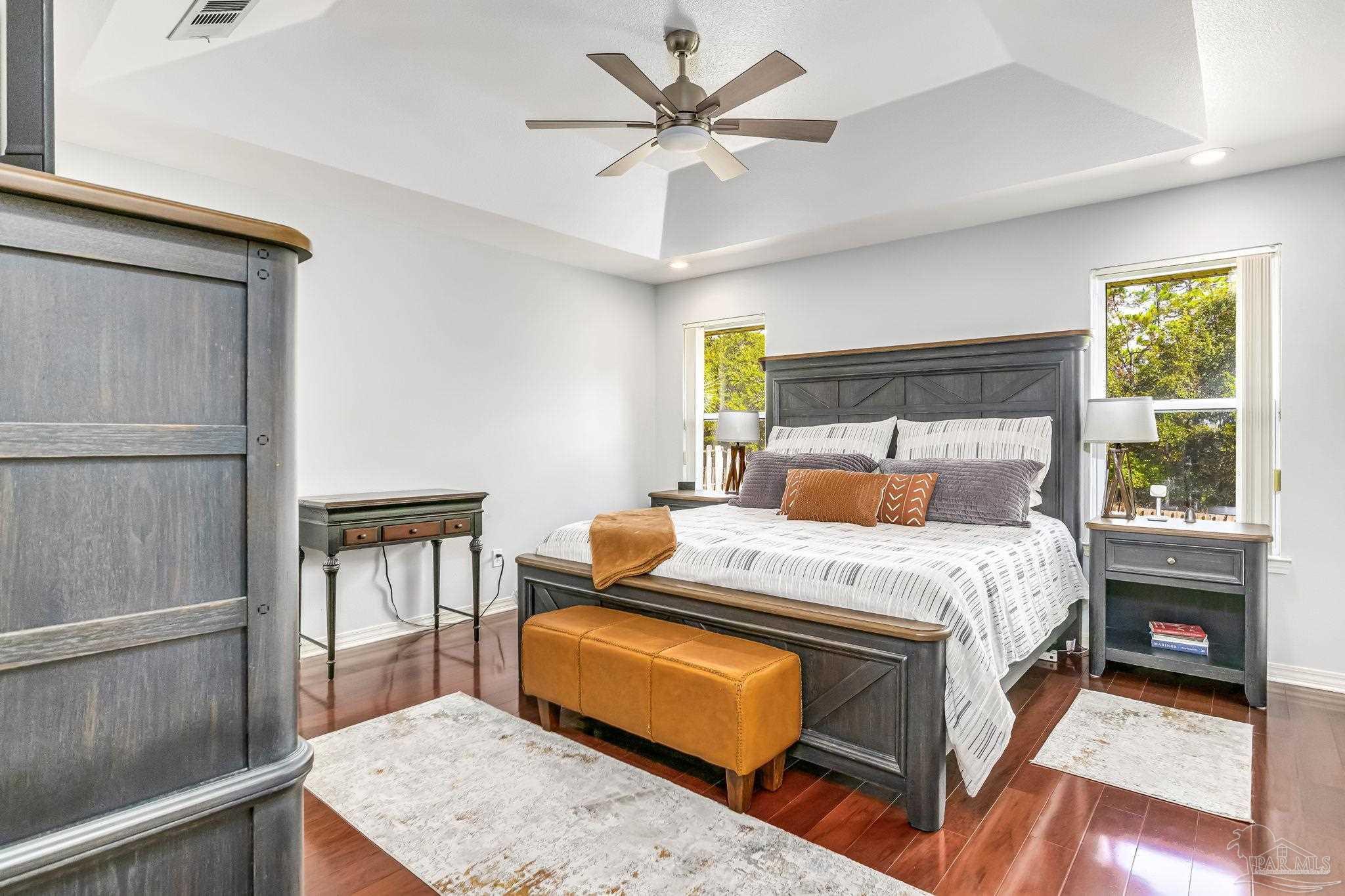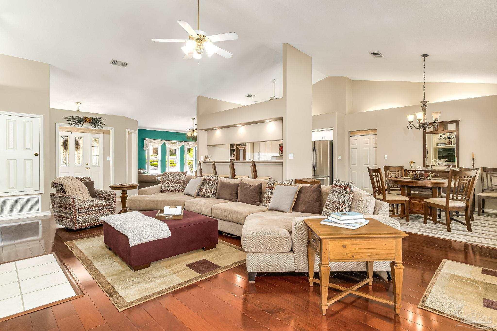 Welcome home! This beautifully maintained 4-bedroom, 2-bath home sits on a spacious 0.24-acre lot and offers a perfect blend of modern updates and everyday comfort. Step inside to a warm and inviting living area featuring a gas fireplace with custom built-ins—the ideal spot to relax or entertain. The home’s thoughtful updates include a newer roof (2018), tankless gas water heater, and a primary suite bathroom updated in 2022, complete with a custom closet design for maximum storage and style. The guest bath was updated in 2020, giving the entire home a fresh, move-in-ready feel. The HVAC system (2010) has been well cared for, and with gas utilities, efficiency is built right in. Outside, the large fenced backyard offers plenty of room for play, gardening, or gatherings. Located in a sought-after Cantonment neighborhood, this home balances convenience and comfort—making it a standout choice for your next move. Schedule a tour today!
