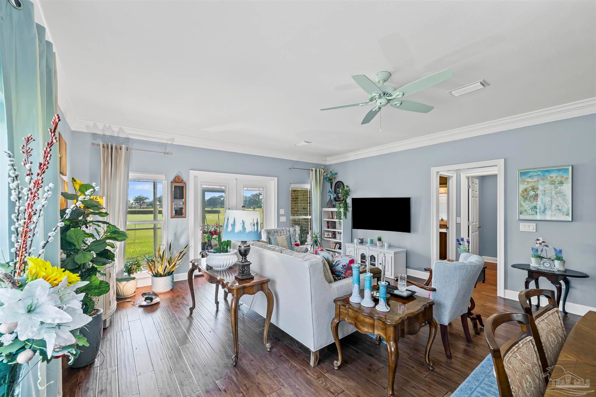 - Storage, Baseboards, Ceiling Fan(s), Crown Molding, High Ceilings, High Speed Internet, Recessed Lighting