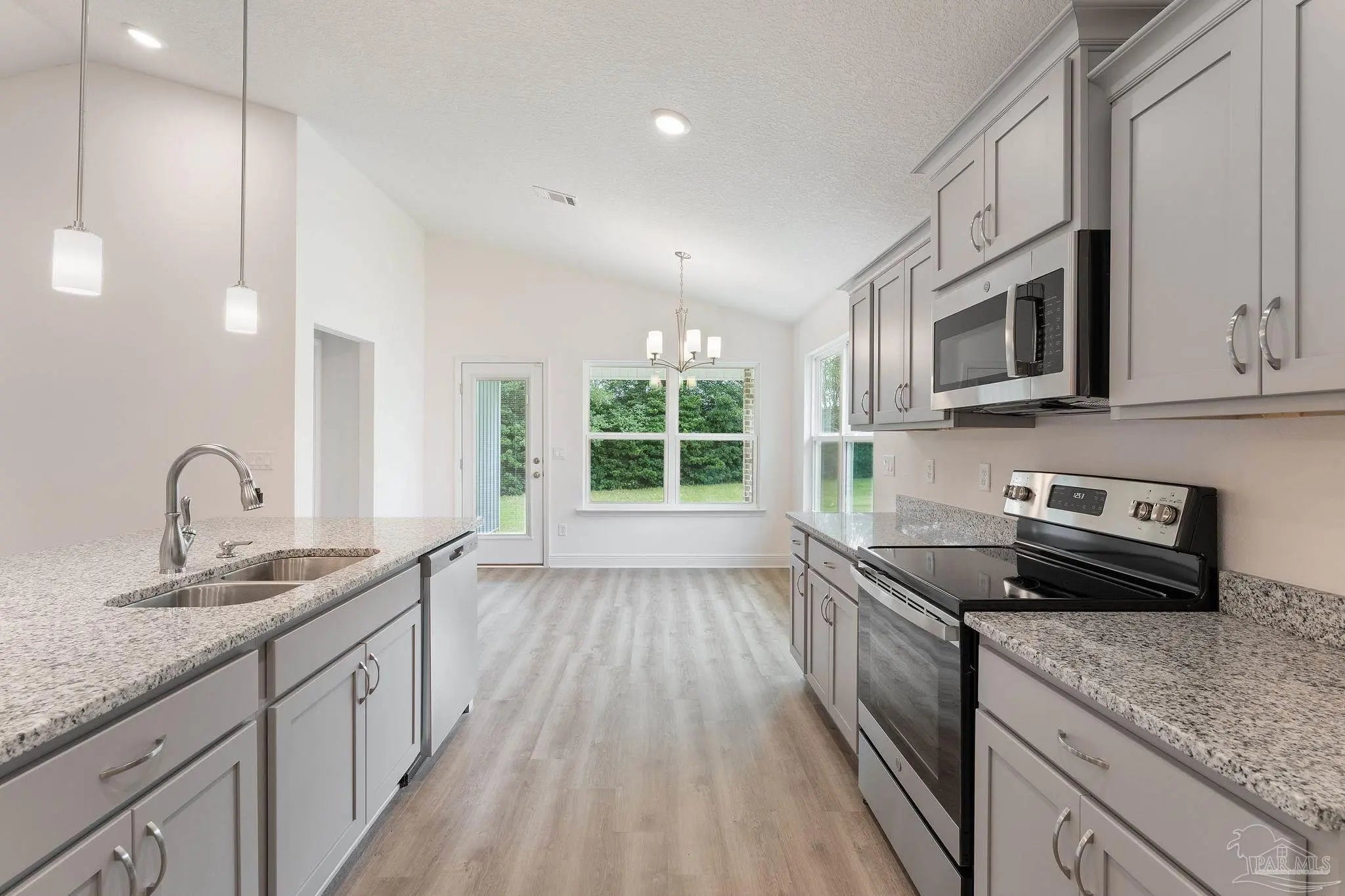 UNDER CONSTRUCTION! The Beckett floor plan offers a well-designed open-concept living, kitchen, and dining layout, providing a bright and functional space ideal for everyday living and entertaining. The kitchen features granite countertops, shaker-style cabinetry, a walk-in pantry, and a stainless-steel appliance package including range, dishwasher, and microwave. Thoughtful finishes and a practical layout make this space both stylish and efficient. The primary suite provides a comfortable retreat with a spacious walk-in closet and an en-suite bath featuring a double vanity with granite countertops and a fiberglass tub/shower combination. The secondary bathroom is finished with granite countertops and a tub/shower combo, offering consistency and convenience throughout the home. With construction underway, this is an excellent opportunity to secure new construction with modern finishes and low-maintenance living. Schedule your showing today to get in early on this beautiful home. Photos are of the same floor plan built at another location and are for reference only. Colors, finishes, and features may vary as this home is currently under construction.