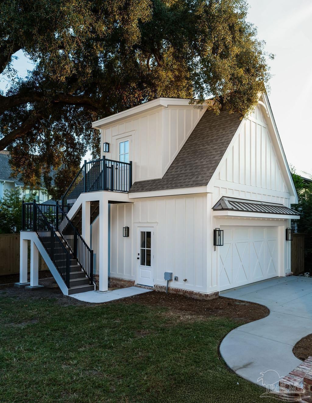 OPEN HOUSE THIS SATURDAY 10-4PM. Located in one of Pensacola’s highly sought-after East Hill neighborhood, this custom single-family home is the latest project by Southern Artisan. Inspired by classic Victorian architecture, the design features steep gables, a wrap-around porch, and ornate, asymmetrical detailing, blending timeless charm with modern craftsmanship. The two-story main residence offers four bedrooms and three and a half bathrooms, thoughtfully laid out for both comfort and style. Above the detached double garage, a private apartment includes an additional bedroom, full bathroom, closet, and living space—ideal for guests or extended family. Situated on a generous 80' x 132.5' double lot, the home provides ample outdoor space and a comfortable buffer from neighboring properties. Inside, you’ll find 10-foot ceilings on the main level and 9-foot ceilings upstairs, enhancing the open and airy feel throughout. All guest bedrooms have direct access to full bathrooms, while the kitchen and all baths are fitted with custom cabinetry designed for both beauty and functionality. Premium finishes include solid core 8-foot doors and fully cased windows and doorways, adding a refined touch throughout the interior. The gourmet kitchen is equipped with Sub-Zero refrigeration, a Wolf range, and a Cove dishwasher, showcasing the home’s high-end standards. Energy efficiency is a priority, with two heat pumps, Tap Cellulose insulation in exterior walls, open-cell spray foam at the roof deck, and interior wall insulation for enhanced sound control. Exterior finishes feature Artisan siding by Hardie and Old Texas Brick, providing a unique and timeless aesthetic. Additional highlights include a mahogany front entry door, impact-rated PGT windows and sliders, architectural 30-year shingles, and standing seam bronze metal roofing. Fully fenced for privacy, and Perfectly located near downtown Pensacola, top hospitals, Pensacola Beach, universities, and parks!