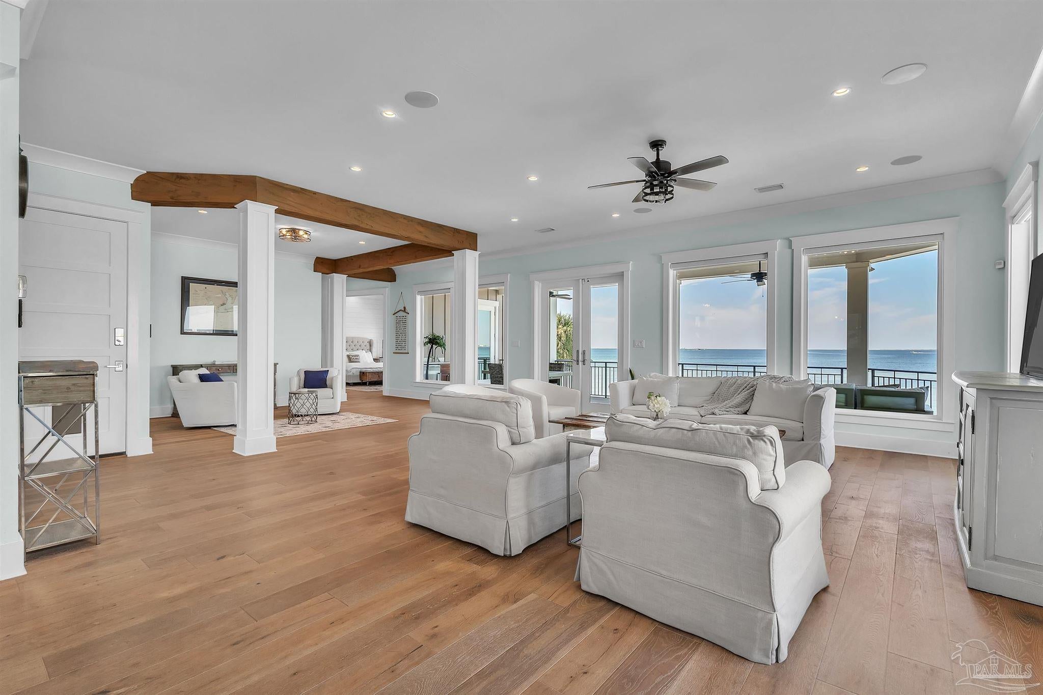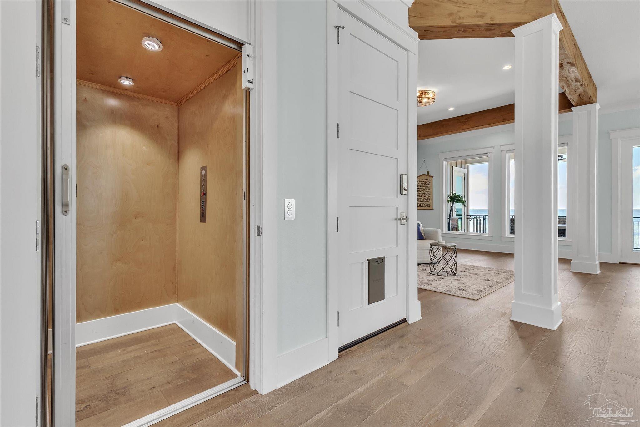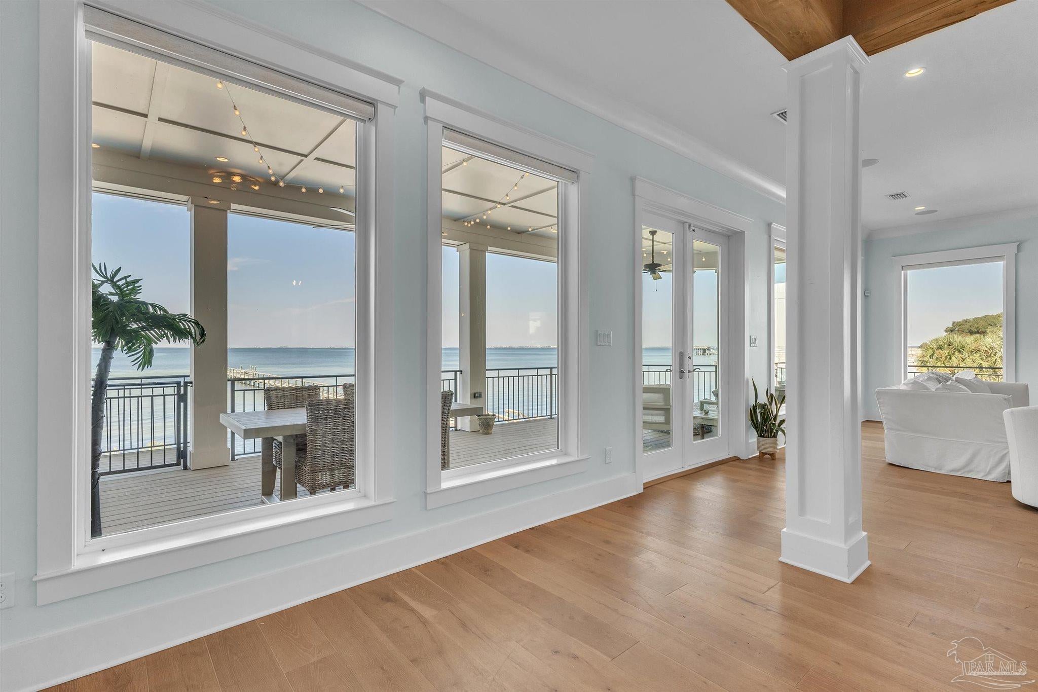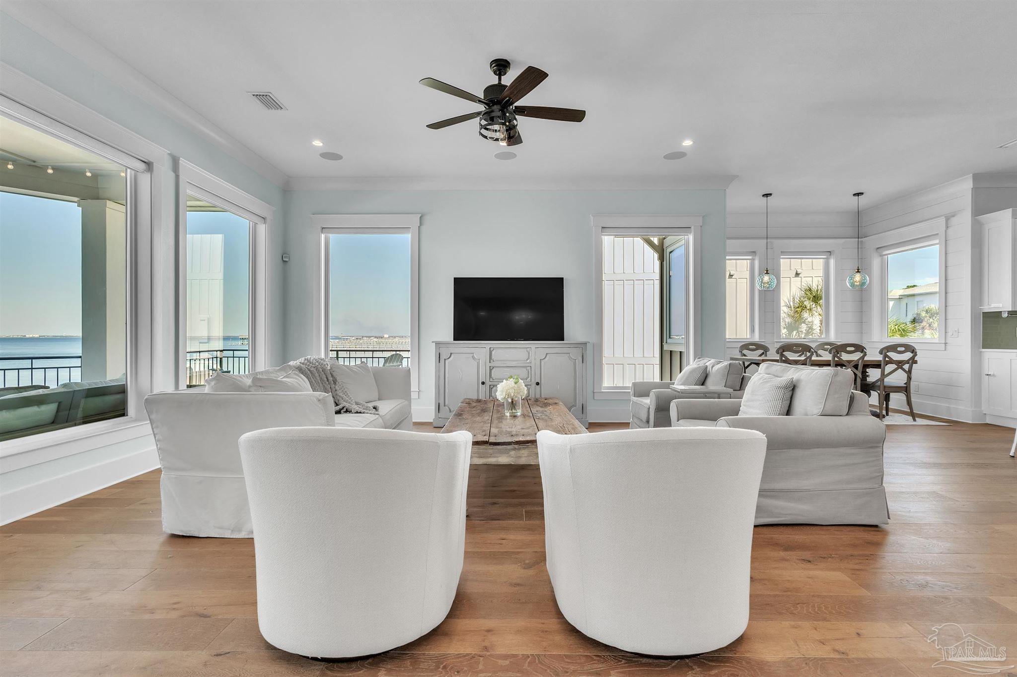 Welcome to a rare opportunity in the private, gated community of Deer Point Village. Perfectly positioned in Gulf Breeze Proper, this home places you just minutes from all the conveniences locals treasure from top-rated schools and shopping to the world-famous white sands of Pensacola Beach. Living here means enjoying the charm of a close-knit community while never sacrificing comfort or accessibility. From your covered deck, you’ll have front-row seats to the Intracoastal Waterway and even the beloved Blue Angels as they soar above. The backyard is nothing short of a retreat, complete with a heated saltwater pool, a private man-made beach, and community dock truly make this a dream setting for both fishing enthusiasts and those who simply love the water. The home itself was designed with both elegance and livability in mind. A grand foyer opens to a bright, open-concept living space where floor-to-ceiling windows and high ceilings capture the water views and fill the home with natural light. The gourmet kitchen is as functional as it is beautiful, offering double wall ovens, granite countertops, an oversized island, multiple refrigerator and freezer units, and a spacious pantry ideal for both everyday living and entertaining. On the main level, the Primary Suite serves as a true retreat with private deck access, a tiled walk-in shower, stand-alone soaking tub, extended double vanities, and a large walk-in closet thoughtfully designed by Alpha Closets. Upstairs, three additional bedrooms provide flexibility for family or guests, including one with an en-suite bath and two joined by a Jack-and-Jill. Practicality meets innovation throughout this residence, a full-service elevator, geothermal heating and cooling, and abundant storage integrated seamlessly into the design Every feature reflects a commitment to quality and comfort, creating a waterfront lifestyle that is both refined and relaxed.This is more than just a home, experience the best of Gulf Breeze living!