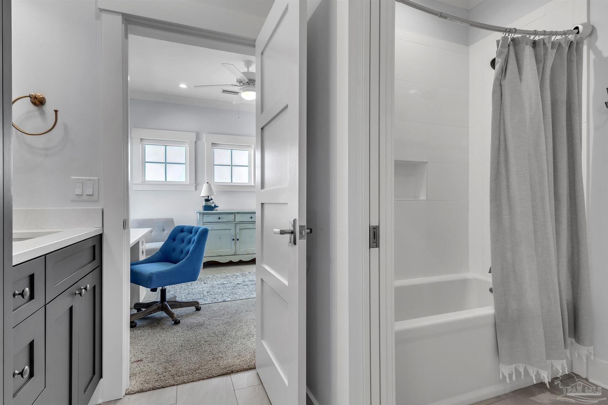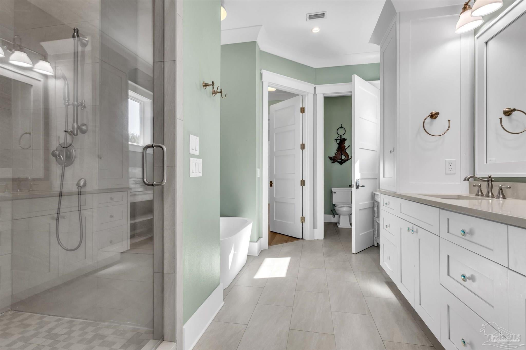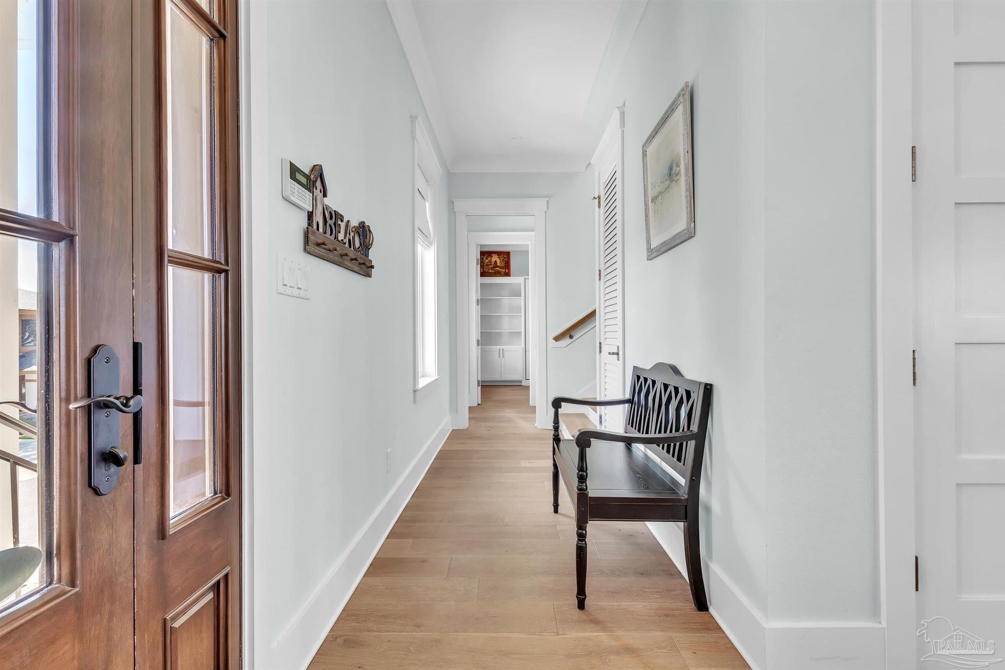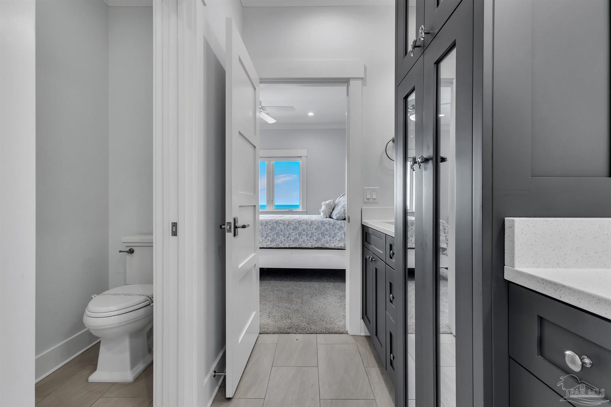 Welcome to a rare opportunity in the private, gated community of Deer Point Village. Perfectly positioned in Gulf Breeze Proper, this home places you just minutes from all the conveniences locals treasure from top-rated schools and shopping to the world-famous white sands of Pensacola Beach. Living here means enjoying the charm of a close-knit community while never sacrificing comfort or accessibility. From your covered deck, you’ll have front-row seats to the Intracoastal Waterway and even the beloved Blue Angels as they soar above. The backyard is nothing short of a retreat, complete with a heated saltwater pool, a private man-made beach, and community dock truly make this a dream setting for both fishing enthusiasts and those who simply love the water. The home itself was designed with both elegance and livability in mind. A grand foyer opens to a bright, open-concept living space where floor-to-ceiling windows and high ceilings capture the water views and fill the home with natural light. The gourmet kitchen is as functional as it is beautiful, offering double wall ovens, granite countertops, an oversized island, multiple refrigerator and freezer units, and a spacious pantry ideal for both everyday living and entertaining. On the main level, the Primary Suite serves as a true retreat with private deck access, a tiled walk-in shower, stand-alone soaking tub, extended double vanities, and a large walk-in closet thoughtfully designed by Alpha Closets. Upstairs, three additional bedrooms provide flexibility for family or guests, including one with an en-suite bath and two joined by a Jack-and-Jill. Practicality meets innovation throughout this residence, a full-service elevator, geothermal heating and cooling, and abundant storage integrated seamlessly into the design Every feature reflects a commitment to quality and comfort, creating a waterfront lifestyle that is both refined and relaxed.This is more than just a home, experience the best of Gulf Breeze living!