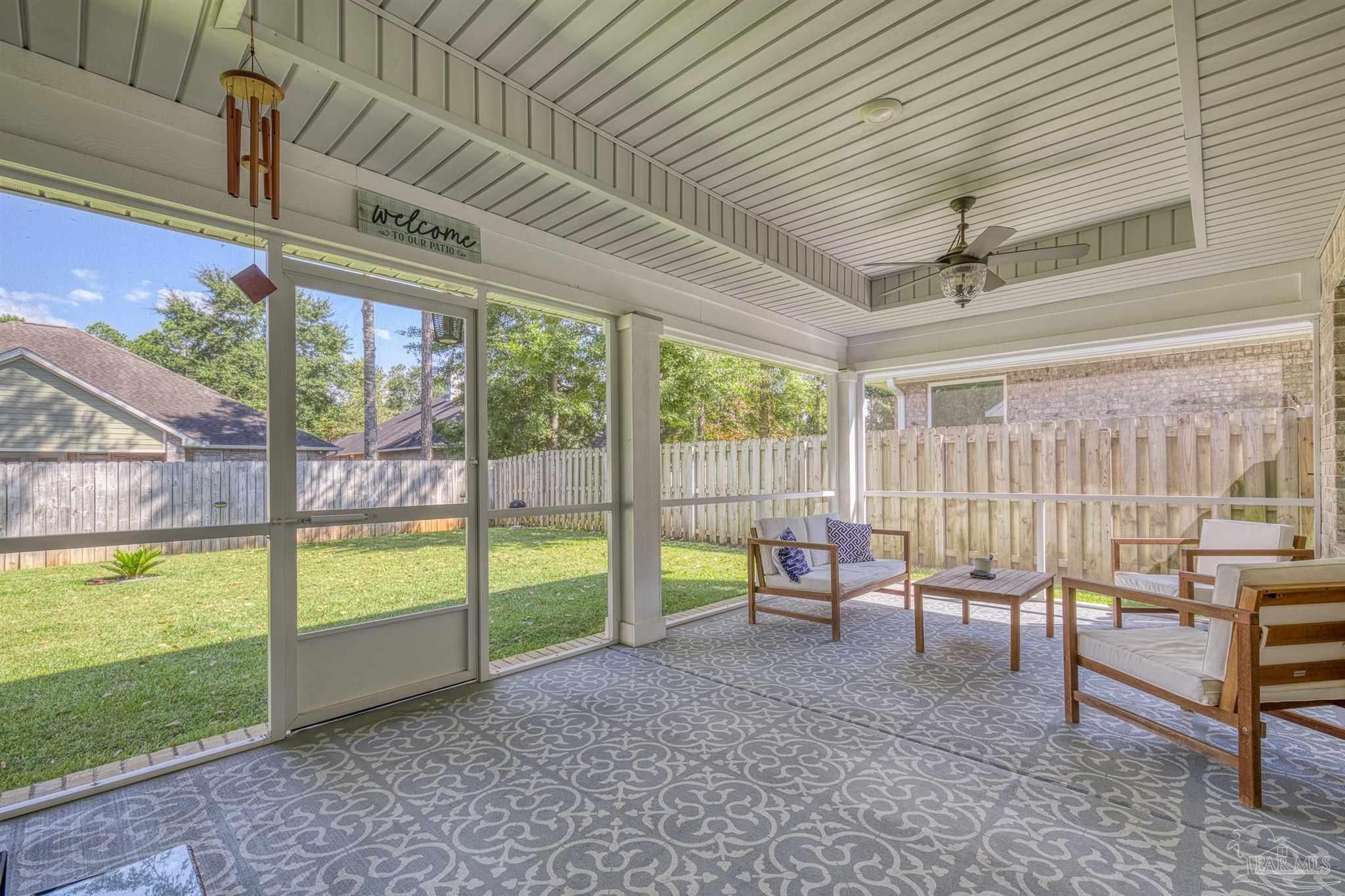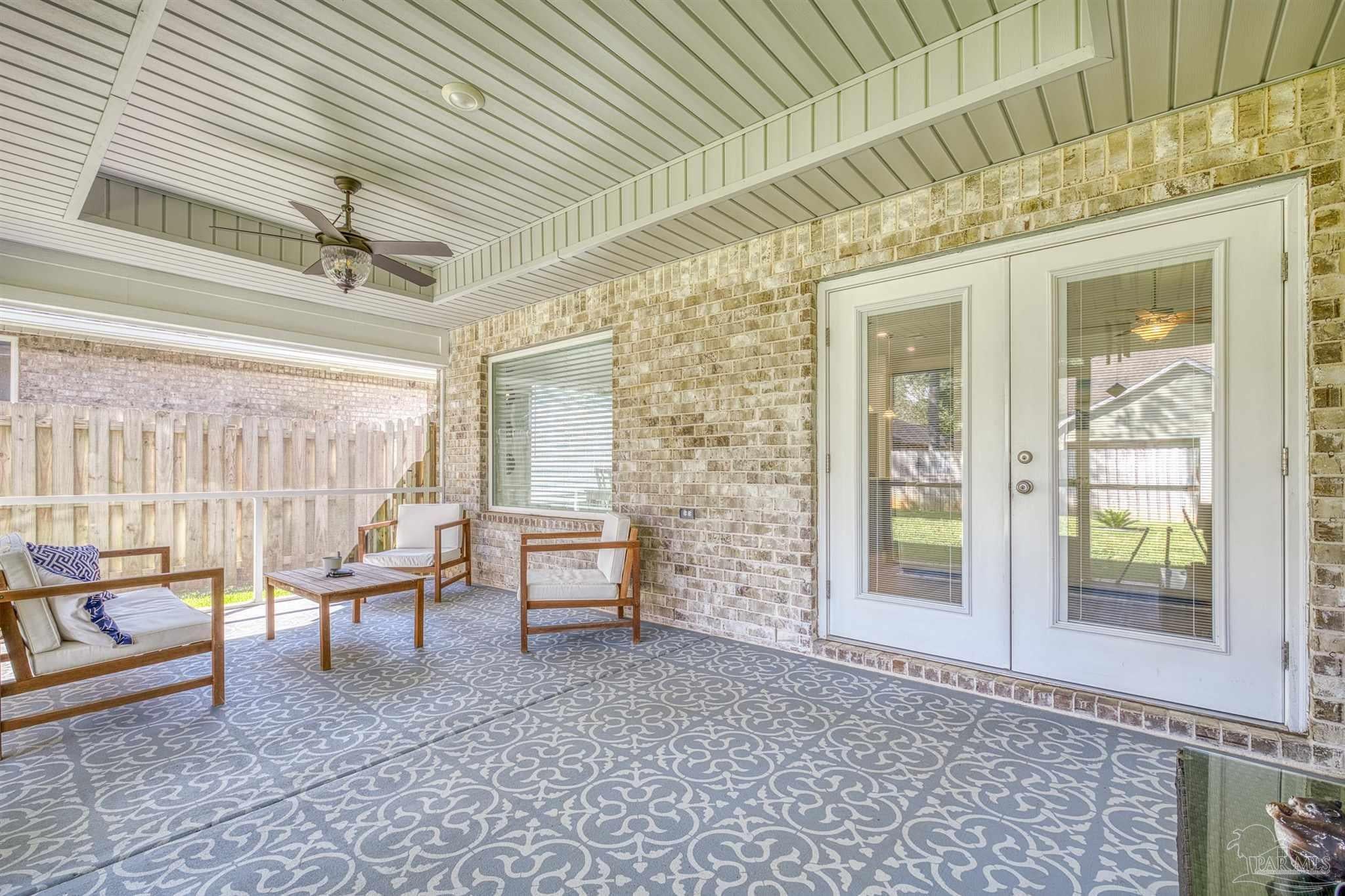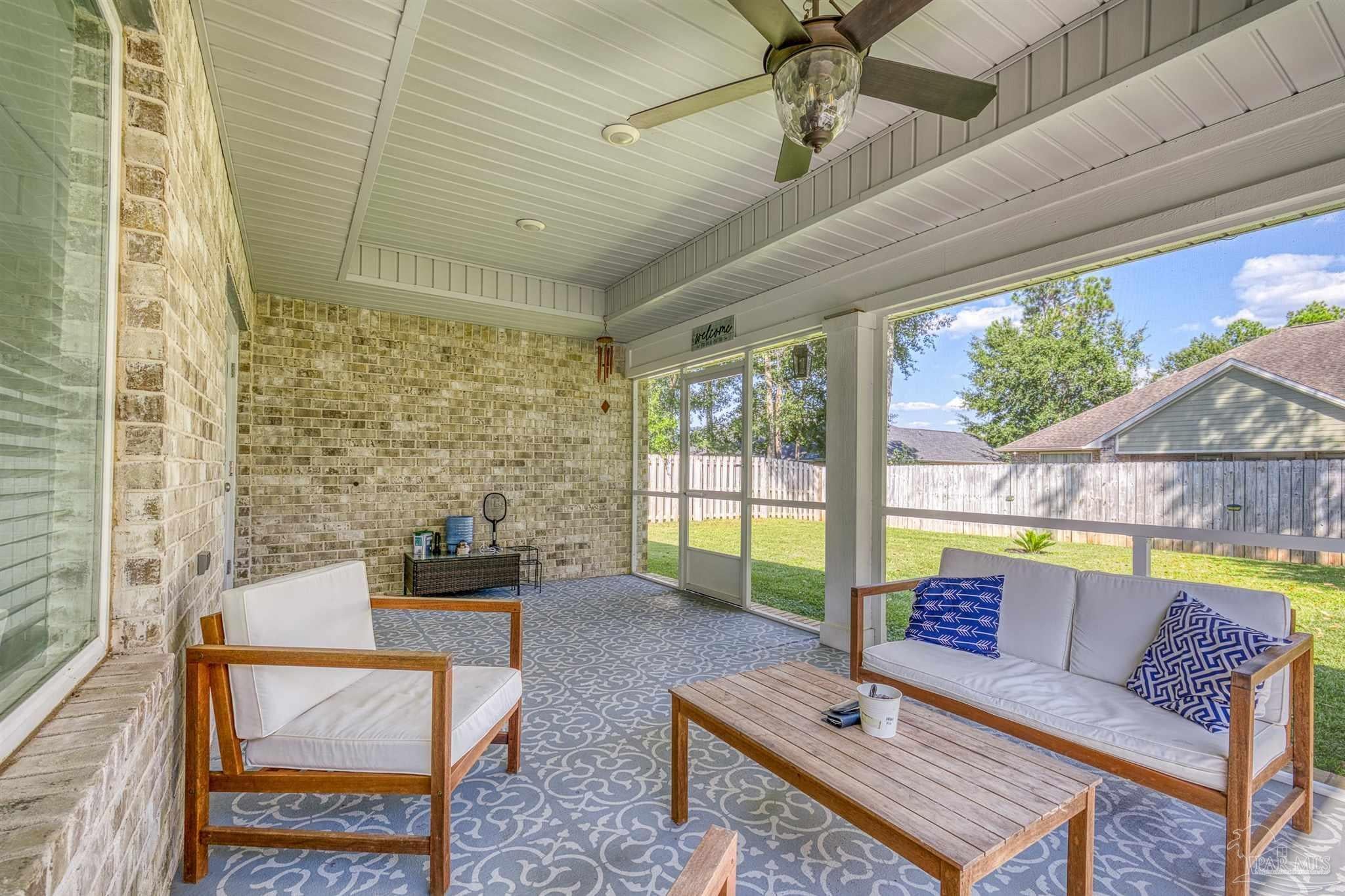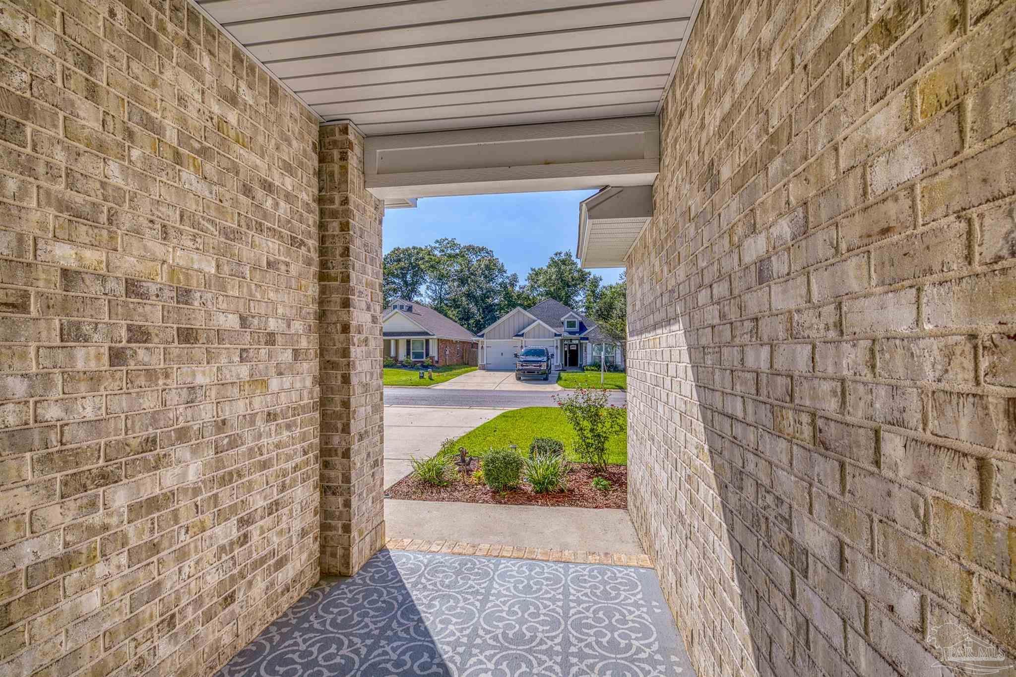 Stonechase Gated Community in Pace, FL is synonymous with class, charm and quality construction. This Semi-Custom, all brick home with premium upgrades is a unique opportunity that you wont find anywhere else in the neighborhood and was completed by the neighborhood's original builder! Note the ornate custom printed concrete as you approach the front door. Grand entry ceilings greet you as you enter the home. Drop your outerwear in the coat closet on your way into the open floorplan's living space. The Chef's Kitchen is loaded with custom features, like Calcutta Luna Quartz counters, Solid Maple Cabinets in elegant blue, premium Samsung gas range with dedicated ventilation, built in wine storage, subway tile backsplash and premium (non builder grade) appliances like the Bostch dishwasher and LG refrigerator. Plenty of prep and service space for any size gathering! Both bathrooms are fitted with Shadow Blue Marble counters and custom cabinetry. The large master suite is finished with a box trey ceilings and ensuite bathroom with even more custom upgrades. The tub is a stand alone, with separate Romana Tile Shower and independent water closet for privacy. The oversized walk in closet is double hung and has built in shelving and drawers as well. Not a stitch of carpet with LVP lining the entire home with scratch and water resistant LVP flooring throughout. Bali premium blinds on the windows. Recessed LED lighting, custom fixtures and Horchow ceiling fans, The front bedroom features a vault ceiling, opening up the space. The yard is tastefully landscaped and well manicured, with reclaimed water irrigation, fully fenced backyard and screened in back porch for outdoor entertaining without the bugs! Smart doorbell and Garage Door Opener with Fiber internet lines in multiple rooms. Samsung Washer and Dryer can convey. Eligible for USDA 100% No Down Payment Financing - Call today for a tour!