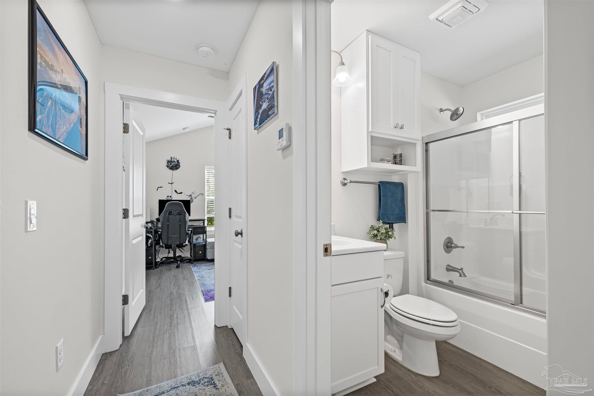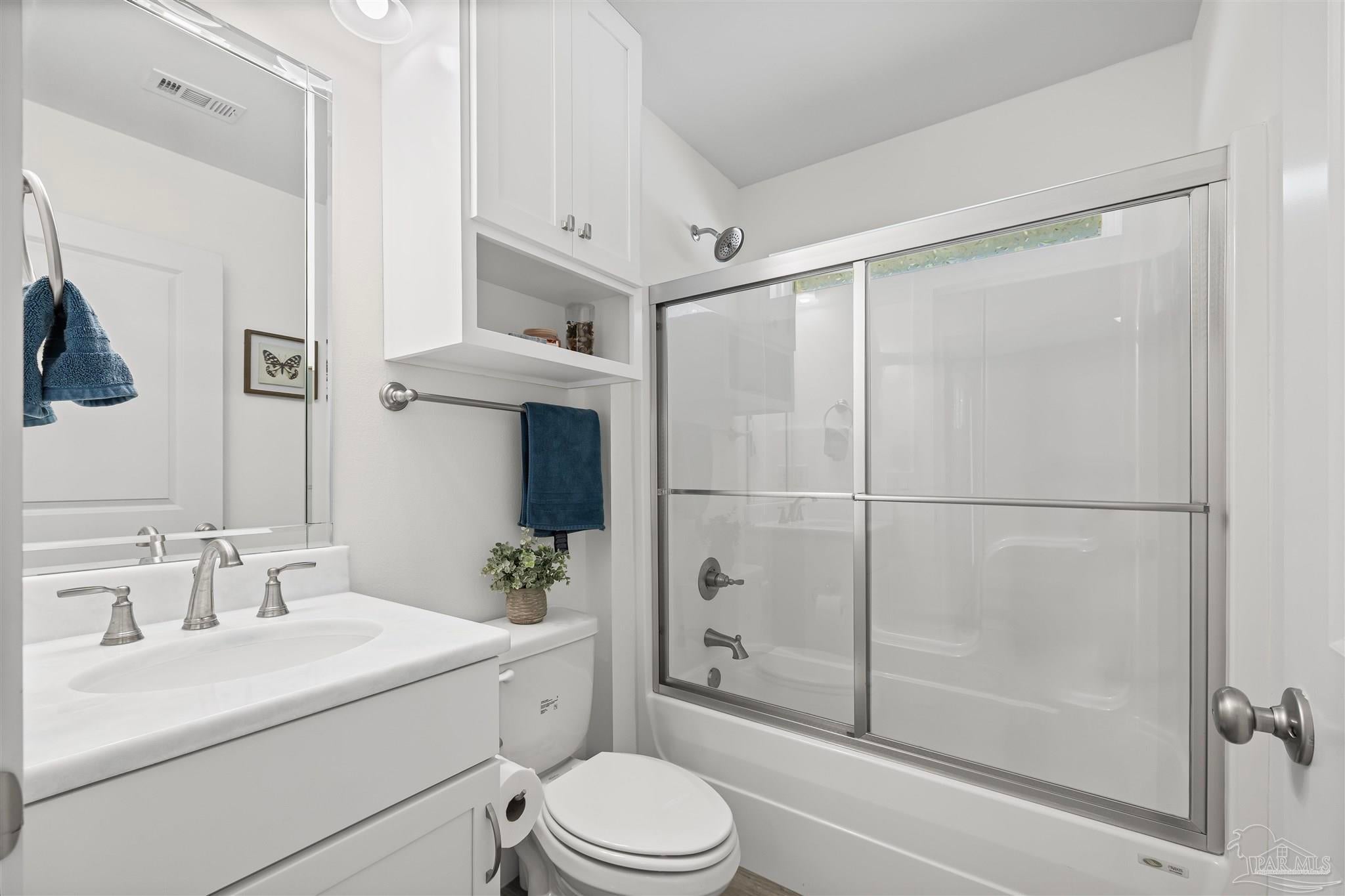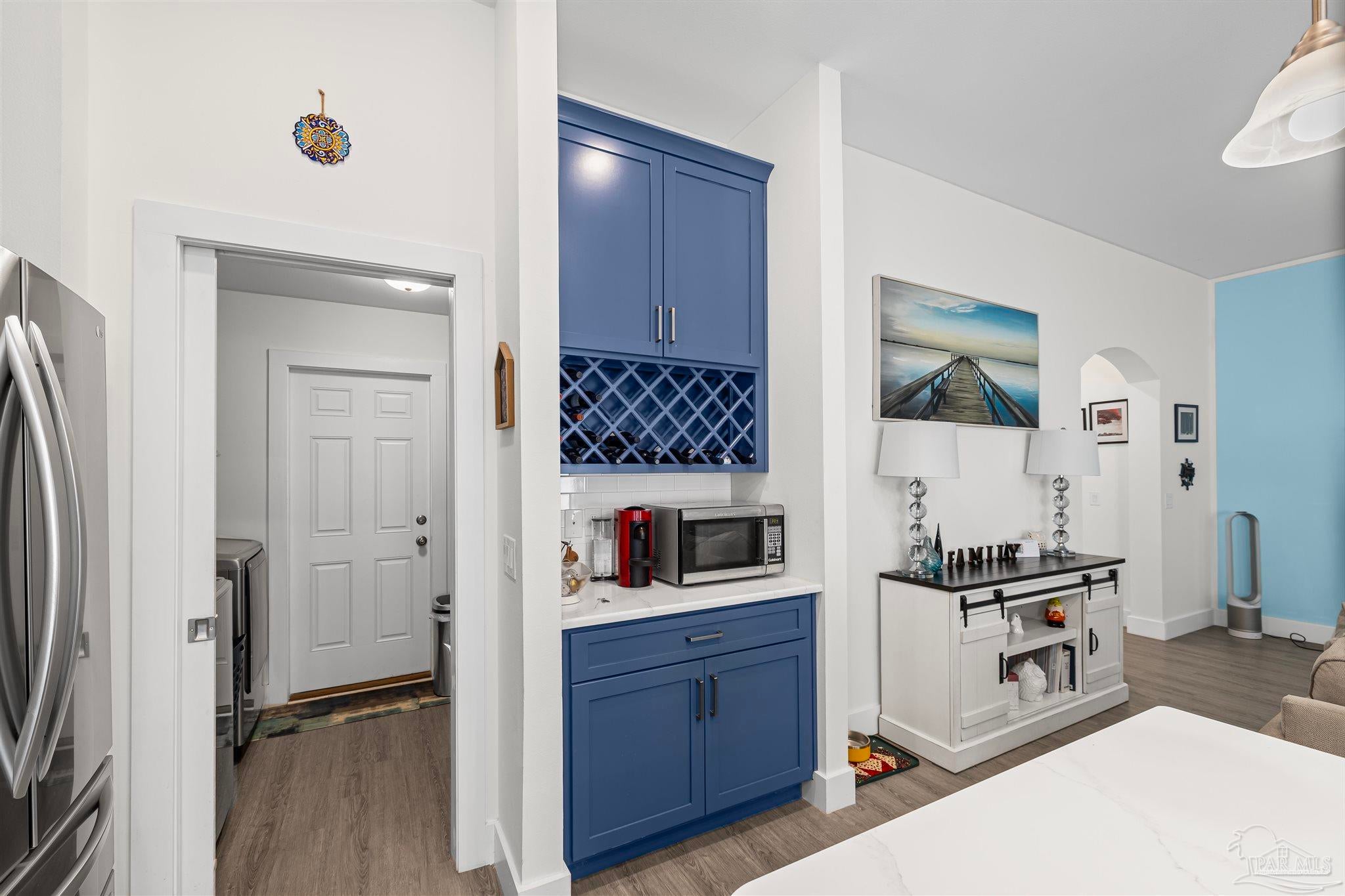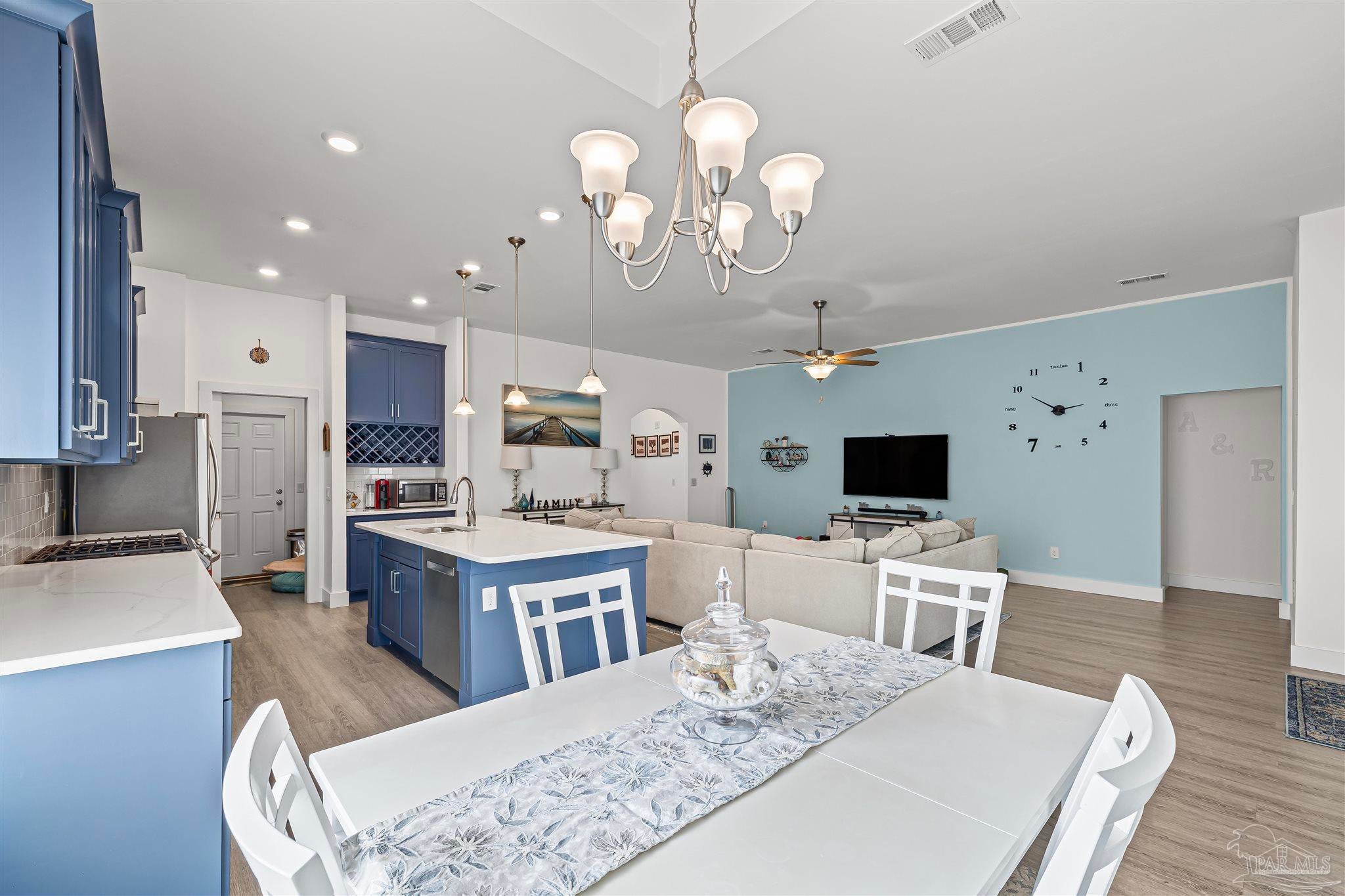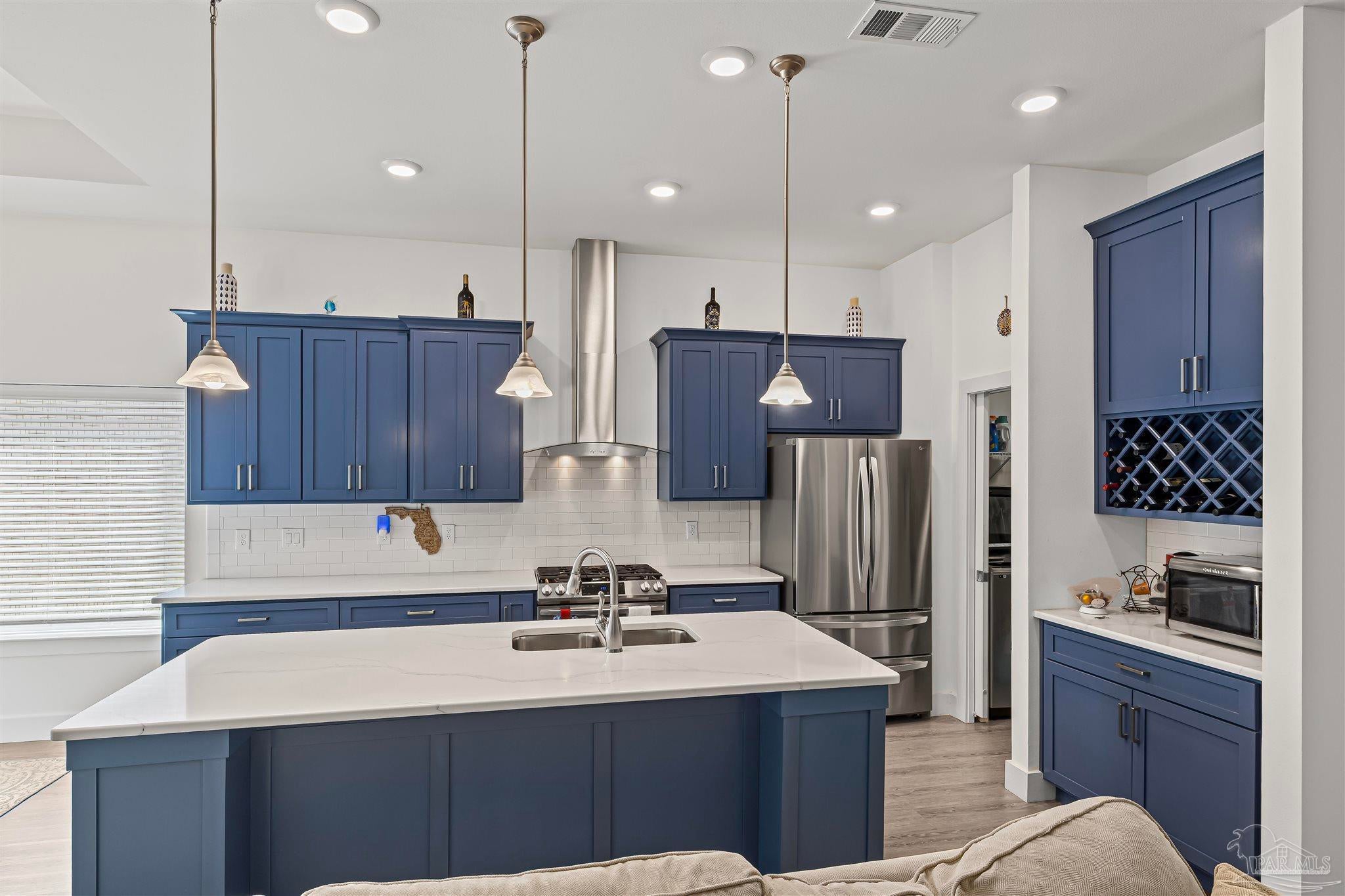 Stonechase Gated Community in Pace, FL is synonymous with class, charm and quality construction. This Semi-Custom, all brick home with premium upgrades is a unique opportunity that you wont find anywhere else in the neighborhood and was completed by the neighborhood's original builder! Note the ornate custom printed concrete as you approach the front door. Grand entry ceilings greet you as you enter the home. Drop your outerwear in the coat closet on your way into the open floorplan's living space. The Chef's Kitchen is loaded with custom features, like Calcutta Luna Quartz counters, Solid Maple Cabinets in elegant blue, premium Samsung gas range with dedicated ventilation, built in wine storage, subway tile backsplash and premium (non builder grade) appliances like the Bostch dishwasher and LG refrigerator. Plenty of prep and service space for any size gathering! Both bathrooms are fitted with Shadow Blue Marble counters and custom cabinetry. The large master suite is finished with a box trey ceilings and ensuite bathroom with even more custom upgrades. The tub is a stand alone, with separate Romana Tile Shower and independent water closet for privacy. The oversized walk in closet is double hung and has built in shelving and drawers as well. Not a stitch of carpet with LVP lining the entire home with scratch and water resistant LVP flooring throughout. Bali premium blinds on the windows. Recessed LED lighting, custom fixtures and Horchow ceiling fans, The front bedroom features a vault ceiling, opening up the space. The yard is tastefully landscaped and well manicured, with reclaimed water irrigation, fully fenced backyard and screened in back porch for outdoor entertaining without the bugs! Smart doorbell and Garage Door Opener with Fiber internet lines in multiple rooms. Samsung Washer and Dryer can convey. Eligible for USDA 100% No Down Payment Financing - Call today for a tour!