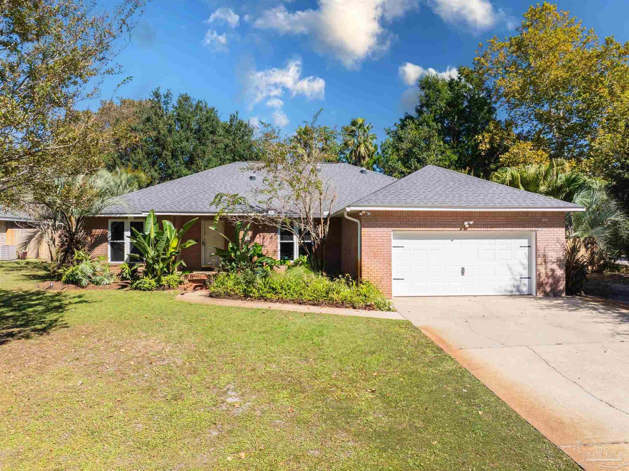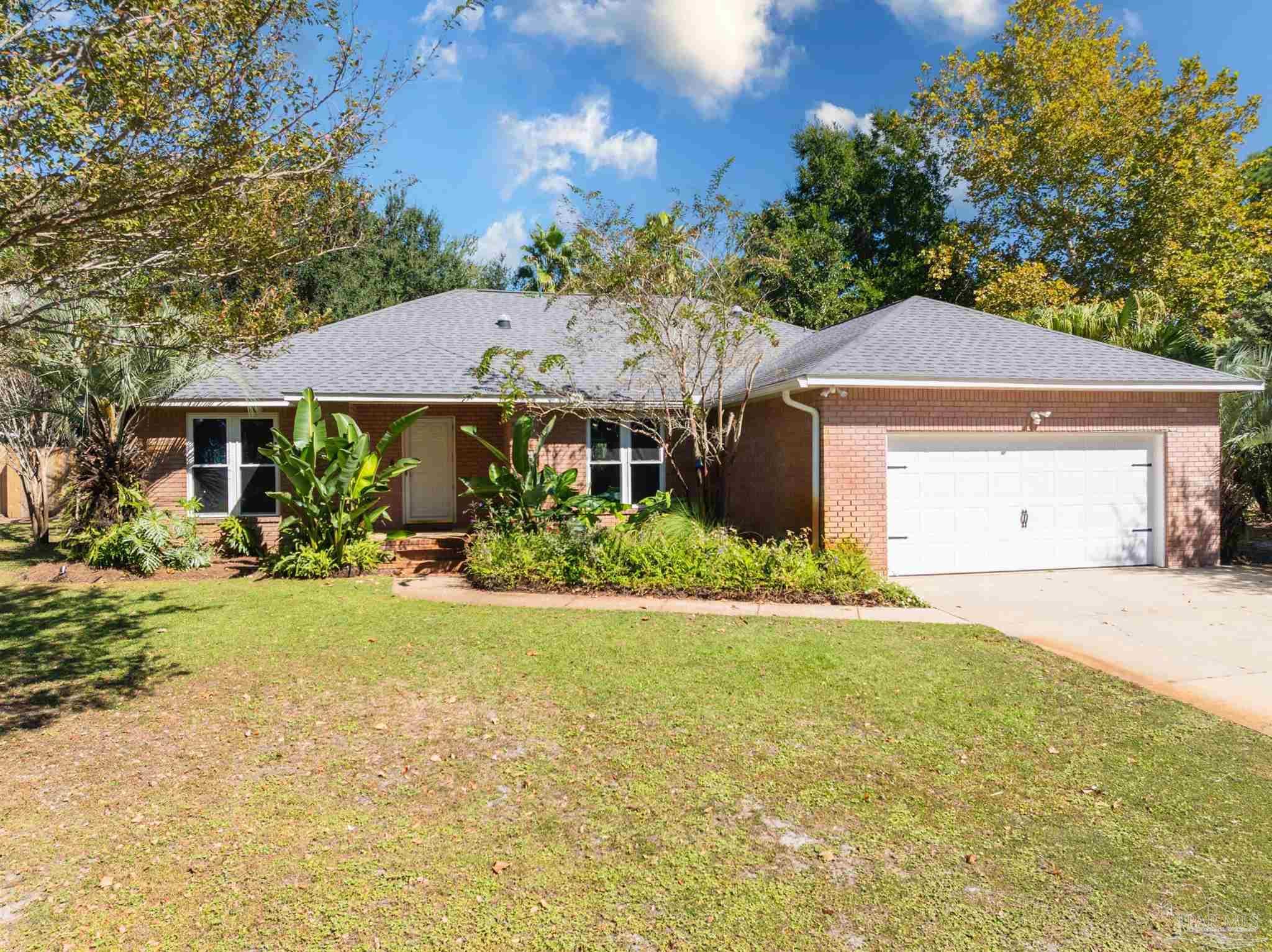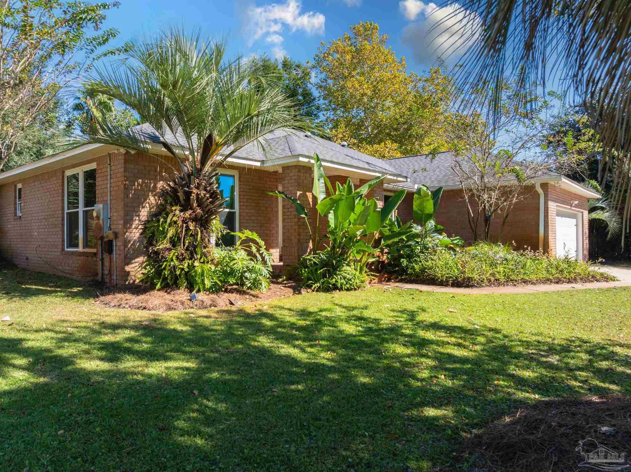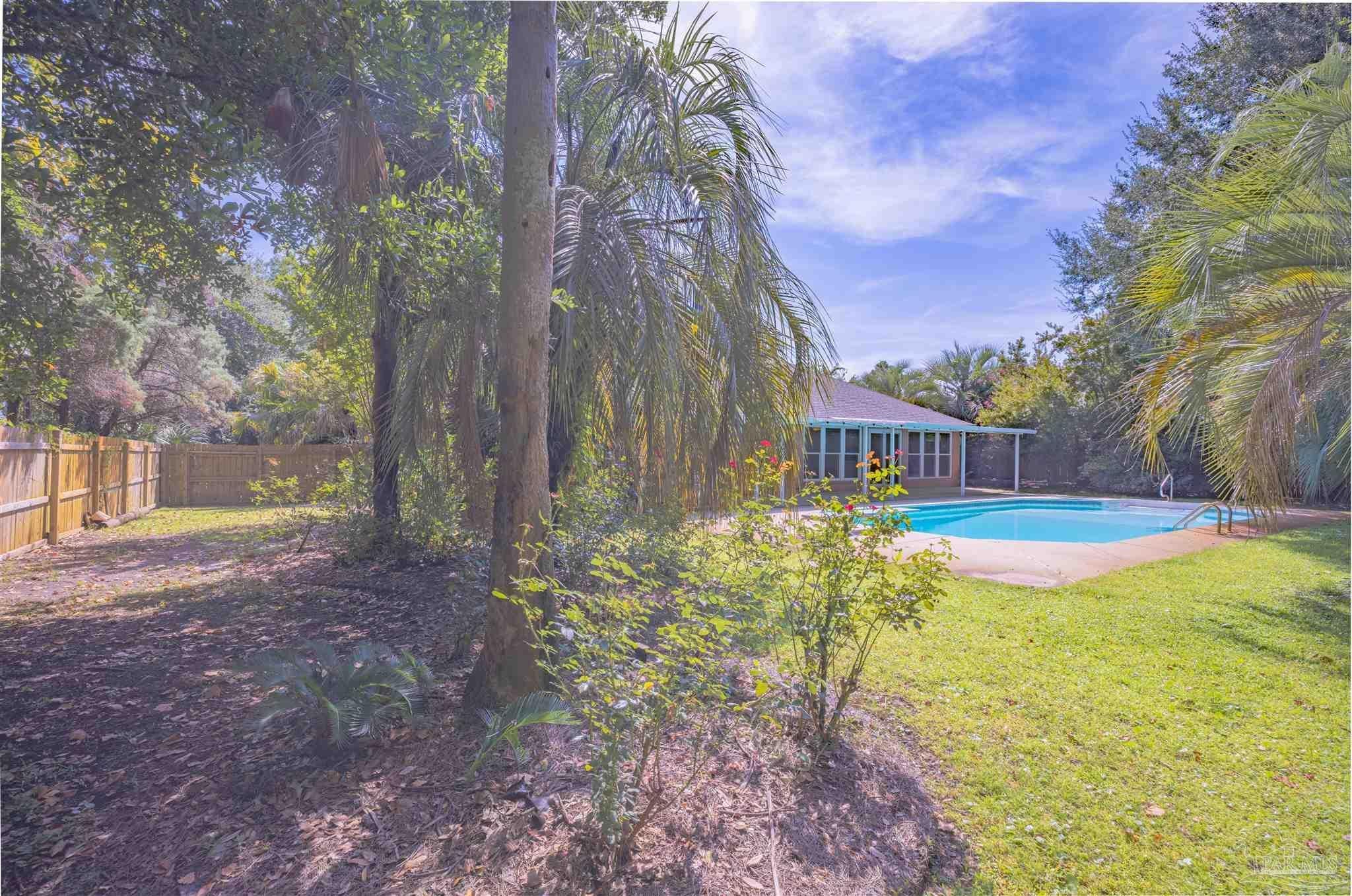 **OPEN HOUSE** November 8 from 11-2pm. Welcome to your dream home, nestled amongst the coveted Tiger Point Village Neighborhood. This budget friendly 3-bedroom, 2-bath haven presents a fabulous blend of comfort and luxury, offering a tranquil retreat from the hustle and bustle of life. Imagine waking up every day to the sight of a sparkling pool in your backyard, surrounded by a lush, well-maintained private oasis with mature foliage. The expansive corner lot provides ample space for your outdoor entertainment and an easy access side yard entry on the East side making rear lawn maintenance a breeze and may also serve as additional storage access for an HOA approved boat or RV. In addition to the fabulous natural canopy of trees at the rear yard, the expansive rear porch offers an extra covering of shade. The lush green yard is maintained by a sprinkler system on a well. Inside the sunroom bathes this lovely abode in natural yet shadowy ambient lighting with a beautiful panoramic view of the pool. The primary bedroom is a sanctuary in itself, featuring an ensuite bath with a large double sink vanity, garden tub and shower. The kitchen is a chef's delight, boasting stainless appliances, breakfast nook and is an open wrapping bar design. This split floorplan allows guests or family some space and privacy in their own bedroom suite. Living in Tiger Point means you're part of a golf cart-friendly community with a plethora of features. Enjoy a 55-acre Soundside Preserve with a ½ mile beach on the sound, dine at The Pointe Restaurant or its themed restaurant neighbor Tiki Republic, and shop at nearby stores 2 minutes away like Lowe's, Publix, and Super Walmart. This home is more than just a house; it's a lifestyle. This home offers so many desirable attributes, it surely won't last long so schedule your showing today! Priced to Sell, so why wait?