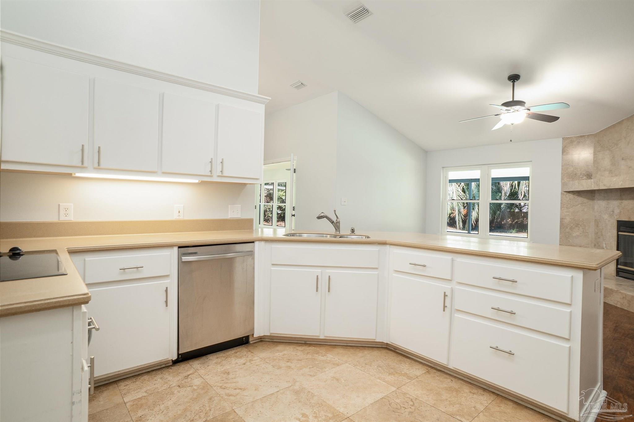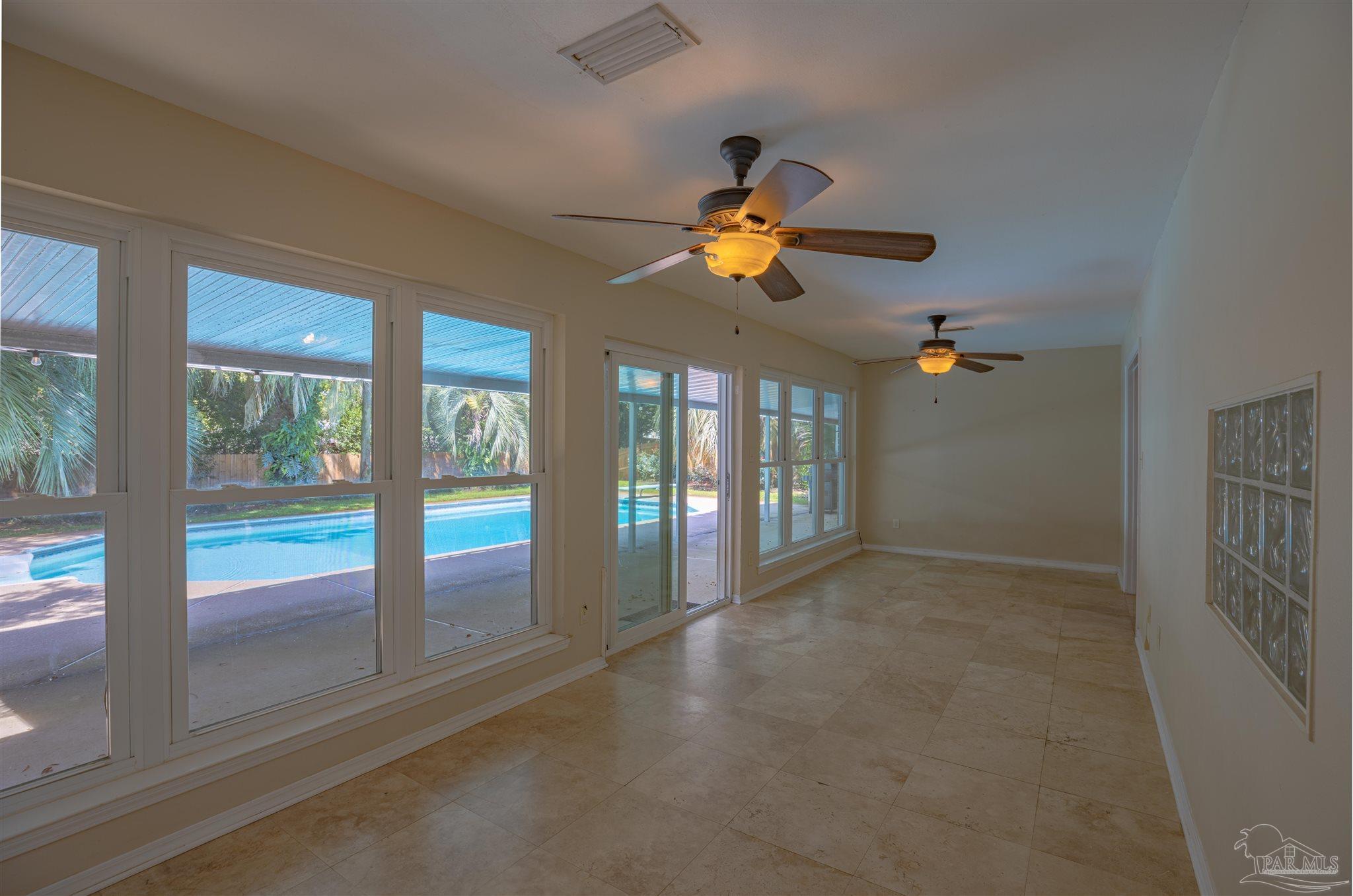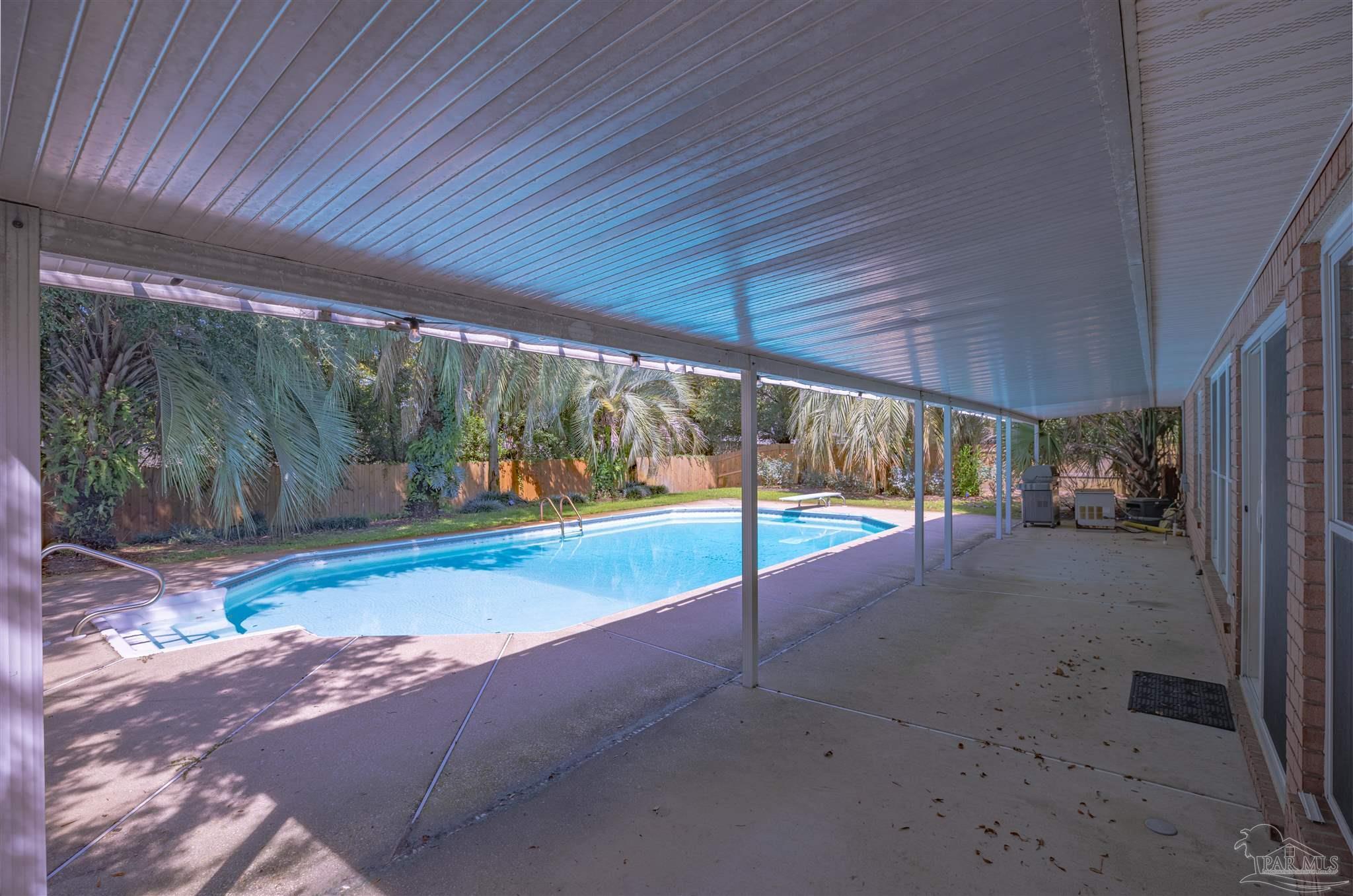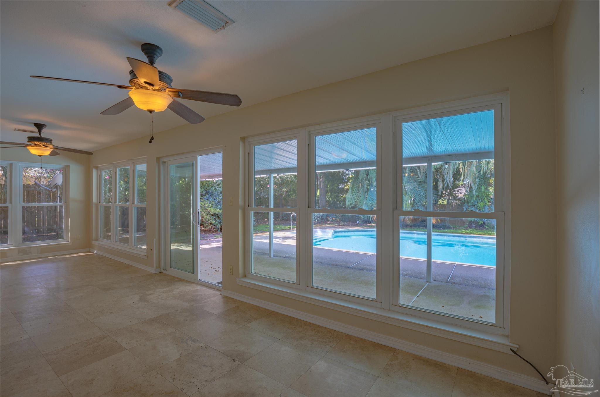 **OPEN HOUSE** November 8 from 11-2pm. Welcome to your dream home, nestled amongst the coveted Tiger Point Village Neighborhood. This budget friendly 3-bedroom, 2-bath haven presents a fabulous blend of comfort and luxury, offering a tranquil retreat from the hustle and bustle of life. Imagine waking up every day to the sight of a sparkling pool in your backyard, surrounded by a lush, well-maintained private oasis with mature foliage. The expansive corner lot provides ample space for your outdoor entertainment and an easy access side yard entry on the East side making rear lawn maintenance a breeze and may also serve as additional storage access for an HOA approved boat or RV. In addition to the fabulous natural canopy of trees at the rear yard, the expansive rear porch offers an extra covering of shade. The lush green yard is maintained by a sprinkler system on a well. Inside the sunroom bathes this lovely abode in natural yet shadowy ambient lighting with a beautiful panoramic view of the pool. The primary bedroom is a sanctuary in itself, featuring an ensuite bath with a large double sink vanity, garden tub and shower. The kitchen is a chef's delight, boasting stainless appliances, breakfast nook and is an open wrapping bar design. This split floorplan allows guests or family some space and privacy in their own bedroom suite. Living in Tiger Point means you're part of a golf cart-friendly community with a plethora of features. Enjoy a 55-acre Soundside Preserve with a ½ mile beach on the sound, dine at The Pointe Restaurant or its themed restaurant neighbor Tiki Republic, and shop at nearby stores 2 minutes away like Lowe's, Publix, and Super Walmart. This home is more than just a house; it's a lifestyle. This home offers so many desirable attributes, it surely won't last long so schedule your showing today! Priced to Sell, so why wait?