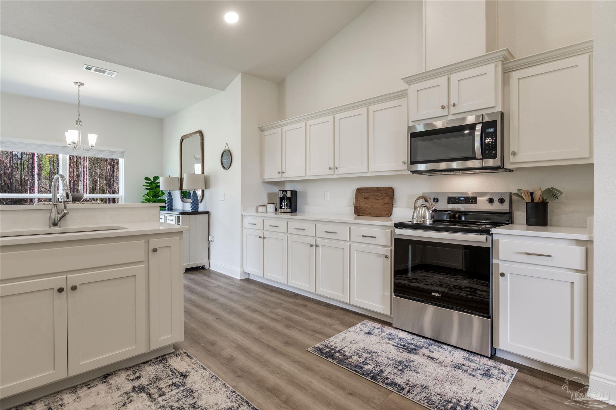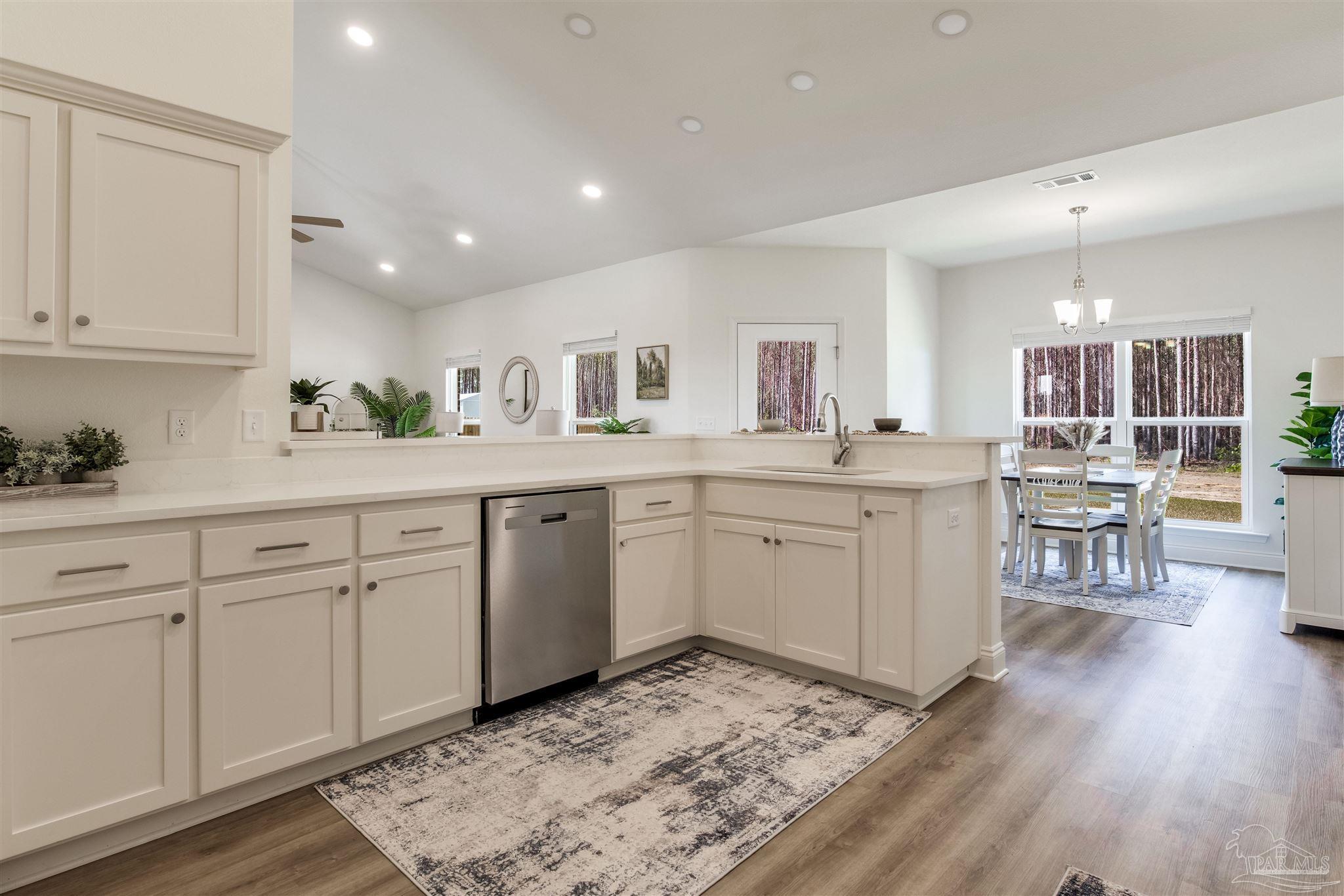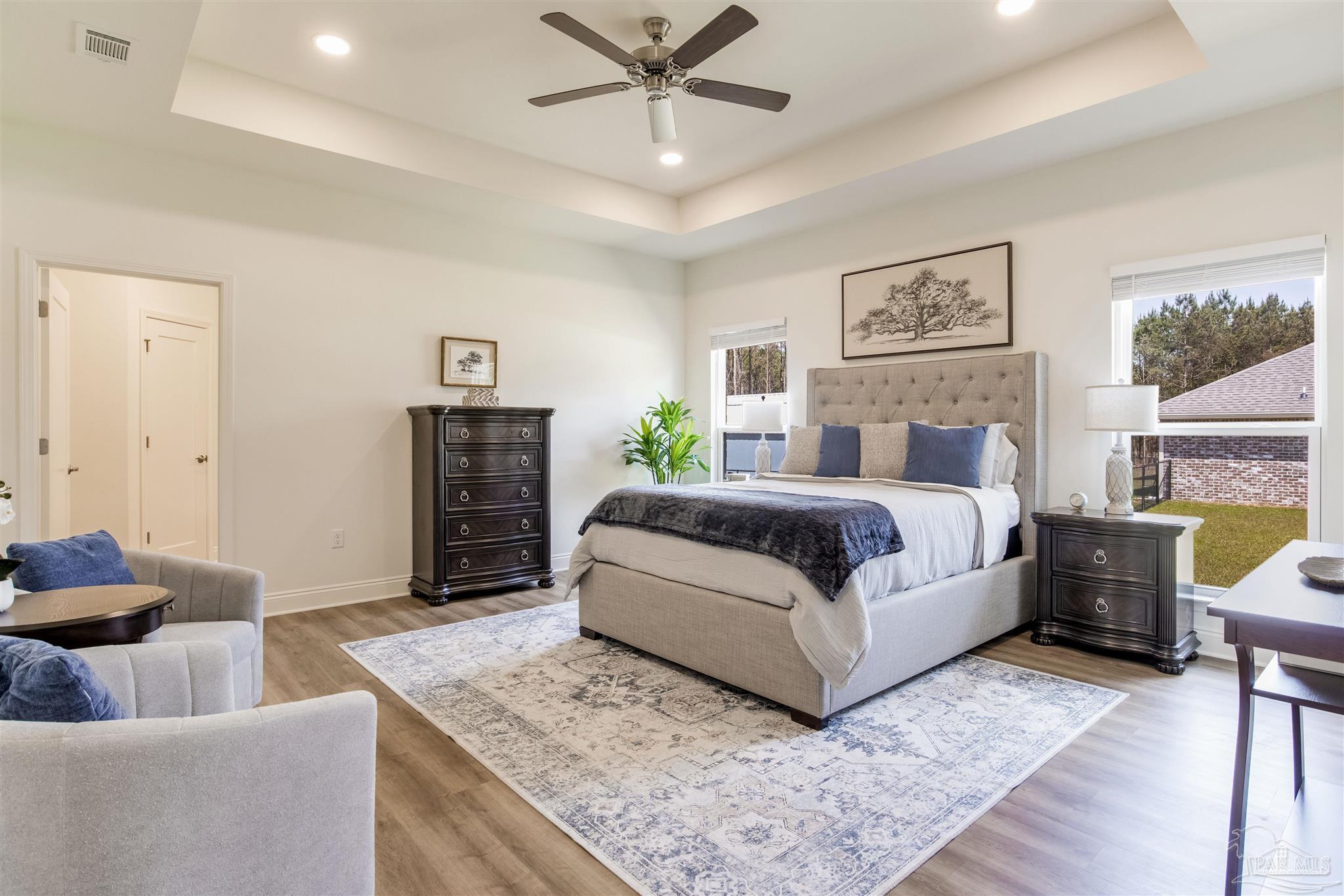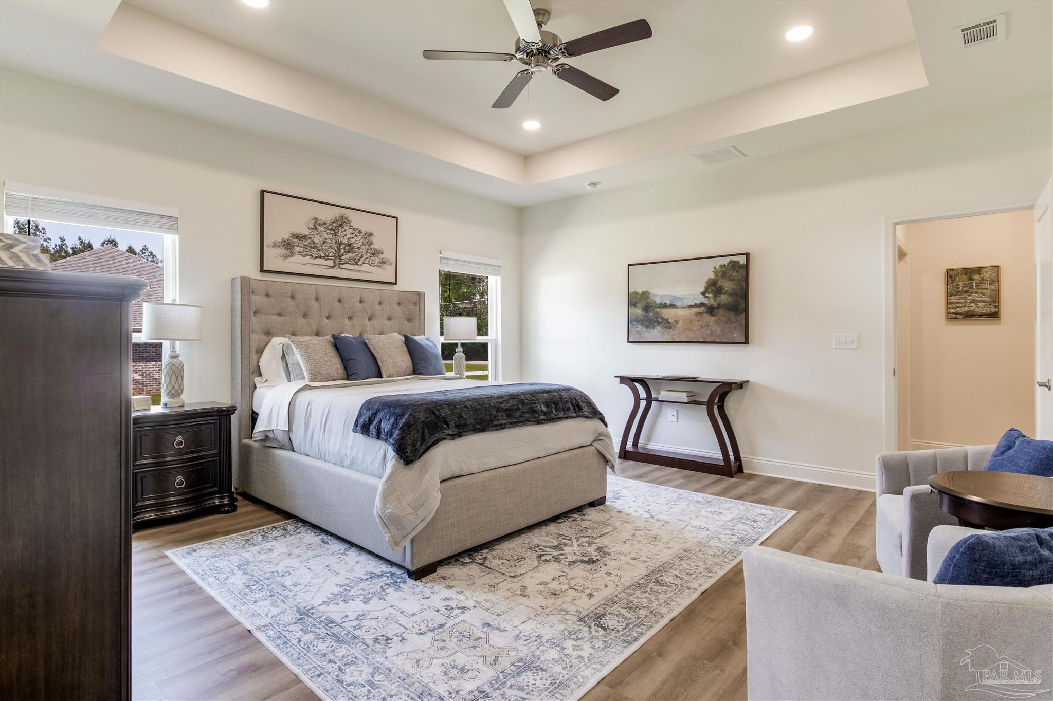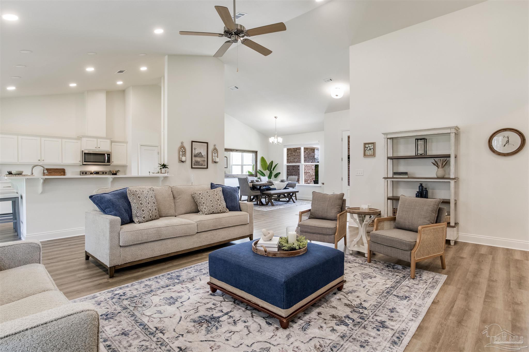Exceptional CRAFTSMANSHIP. Lasting QUALITY. Inspired DESIGN. Welcome to THE BAILEY floor plan—a comfortable 4-bedroom, 2-bath home with a 2-car garage, set in the peaceful countryside of The Pines at Crofton Farms. This thoughtfully crafted home, built by a trusted local developer, blends style with practical features for everyday living. The open-concept living area with cathedral ceilings and 9-foot ceilings throughout the rest of the home creates a bright, inviting space perfect for family time or having friends over. In the kitchen, the large peninsula and quartz countertops provide plenty of room for cooking and gathering, with an adjoining dining area that’s great for meals and conversation. Durable LVP flooring in the main areas and bathrooms adds a touch of style and makes for easy maintenance, while the tiled shower in the bathroom adds a nice detail to enjoy. Outside, the covered porch overlooks a private, one-acre lot with mature trees—a peaceful spot to relax. Though it feels tucked away, it’s only 20 minutes from the new Publix and close to Blackwater River State Forest for those who enjoy the outdoors. Designed with comfort and ease in mind, this home is ideal for those looking for a mix of space, nature, and convenience at The Pines at Crofton Farms. We’d love to show you around. Scheduled for completion January–February.