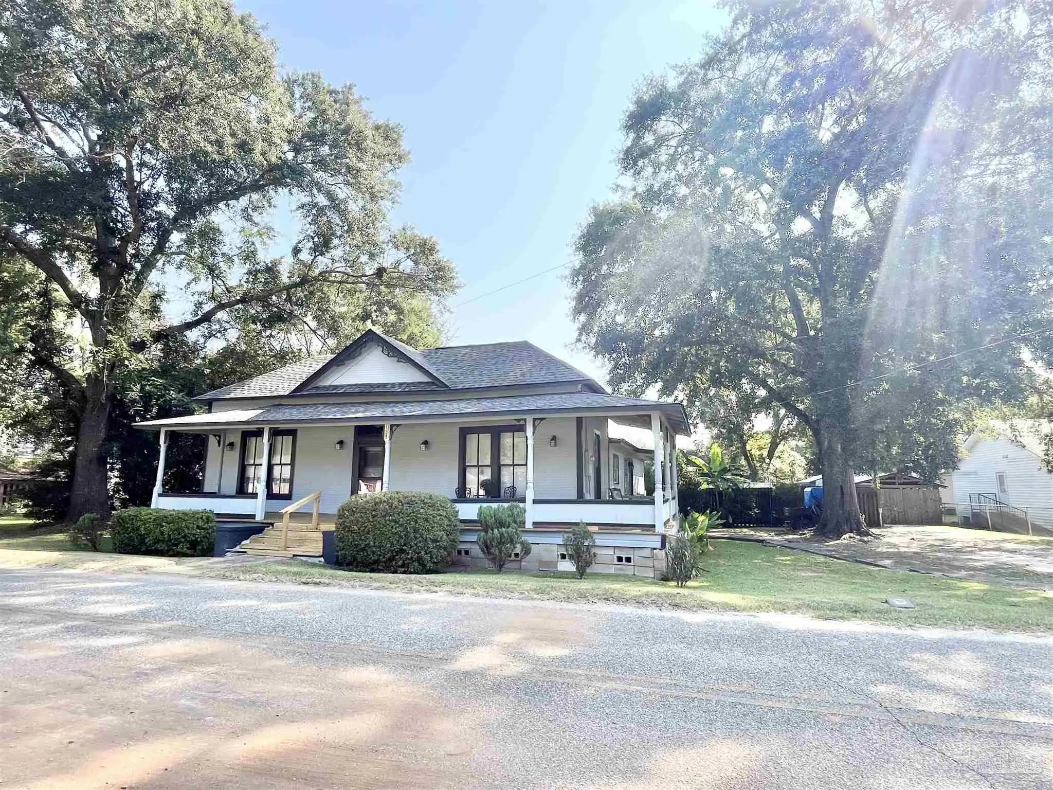 Step back in time with this charming 1920s-era home that beautifully blends vintage character with modern updates. Boasting impressive 13-foot ceilings and original hardwood flooring throughout most of the living spaces, this residence features a spacious eat-in kitchen complete with butcher block counters, wood cabinetry, and newer appliances. Enjoy formal dining, three comfortable bedrooms, two bathrooms, a cozy living room, and a versatile den. Recent upgrades include updated wiring and plumbing, a new architectural shingle roof (2019), a modern HVAC system (2019), and a new septic tank with field lines,(2019). Relax on the inviting wraparound porch or entertain in the backyard oasis featuring an inground pool with a new liner (2019), a pool pavilion with bar, and two handy outbuildings. New carpet and wood laminate flooring installed in 2025 add a fresh touch, making this home a perfect blend of nostalgia and contemporary comfor tALL SQ. FOOTAGE AND DIMENSIONS ARE APPROXIMATE AND IS THE BUYER'S RESPONSIBILITY TO VERIFY DURING DUE DILIGENCE PERIOD