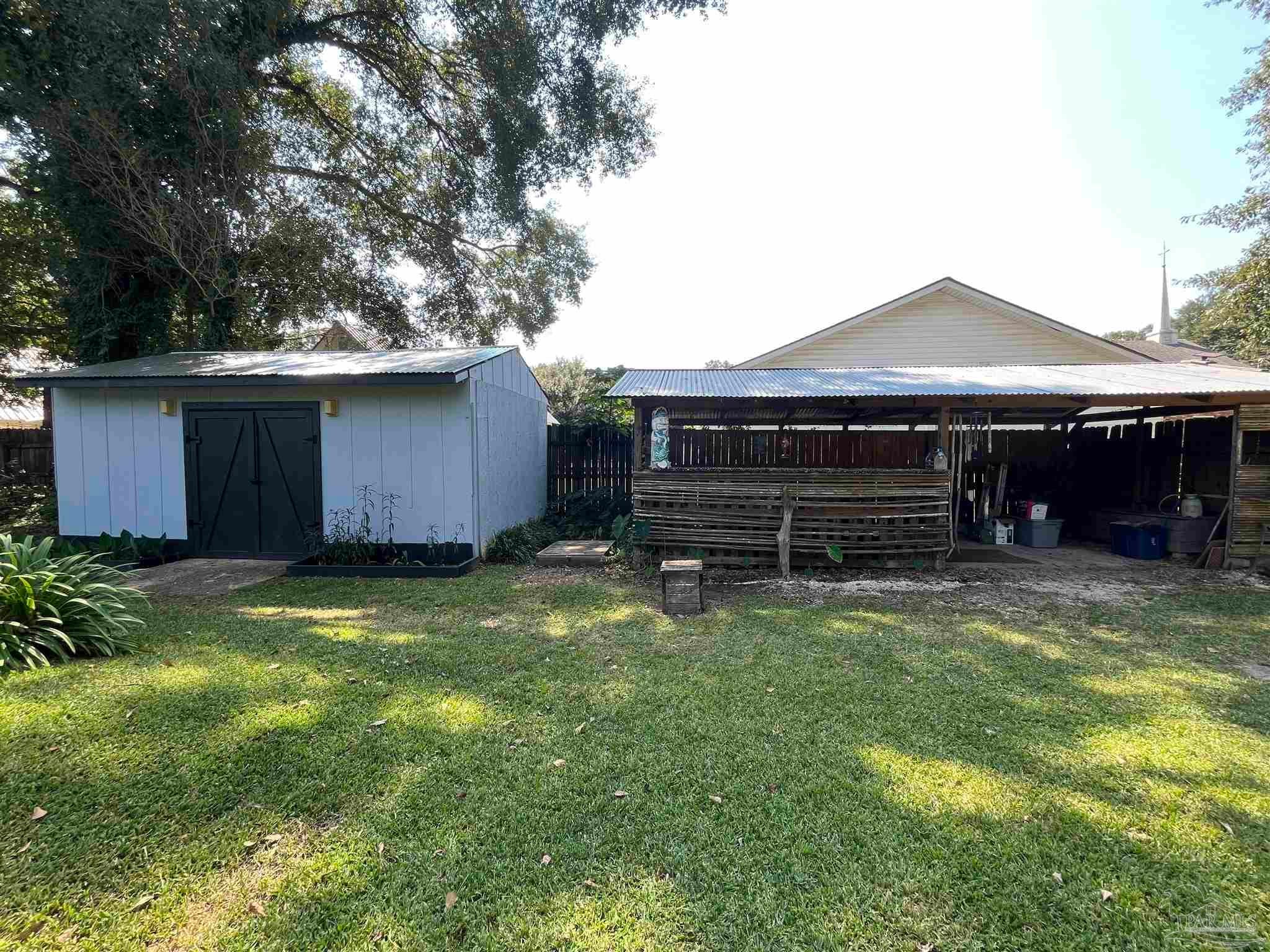 Step back in time with this charming 1920s-era home that beautifully blends vintage character with modern updates. Boasting impressive 13-foot ceilings and original hardwood flooring throughout most of the living spaces, this residence features a spacious eat-in kitchen complete with butcher block counters, wood cabinetry, and newer appliances. Enjoy formal dining, three comfortable bedrooms, two bathrooms, a cozy living room, and a versatile den. Recent upgrades include updated wiring and plumbing, a new architectural shingle roof (2019), a modern HVAC system (2019), and a new septic tank with field lines,(2019). Relax on the inviting wraparound porch or entertain in the backyard oasis featuring an inground pool with a new liner (2019), a pool pavilion with bar, and two handy outbuildings. New carpet and wood laminate flooring installed in 2025 add a fresh touch, making this home a perfect blend of nostalgia and contemporary comfor tALL SQ. FOOTAGE AND DIMENSIONS ARE APPROXIMATE AND IS THE BUYER'S RESPONSIBILITY TO VERIFY DURING DUE DILIGENCE PERIOD