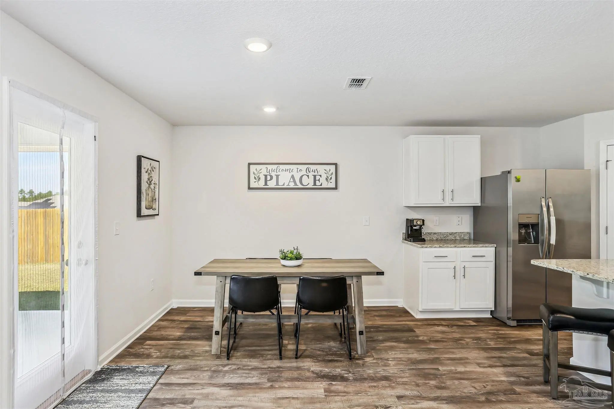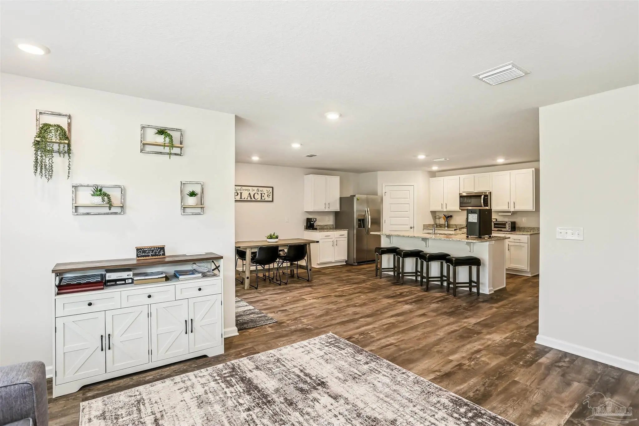 Move-in ready and fully furnished, this nearly new 4-bedroom, 2-bath home combines modern comfort with effortless style. Step inside to an open, spacious floor plan featuring durable, low-maintenance vinyl plank flooring throughout—no carpet anywhere. The kitchen is a true centerpiece, boasting granite countertops, an undermount sink, stainless steel appliances, a smooth-top range, a large island bar, and a convenient corner pantry. Lightly used as a second home, this property feels practically brand new. Enjoy peace and privacy in your backyard, which backs up to a 16-acre wooded preserve. Standard smart-home technology includes keyless entry, a SkyBell video doorbell, and a Quolsys touch panel offering remote control of lighting, climate, and security. Located in a highly rated school district within a golf cart–friendly community, this home offers more than just a great location. The HOA amenities include a sparkling pool, shaded gazebo, and outdoor kitchen—perfect for entertaining or relaxing weekends. Property can sell fully furnished (except computer and printer!) or for a reduced price without; they are flexible! Schedule your private tour today and experience this exceptional home for yourself!