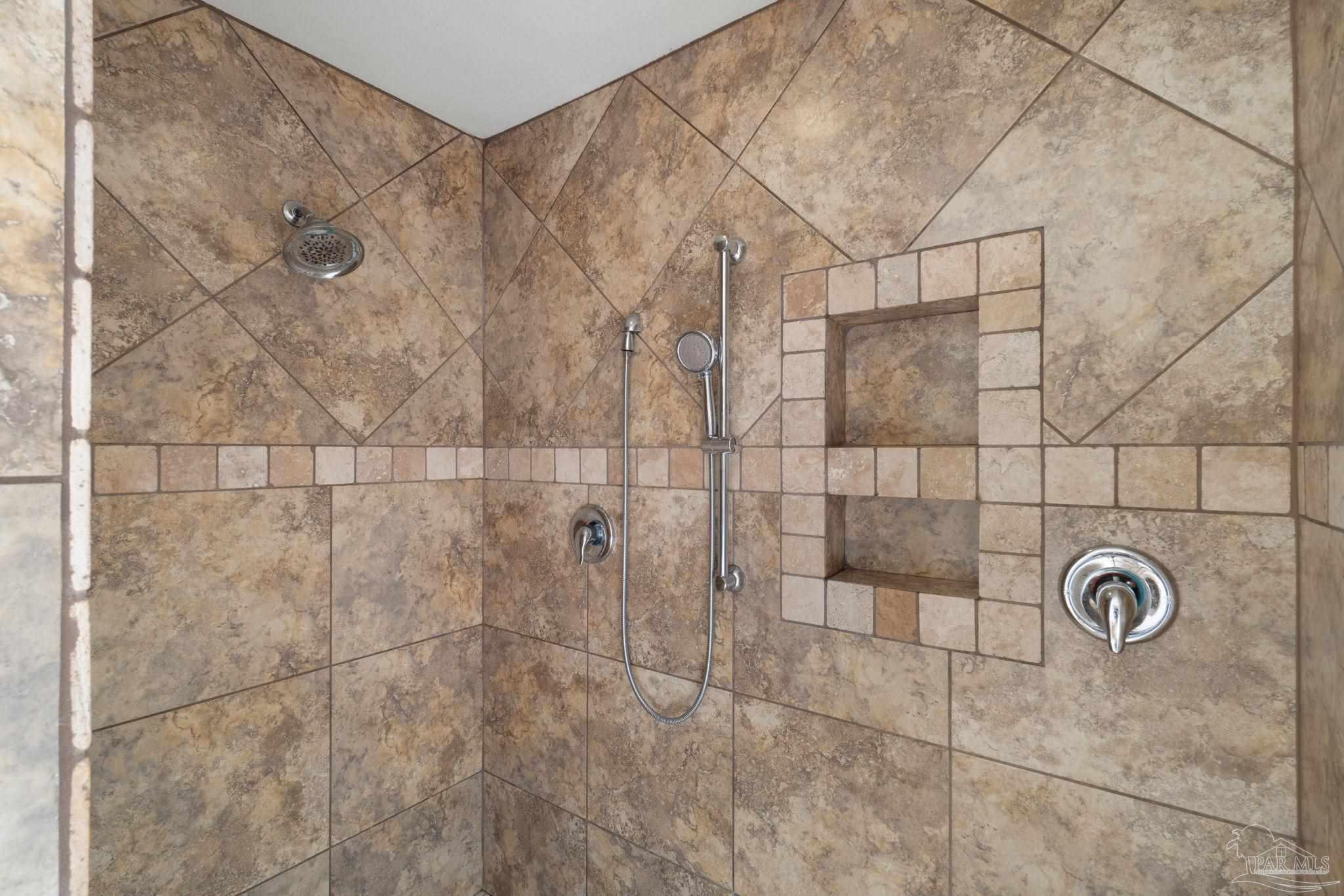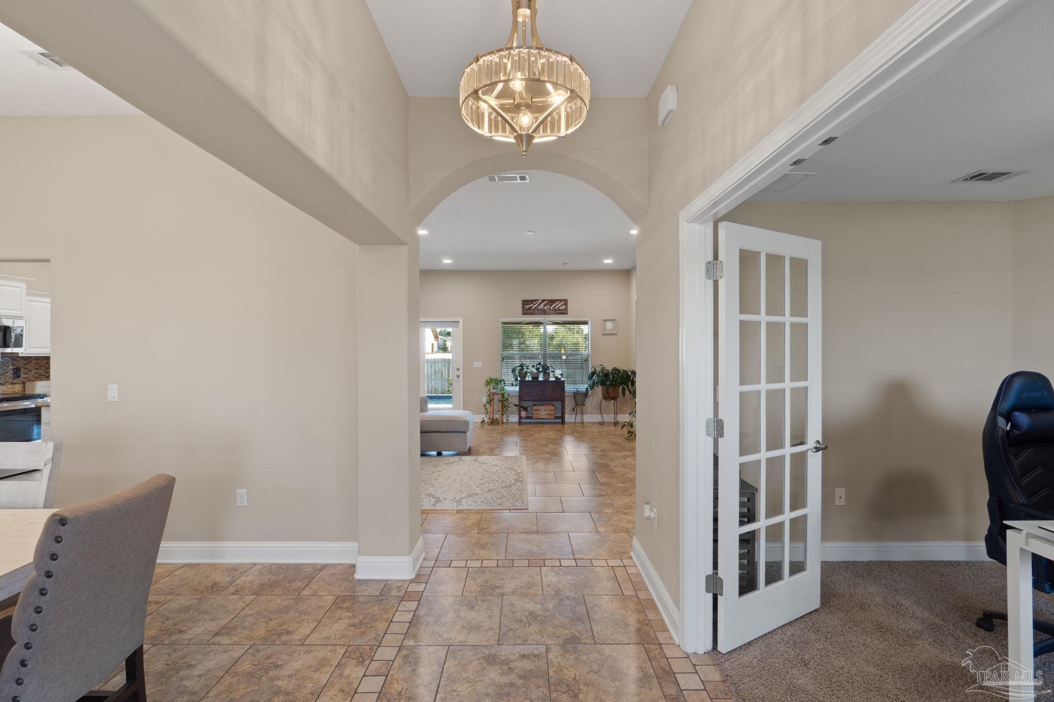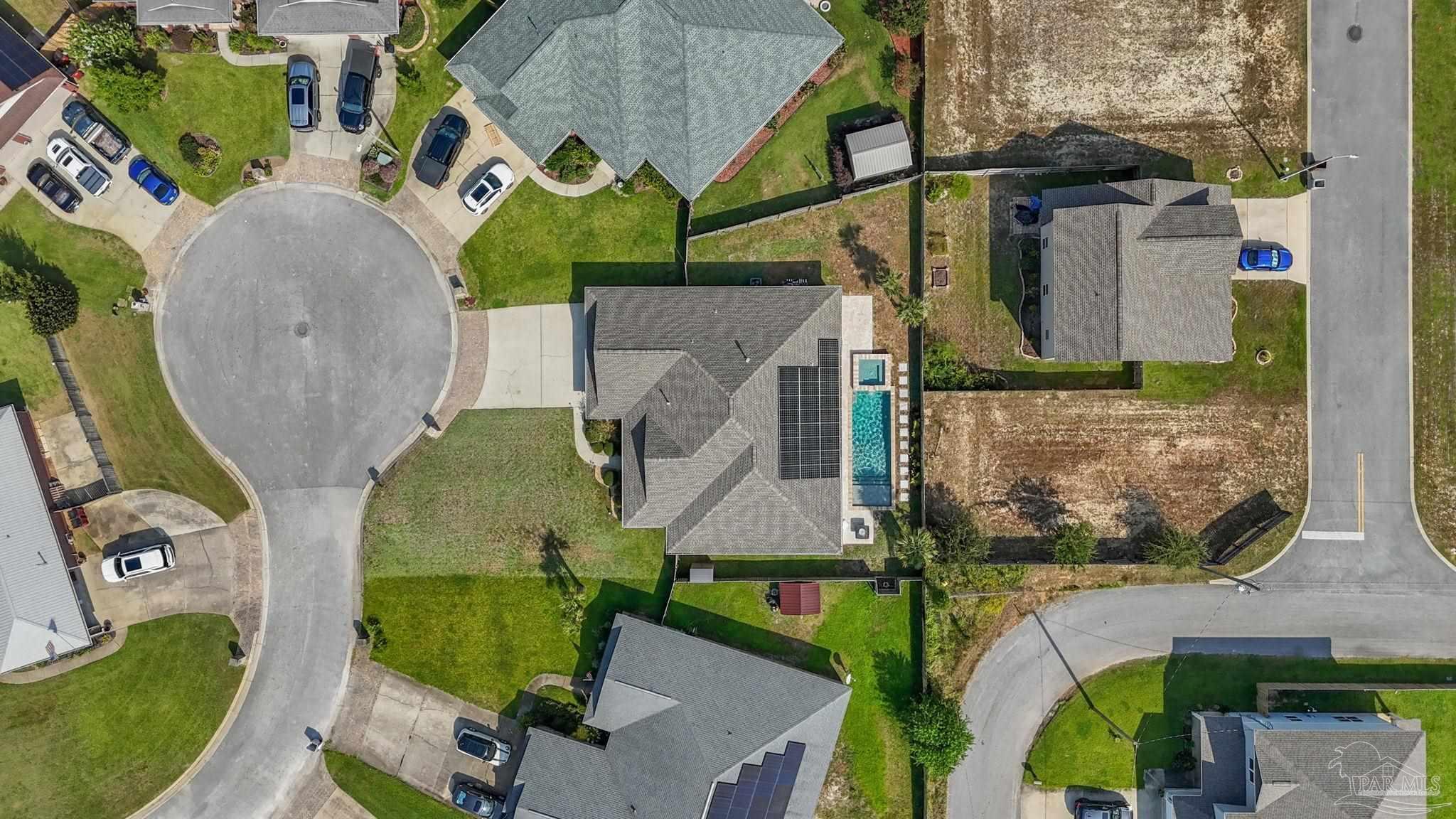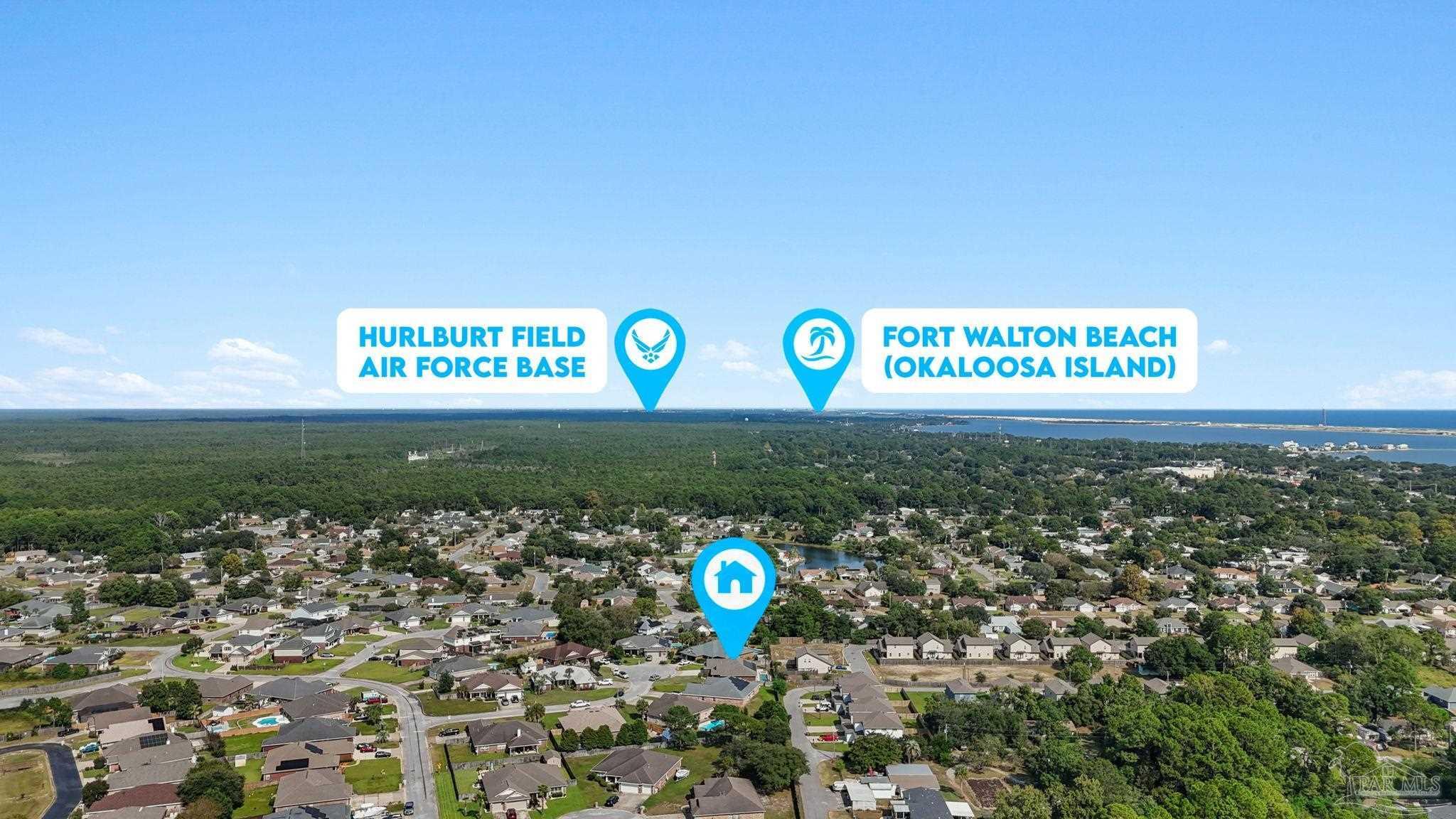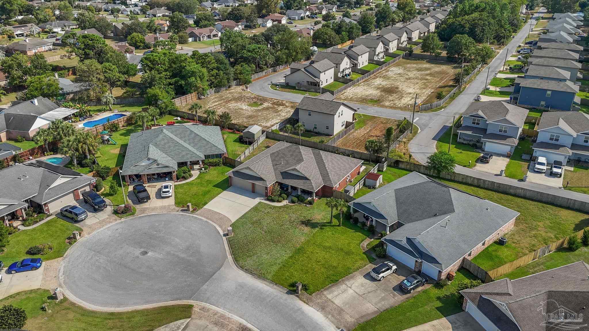Welcome to your dream POOL home in The Meadows! This stunning 4 bedroom, 3 bathroom all-brick home is tucked away on a quiet cul-de-sac in one of Navarre's most desirable neighborhoods. From the moment you arrive, you'll notice the charming covered front porch, extended driveway, and spacious 3-car garage. Inside, the thoughtful floor plan also offers a formal dining room and a versatile office/flex room behind French doors. The living room features a custom built-in, while the kitchen is a showstopper with granite countertops, stainless steel appliances, and a tasteful backsplash. The oversized laundry room with built-ins serves as a butler pantry for added convenience and storage. The spacious master bedroom is a true retreat, complete with a fantastic en suite bathroom featuring dual vanities, a soaking tub, a walk-in tiled shower with dual shower heads and two walk in closets! The split floor plan features three other great sized bedrooms on the other side of the house, two of which with a full bathroom between them. The 4th bedroom has a walk-in closet and the hallway accessible full third bathroom also has access directly to the back patio, perfect for access to the pool while you're outside having fun. Speaking of which...outdoors your private oasis awaits! Enjoy the custom saltwater gunite pool and hot tub, all overlooked by a covered back patio perfect for relaxing or entertaining year-round and bordered by beautiful palm trees! Additional upgrades include fully paid-off solar panels, a new roof (2021), and a new water heater (2024) for peace of mind. With 4 spacious bedrooms, 3 full baths, and plenty of flexible living space, this home blends comfort, efficiency, and style in an unbeatable East Navarre location close to Hurlburt Field and Navarre's beautiful sugar white beaches. Don't miss your chance to live in The Meadows, schedule your showing today!