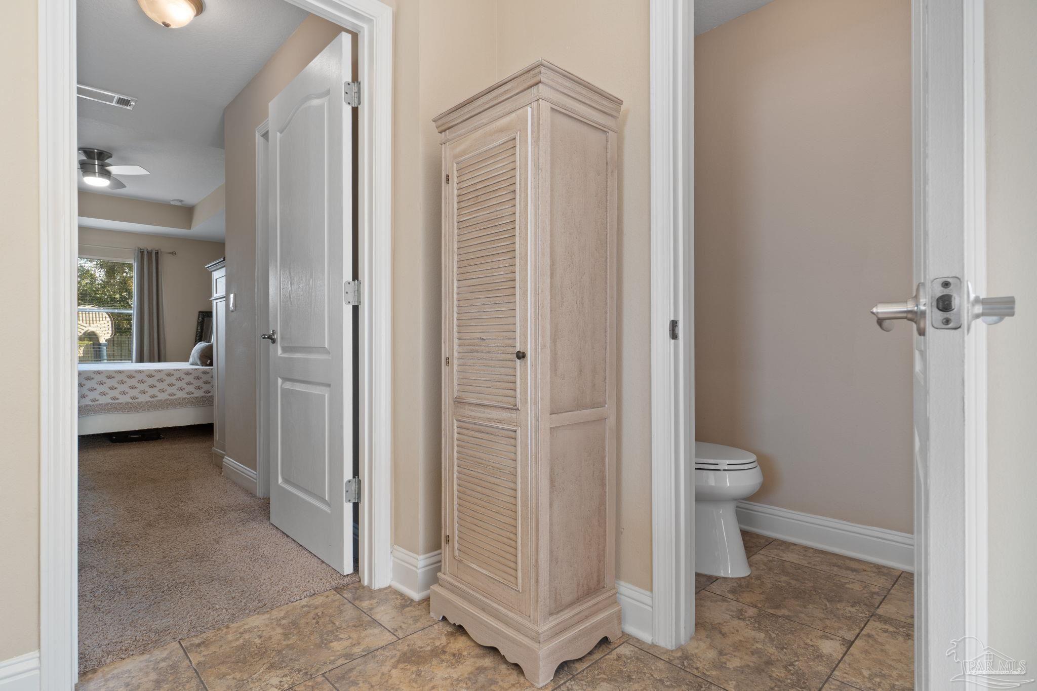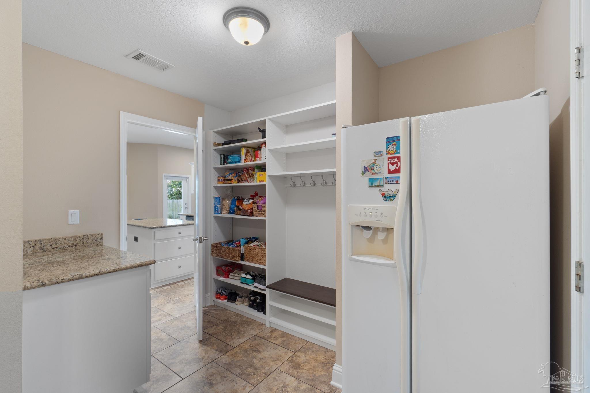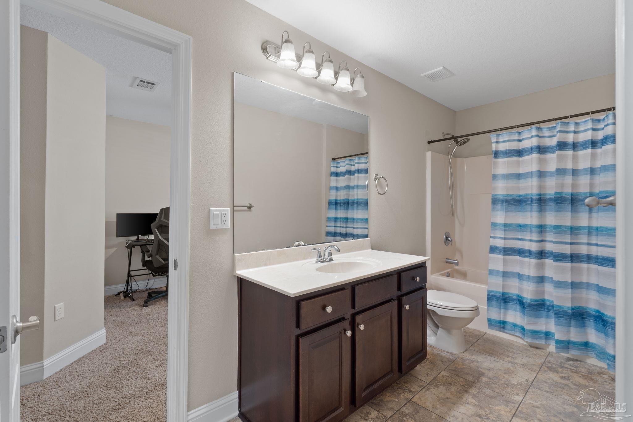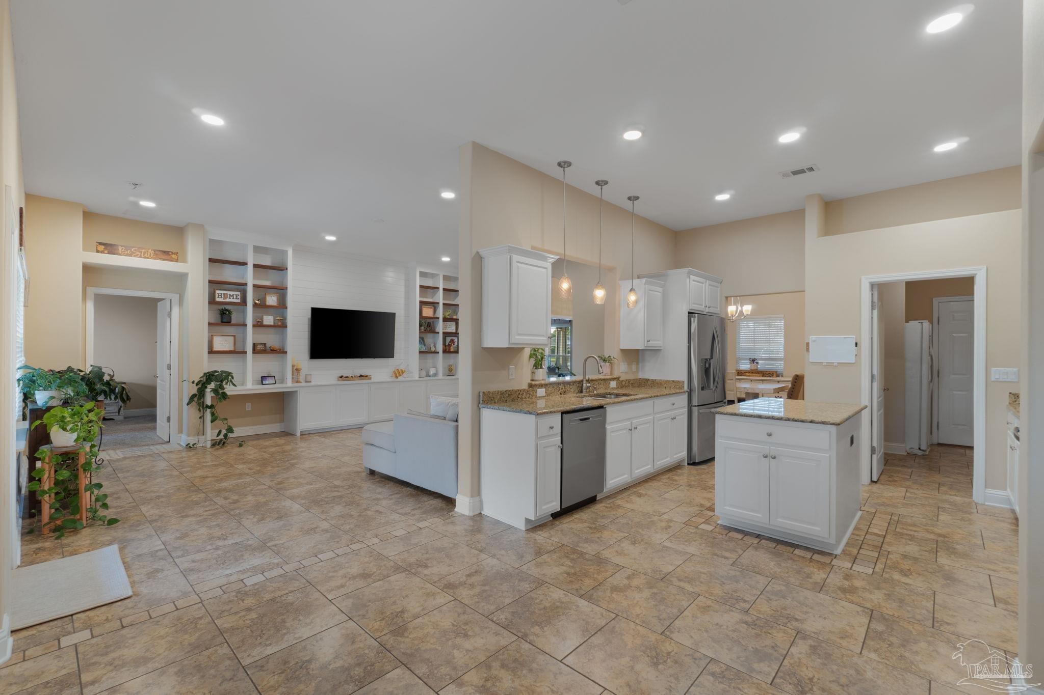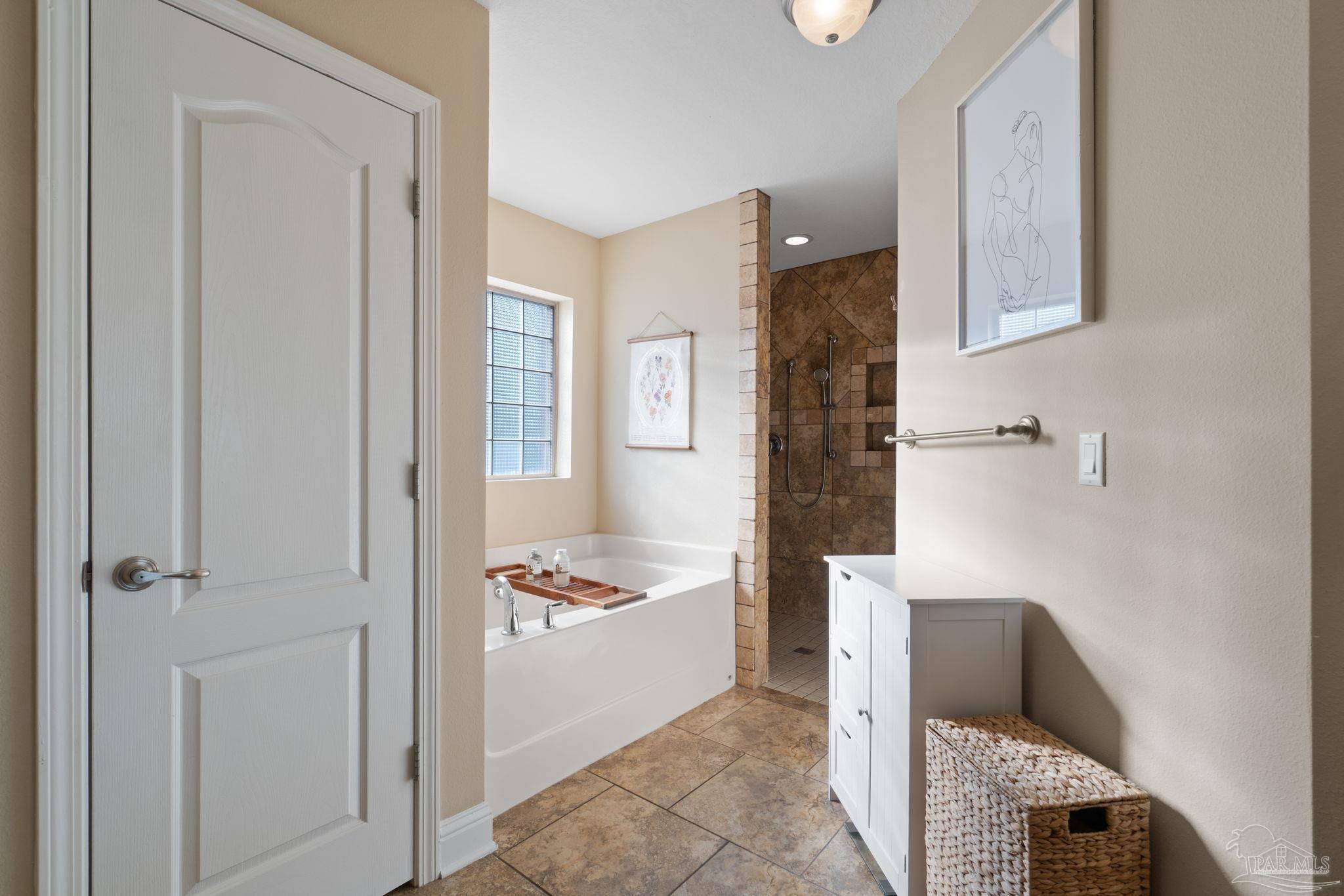 Welcome to your dream POOL home in The Meadows! This stunning 4 bedroom, 3 bathroom all-brick home is tucked away on a quiet cul-de-sac in one of Navarre's most desirable neighborhoods. From the moment you arrive, you'll notice the charming covered front porch, extended driveway, and spacious 3-car garage. Inside, the thoughtful floor plan also offers a formal dining room and a versatile office/flex room behind French doors. The living room features a custom built-in, while the kitchen is a showstopper with granite countertops, stainless steel appliances, and a tasteful backsplash. The oversized laundry room with built-ins serves as a butler pantry for added convenience and storage. The spacious master bedroom is a true retreat, complete with a fantastic en suite bathroom featuring dual vanities, a soaking tub, a walk-in tiled shower with dual shower heads and two walk in closets! The split floor plan features three other great sized bedrooms on the other side of the house, two of which with a full bathroom between them. The 4th bedroom has a walk-in closet and the hallway accessible full third bathroom also has access directly to the back patio, perfect for access to the pool while you're outside having fun. Speaking of which...outdoors your private oasis awaits! Enjoy the custom saltwater gunite pool and hot tub, all overlooked by a covered back patio perfect for relaxing or entertaining year-round and bordered by beautiful palm trees! Additional upgrades include fully paid-off solar panels, a new roof (2021), and a new water heater (2024) for peace of mind. With 4 spacious bedrooms, 3 full baths, and plenty of flexible living space, this home blends comfort, efficiency, and style in an unbeatable East Navarre location close to Hurlburt Field and Navarre's beautiful sugar white beaches. Don't miss your chance to live in The Meadows, schedule your showing today!