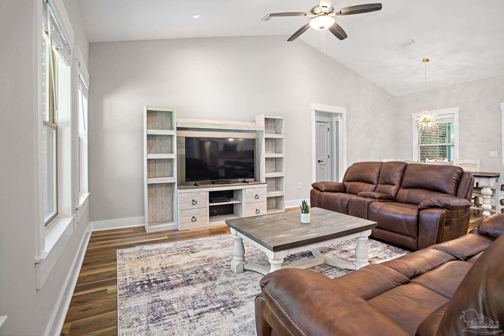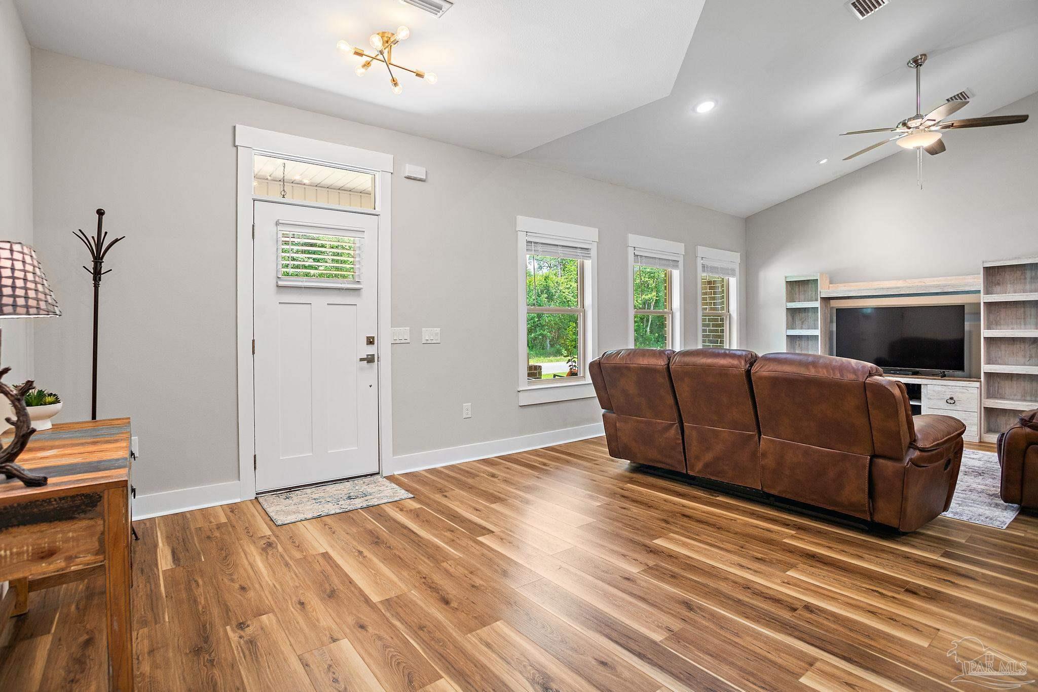 This stunning home comes furnished and turnkey! Move in today and have everything needed to start living your dream immediately. Located only 10 minutes north of Navarre Beach just off the newly paved Highway 87. Situated on a very low traffic street you’ll appreciate the peace and quiet this location has to offer. Across the street is an all natural area so you’ll always have beautiful views and privacy from your front windows. The yard, landscaping, and exterior are in great shape, no large improvement projects here! When you step inside you'll notice the high ceilings, open design, and tasteful fixtures and furnishings like a pot filler, touch-less kitchen sink and ample quartz kitchen counters. The home is in absolutely beautiful condition. There is virtually no wear and tear and everything including appliances are as close to new as you can get. The home has a large screened in back patio equipped with a 220v hook up for a hot tub, deluxe BBQ, three ceiling fans, and 2 seating areas. Some other great features of the home and location are the fully fenced in backyard, within walking distance to the Live Oak boat ramp, no HOA, very low maintenance landscaping, and afternoon shade that helps with your electricity bill in the hot summer months. Please contact us today to schedule your showing!This is a rare gem that won’t last long.