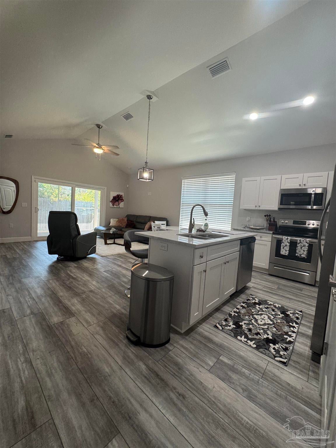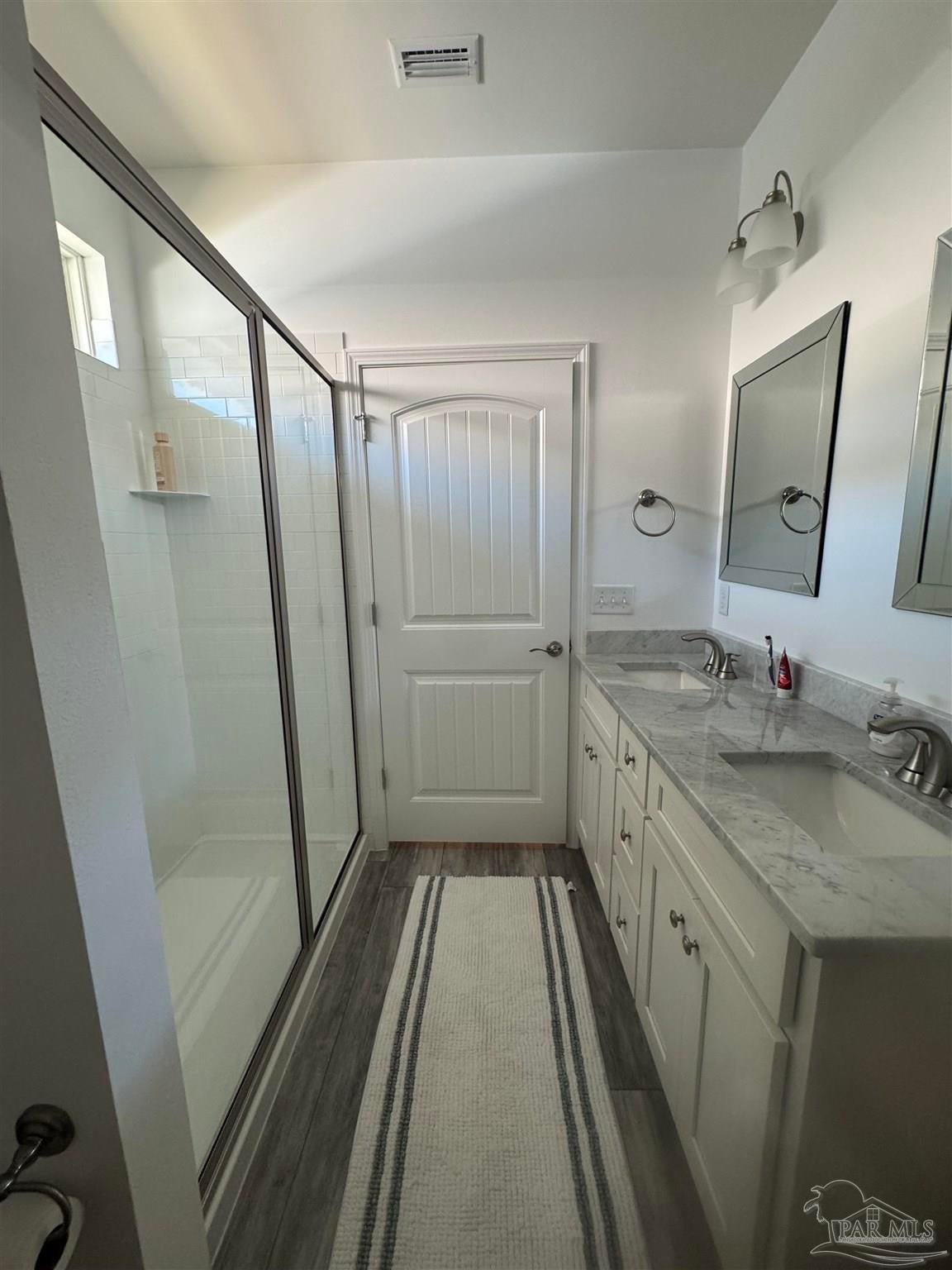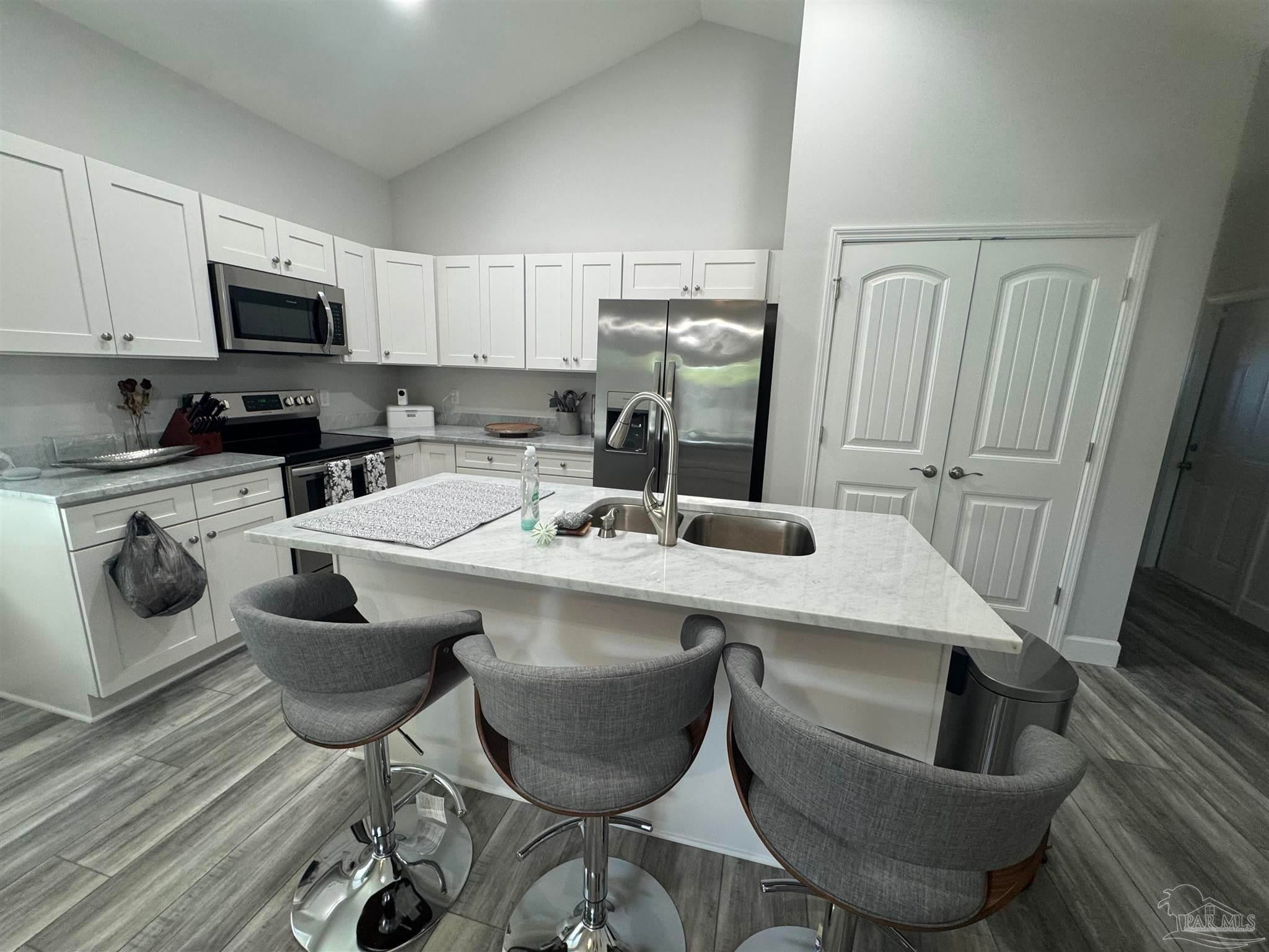 This beautiful home is one of a kind! Nobody has ever lived here. The owners have only stayed here ten days on three different occasions while visiting from Texas. The appliances have never been used! The home is located in Treasure Hill Park. Come and living near the water in your own cottage-style home. This home is modern with all of the creature comforts you will love. This home is a three bedroom. Very spacious laundry when you walk in. The back yard is fenced in, one car garage, luxury vinyl floors, granite countertops, stainless steel appliances, sprinkler system, and ADT security system. The open concept living room/ kitchen has a vaulted ceiling. The master bedroom has a tray ceiling, tiled in stand up shower, and double vanities. Very nice area with playground near by with tennis courts, basketball courts, and picnic area. Very close to marinas, shopping, and the BEACH.