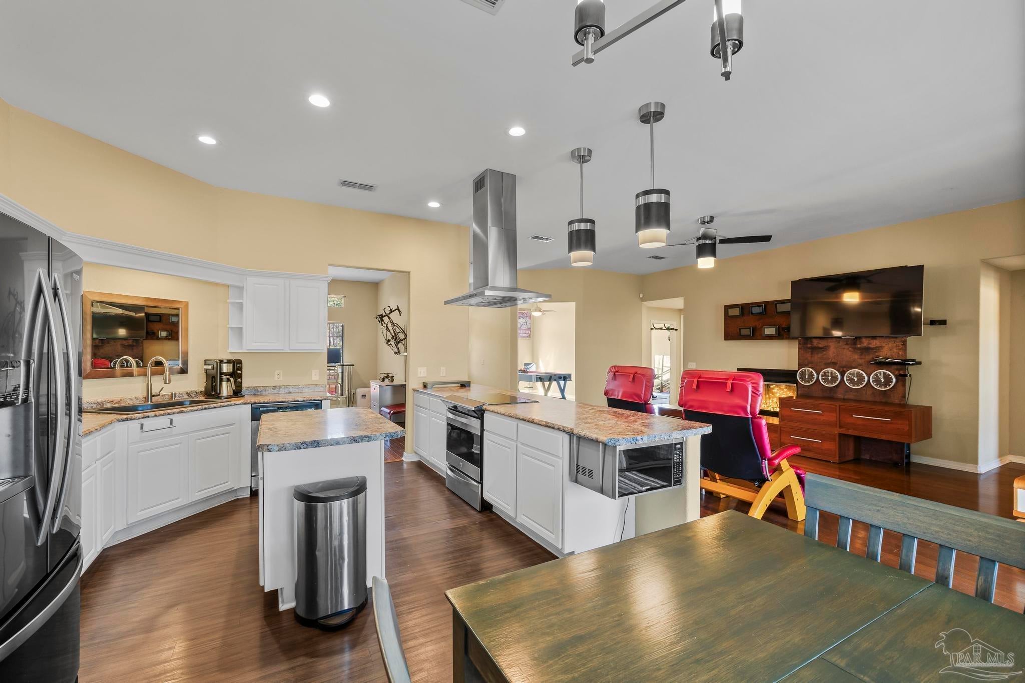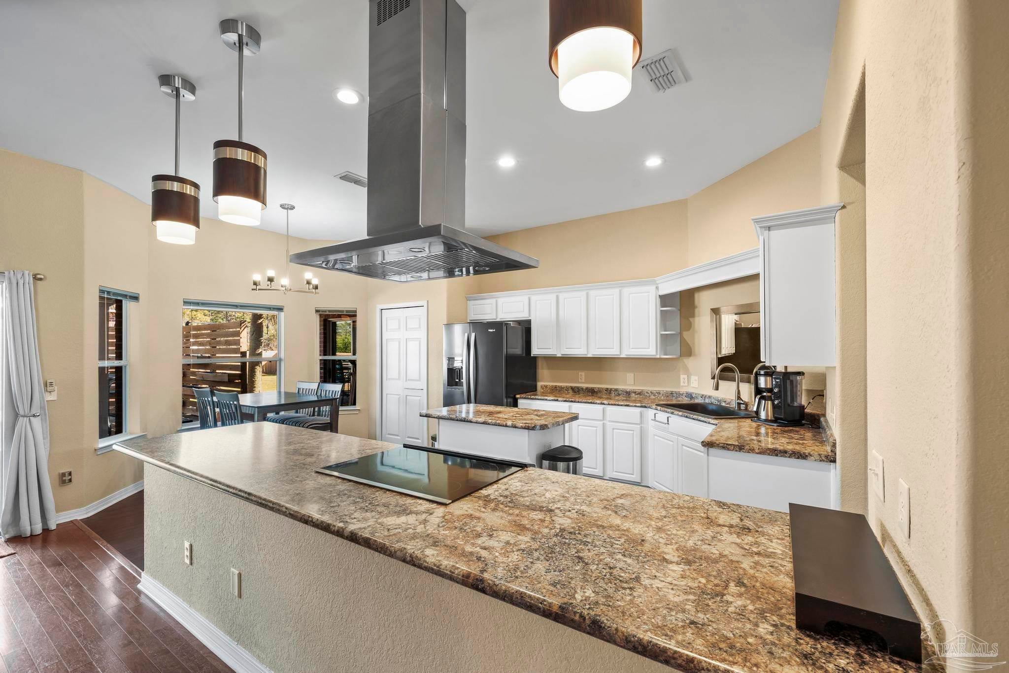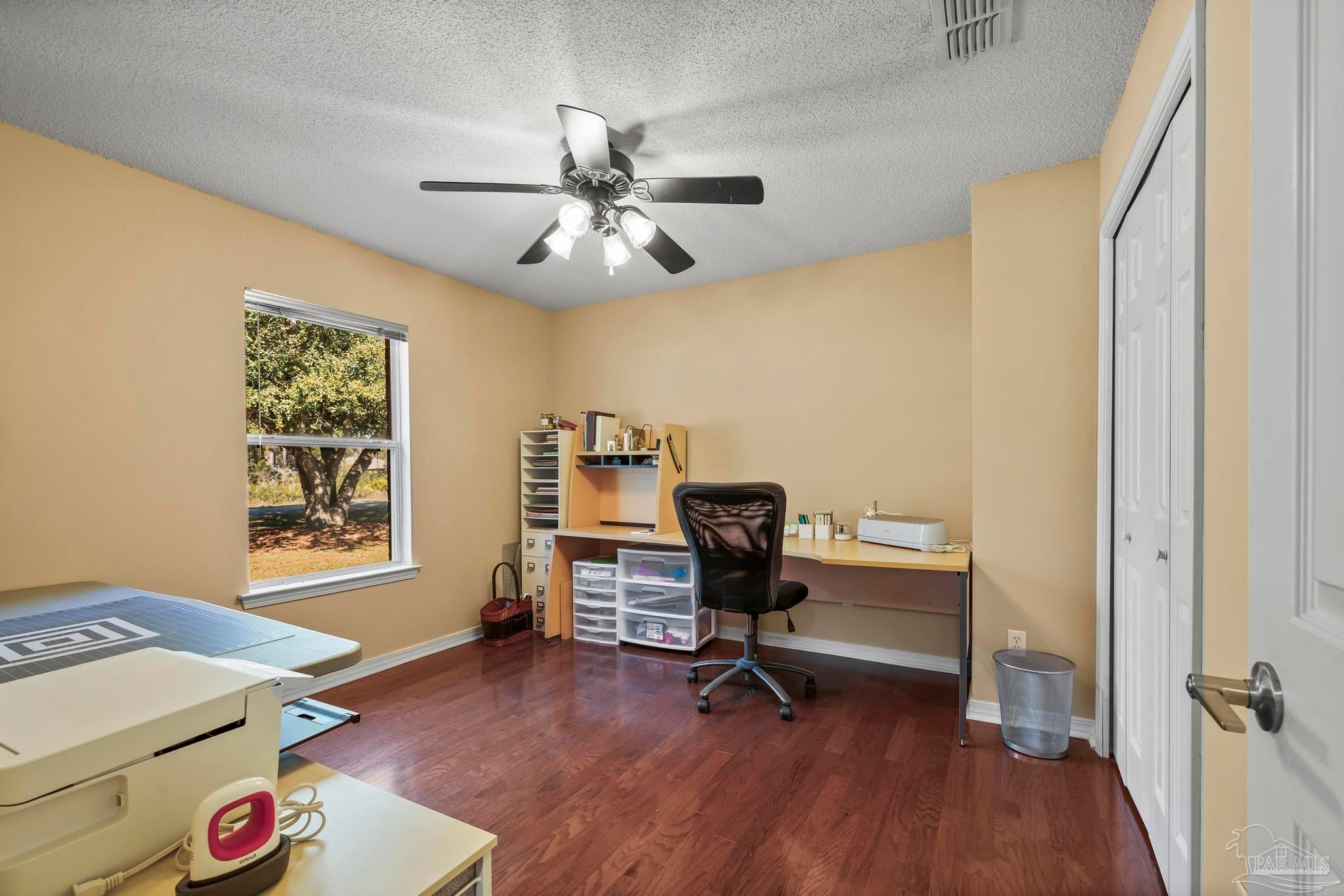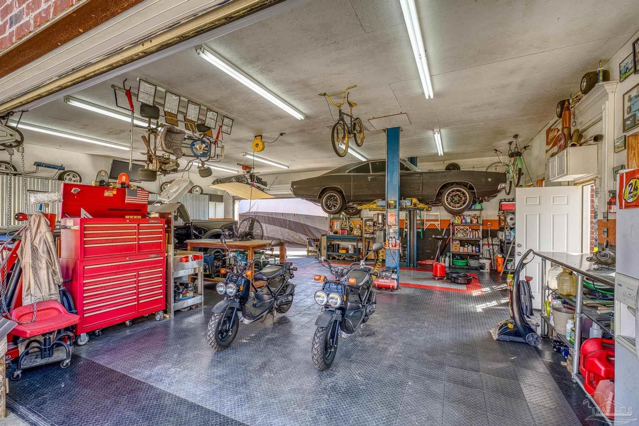 LIMITED TIME OFFERING for this home with standout feature of an additional detached - ALL BRICK - 1200 sq ft garage – perfect for the tinkerer or just to SAVE MONEY on storage. This versatile space offers endless possibilities – ideal for the ultimate game room, gym, entertainment area for holidays or other get-togethers, storing boats, classic cars, or creating a workshop or hobby area. There is a separate electrical panel, 3 large 8' tall by 16' wide roll up doors, lots of built-in storage cabinets & additional driveways. Embrace the epitome of Florida living in this expansive - meticulously maintained home, nestled on a sprawling corner lot with an on-property RV parking area in the backyard. Located off the beaten paths yet within the coveted Holley By The Sea community in Navarre. Step inside & be captivated by the generous layout, designed for seamless entertaining & comfortable living. The home boasts 4 bedrooms & 3 baths, providing ample space for everyone. There is a formal dining room & FLEX room in the front of the home that flow through to the kitchen & great room which are flooded with natural light, creating an inviting atmosphere. The interior features high smooth ceilings, hardwood flooring, updated fixtures, & open kitchen with an island & lots of counter space. The guest suite features a bath with door to the covered patio. The main suite is a true sanctuary with door to the patio & en-suite bath, offering tile flooring, 2 spacious walk-in closets, water closet, soaking tub & separate shower. Extend your living space outdoors onto the large patio & deck complete with built-in bar, NEW fire pit & planter box wall, perfect for enjoying the gentle breezes & Florida sunshine. The expansive corner .63 acre lot provides ample room for outdoor activities, gardening, or simply relaxing in your private oasis & there is plenty of shade in the back yard & also for a pool but who needs a pool since HBTS offers 3 & lots of amenities. SELLER CONCESSIONS OFFERED.