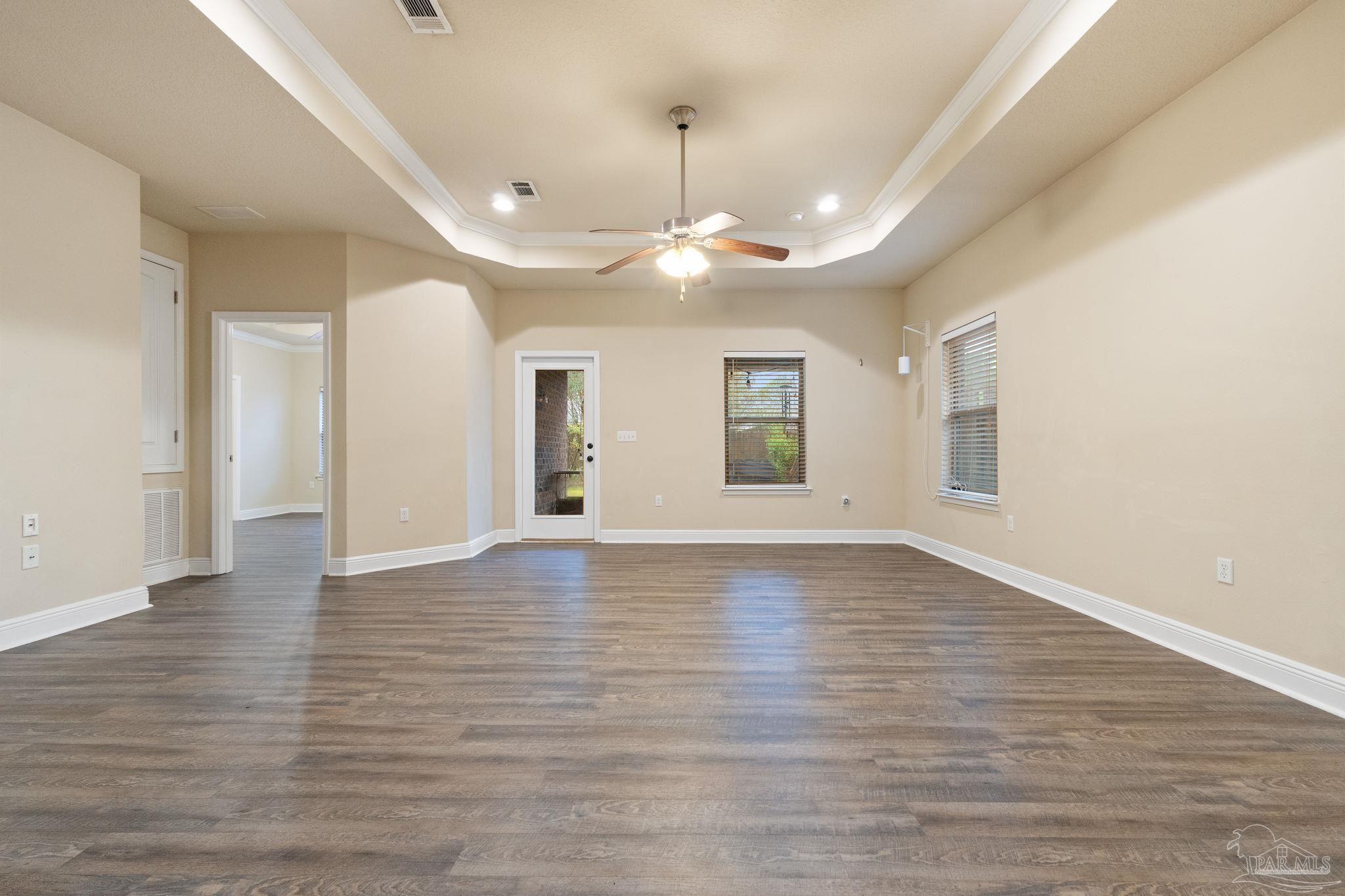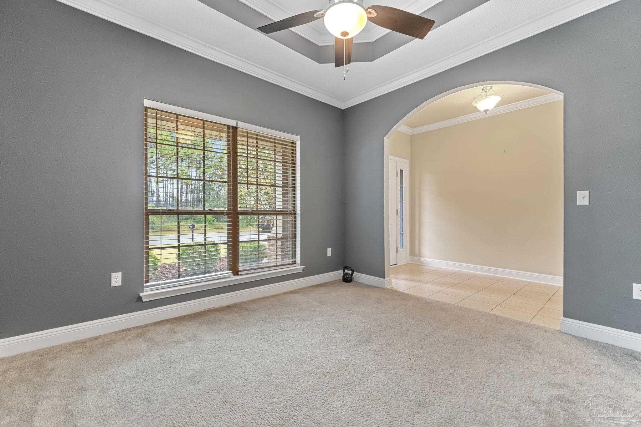 Welcome to a beautiful well-maintained home in the desirable Autumn Meadows Subdivision just outside the back gate of NAS. Built in 2013, this one story residence offers an open and inviting floor plan, perfect for entertaining or everyday living. This 3 bedroom, 2 full baths at approximately 1979 square foot is a spacious split bedroom floor plan with a separate office/den that could serve as a forth bedroom. Stunning kitchen and baths feature granite countertops, walk in pantry and plenty of cabinetry. Elegant touches throughout with 9- foot ceilings, crown molding, recessed lighting. Flooring includes tile in foyer, kitchen and baths, LVP Family room and primary bedroom, carpet in secondary bedrooms and office. Cozy family room with a fireplace that opens to a covered porch-perfect for indoor and outdoor flow. Assumable VA loan, ACT FAST!! WONT LAST!!!!