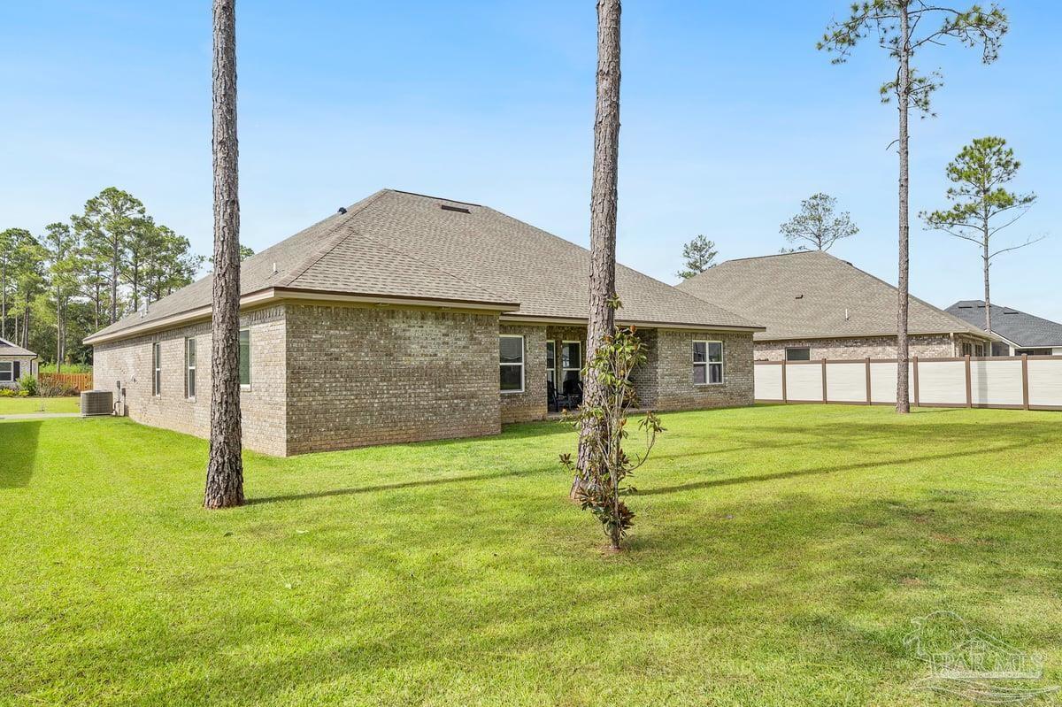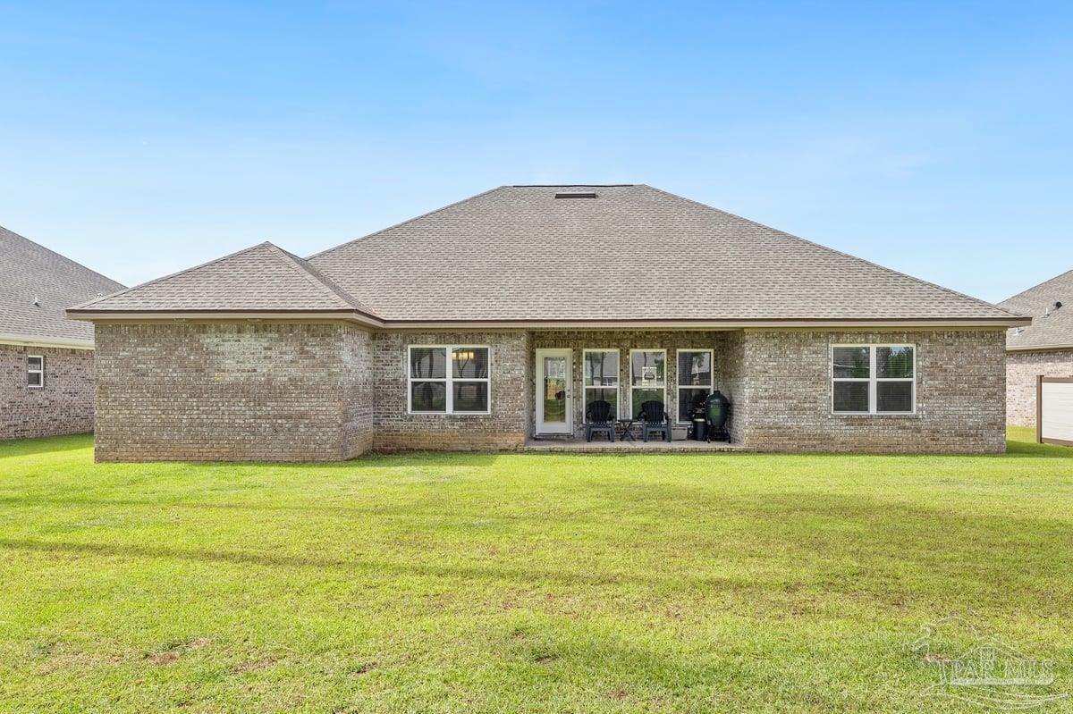 Welcome to 2024-built luxury home in the highly desirable Yellow River Ranch subdivision of Milton, Florida. This 2,514 sq ft single-family residence offers 4 spacious bedrooms and 3 full bathrooms, thoughtfully designed for modern living. The open-concept kitchen features quartz countertops, soft-close cabinetry, a large center island, and premium appliances including a gas oven/range, built-in microwave, and dishwasher. The living and dining areas flow seamlessly, ideal for both everyday comfort and entertaining. Smart home technology includes a Ring doorbell camera and integrated management system allowing remote control of thermostat, lighting, and garage access via mobile device. The covered lanai overlooks a landscaped backyard with a full sprinkler system. Community amenities include a pool, playground, and picnic area, with basketball and pickleball courts currently under construction. Conveniently located near schools, shopping, and outdoor recreation, this home combines style, function, and neighborhood appeal. Schedule your private showing today and experience the best of Yellow River Ranch living.