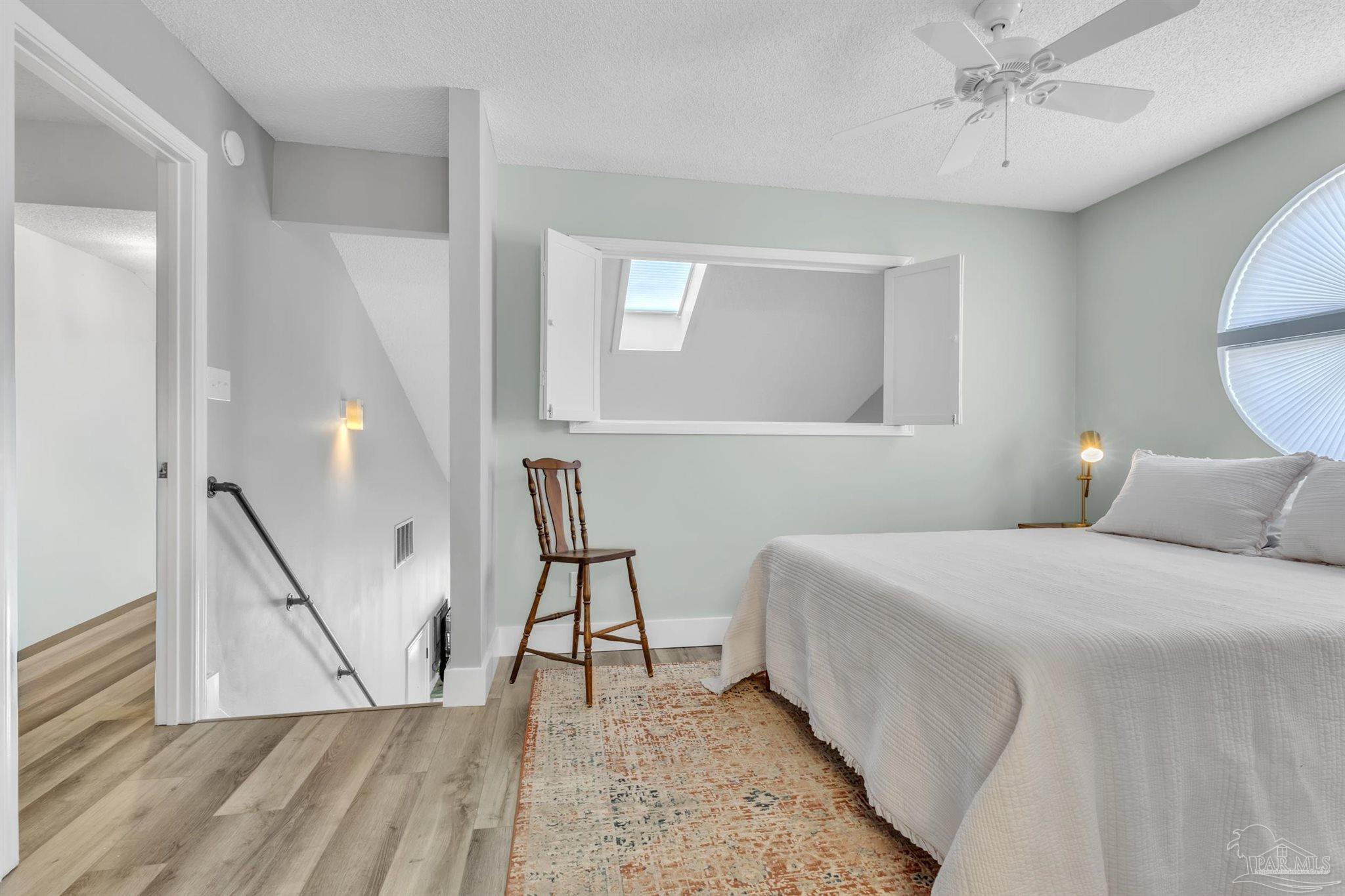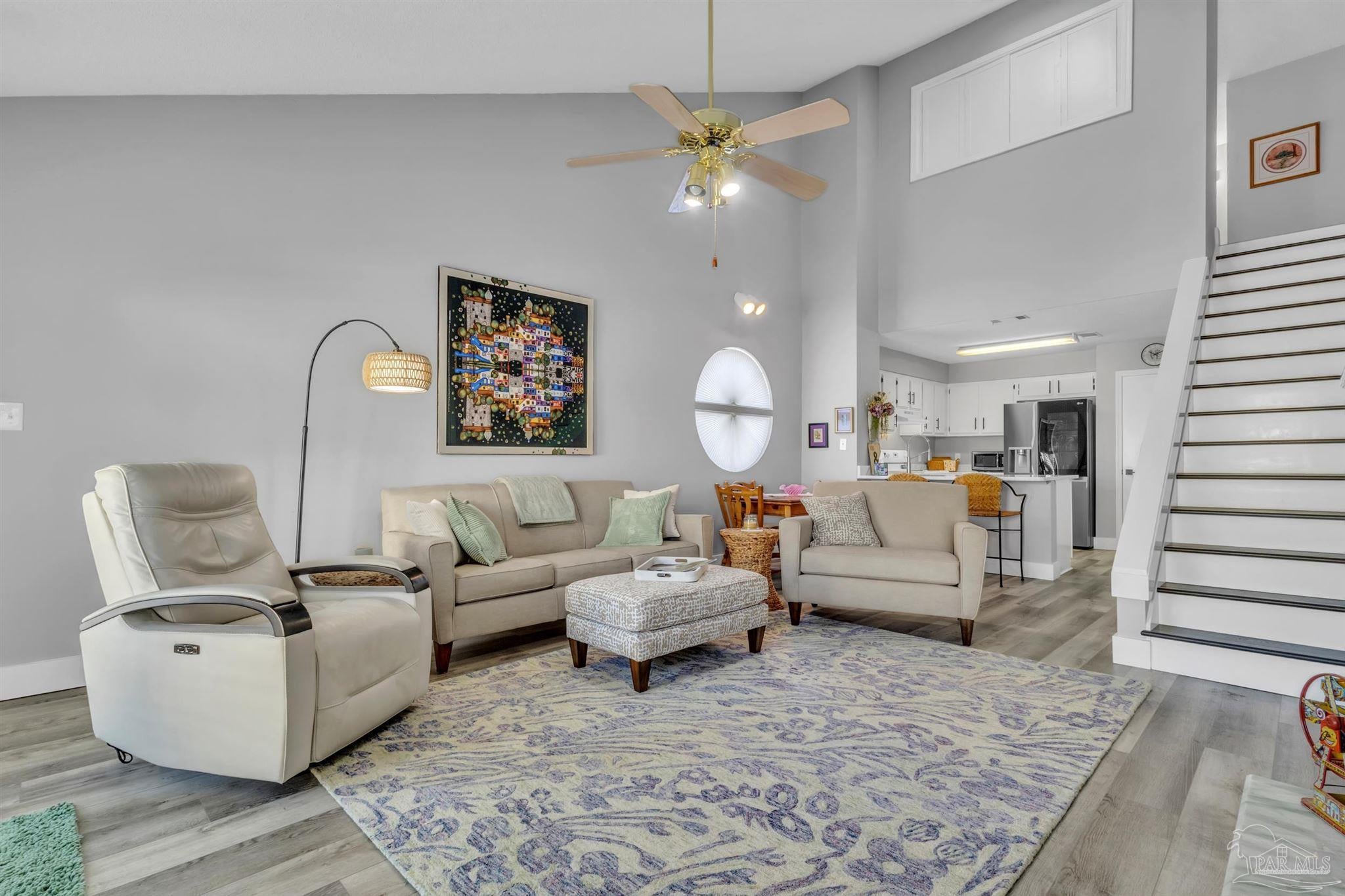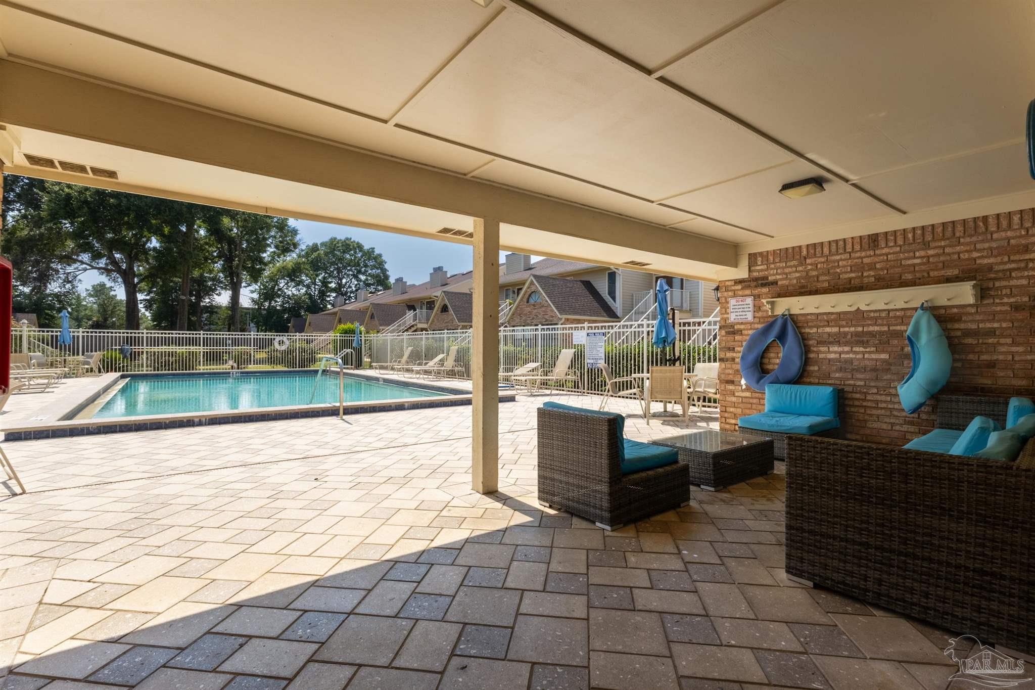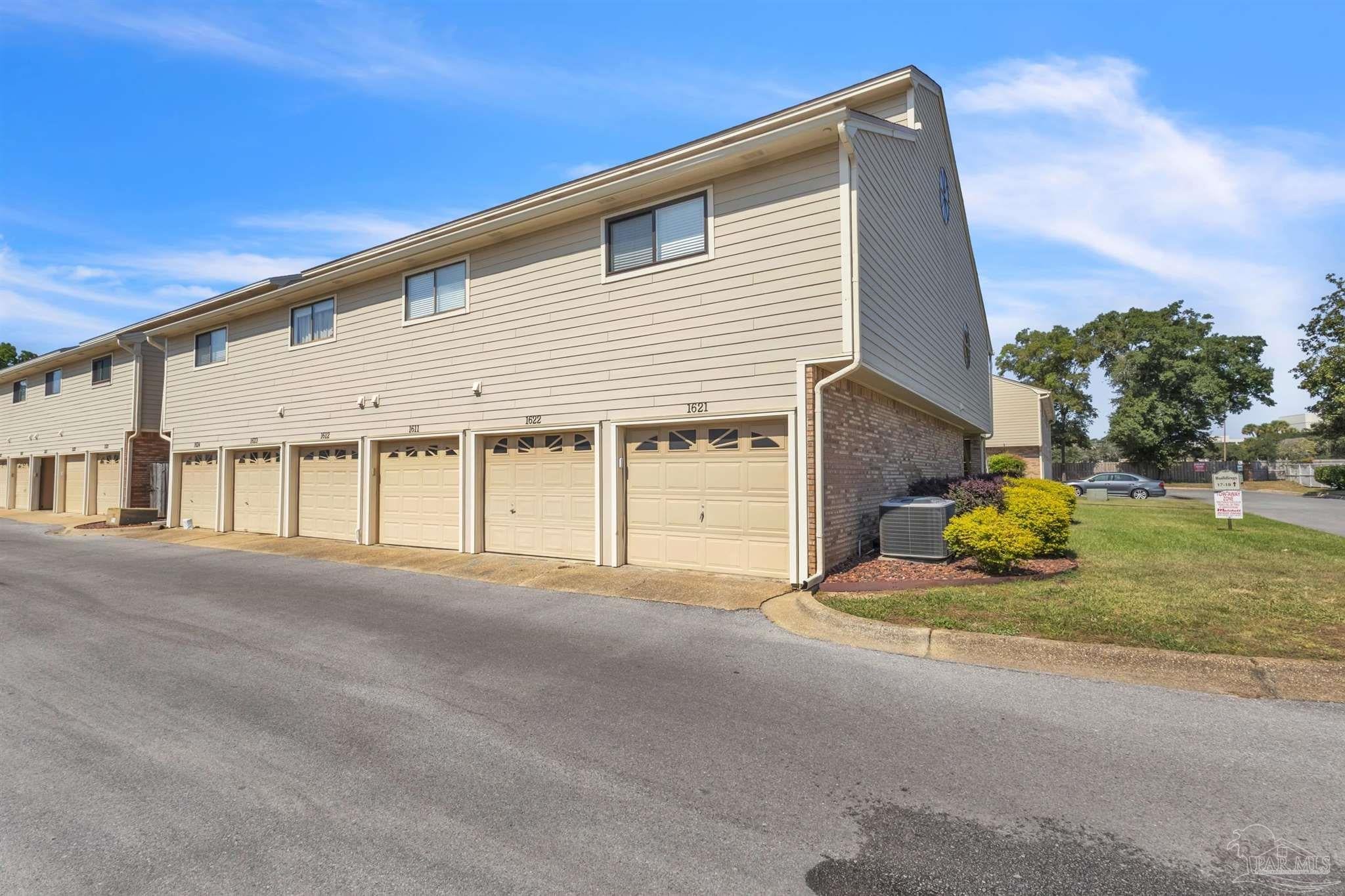 *First floor bedroom is considered primary, second floor is considered a loft bedroom*. Beautifully updated 2-bedroom, 2-bathroom condo in the highly desirable Villas on the Square community. This home blends comfort and style with a dramatic wrap-around quartzite fireplace that anchors the open living area, creating the perfect spot for relaxing evenings or entertaining. Just off the living room, a charming reading nook invites you to curl up with a book and soak in the natural light streaming through the windows. The home also boasts unique architectural details, including circular windows that fill the space with natural light. The modern kitchen features crisp white cabinets, marble countertops, sleek hardware, and stainless-steel appliances, while both bedrooms offer comfort and privacy. You'll also enjoy that the laundry is inside this unit and not in the garage, making laundry days a breeze with no stair climbing required! A cozy front porch provides the perfect spot for your morning coffee, while the community’s sparkling pool is just steps away for weekend relaxation. With recent upgrades, including luxury vinyl flooring, marble countertops, and an updated bathroom with a large porcelain tile step-in shower, this home is truly move-in ready. Located in the heart of Pensacola, you’re minutes from Cordova Mall, Pensacola International Airport, downtown dining, NAS Pensacola, and the area’s world-famous white-sand beaches. Whether you’re looking for your first home, downsizing for a simpler lifestyle, or adding to your investment portfolio, this condo offers the perfect blend of location, style, and value. This is your chance to own a stylish home in one of Pensacola’s most convenient neighborhoods. Don’t wait, schedule your showing today!