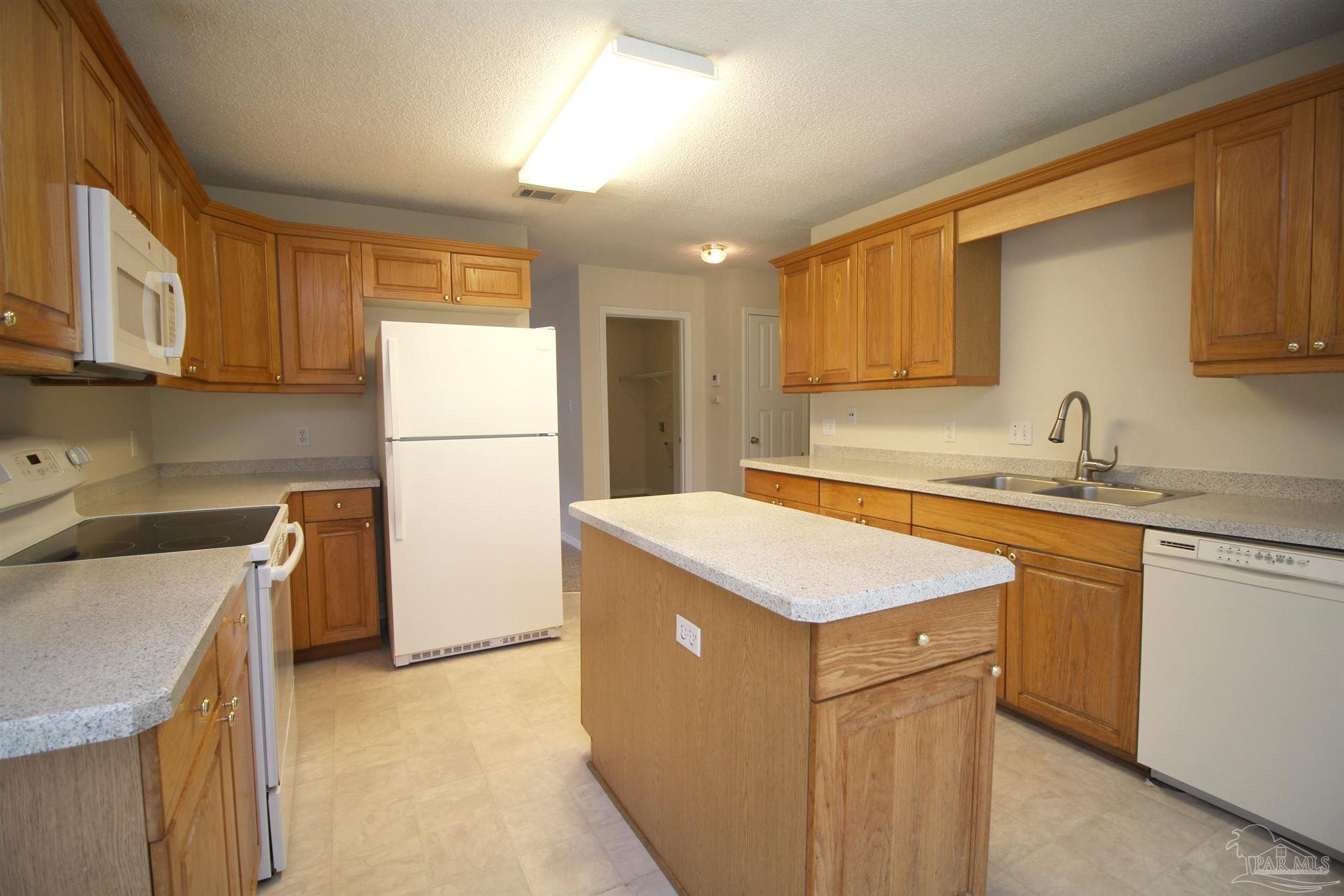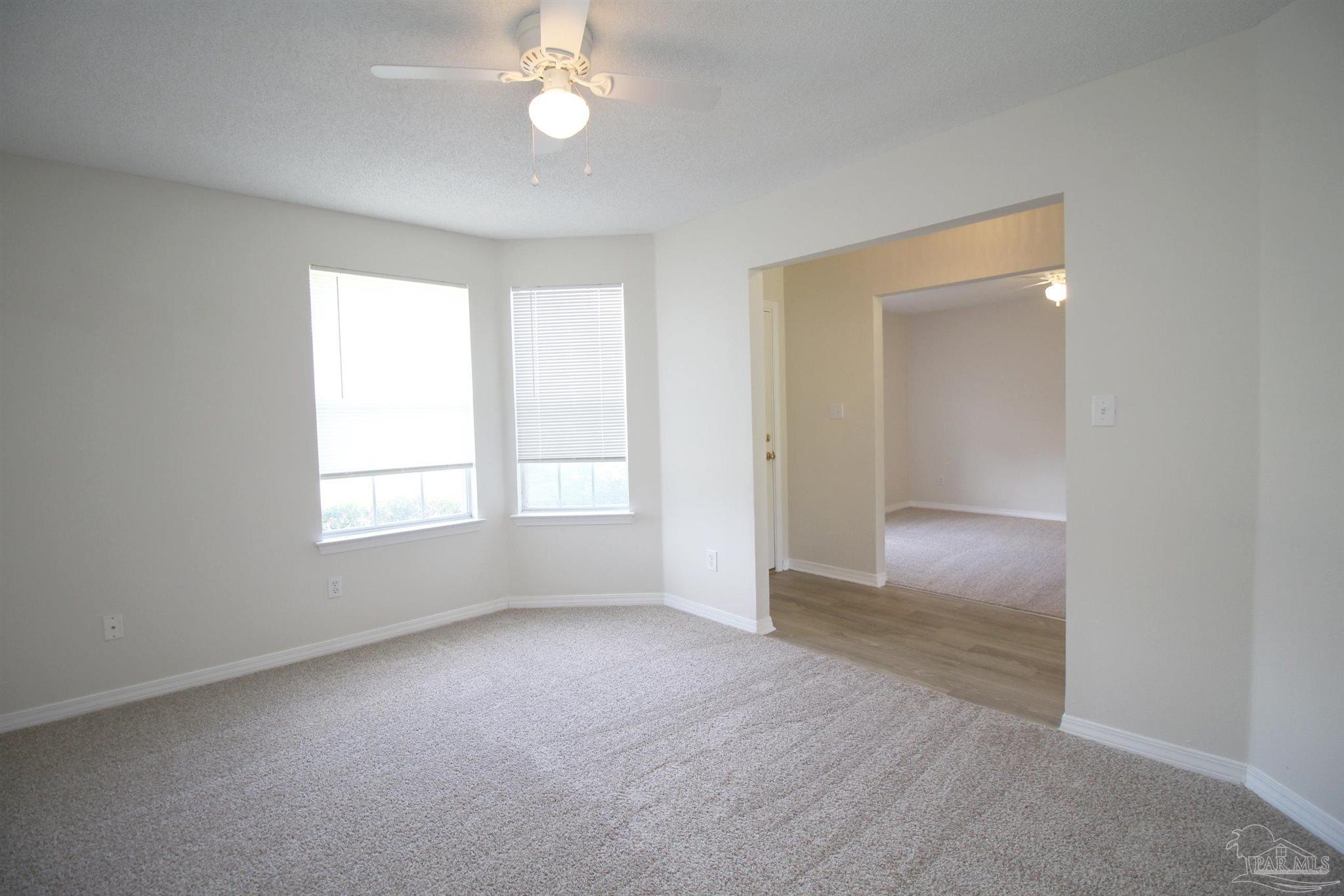 Spacious 3 bedroom 2 bathroom brick house located in Coral Creek Community 1900 sq.ft. of living space with a double car garage. Southwest Pensacola off Blue Angel Pkwy. close to NAS, Perdido Key beaches and more! Plenty of living areas with a living room, formal dining room, eat-in kitchen and an office. Island kitchen features all electric appliances and a pantry. Primary bedroom suite has a large private bath with double vanity, walk-in closet, garden tub, and separate shower. Nice sized bedrooms with an additional guest bathroom. Laundry room with updated lvp flooring. Large open backyard with partial fencing.
