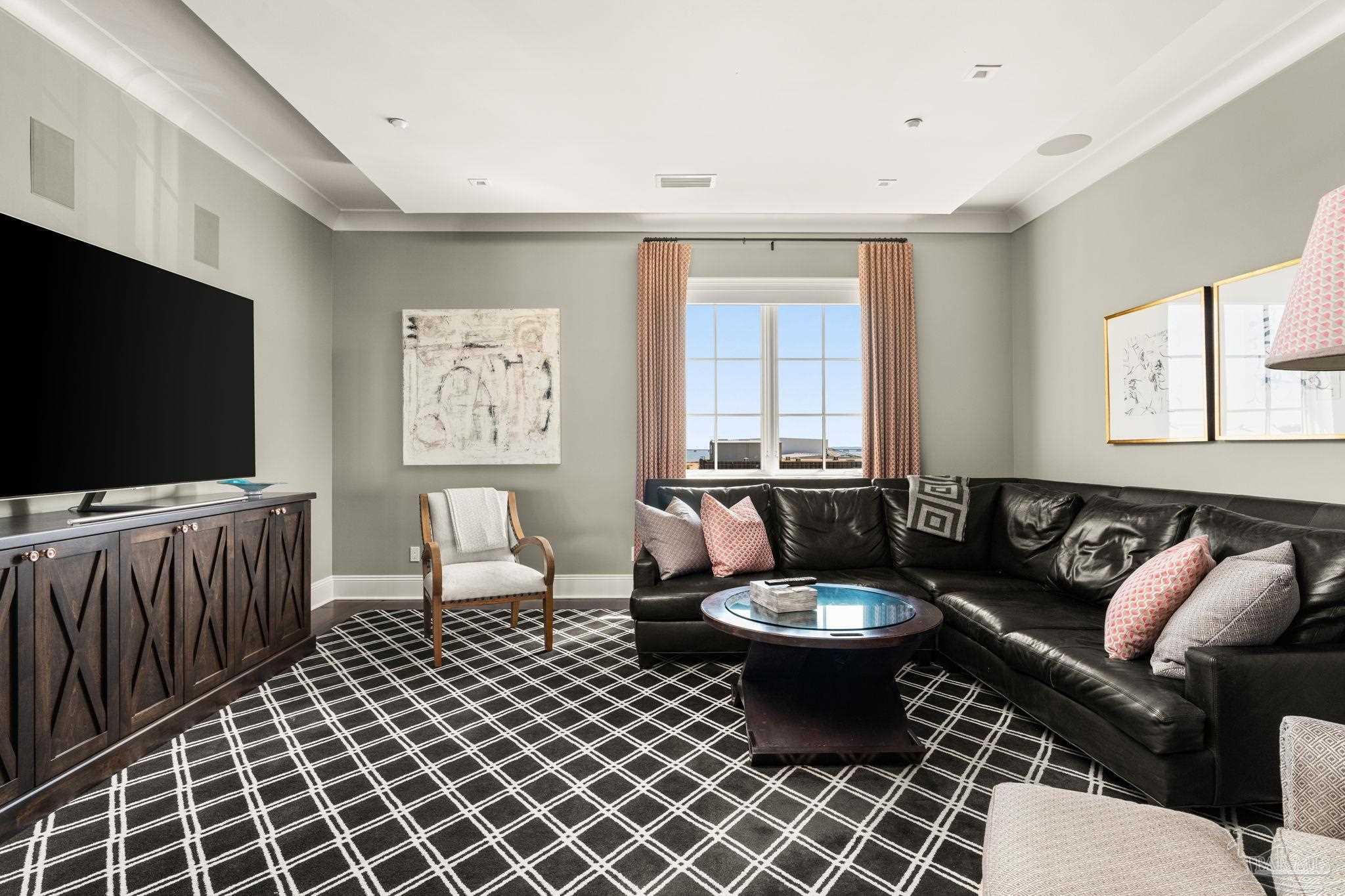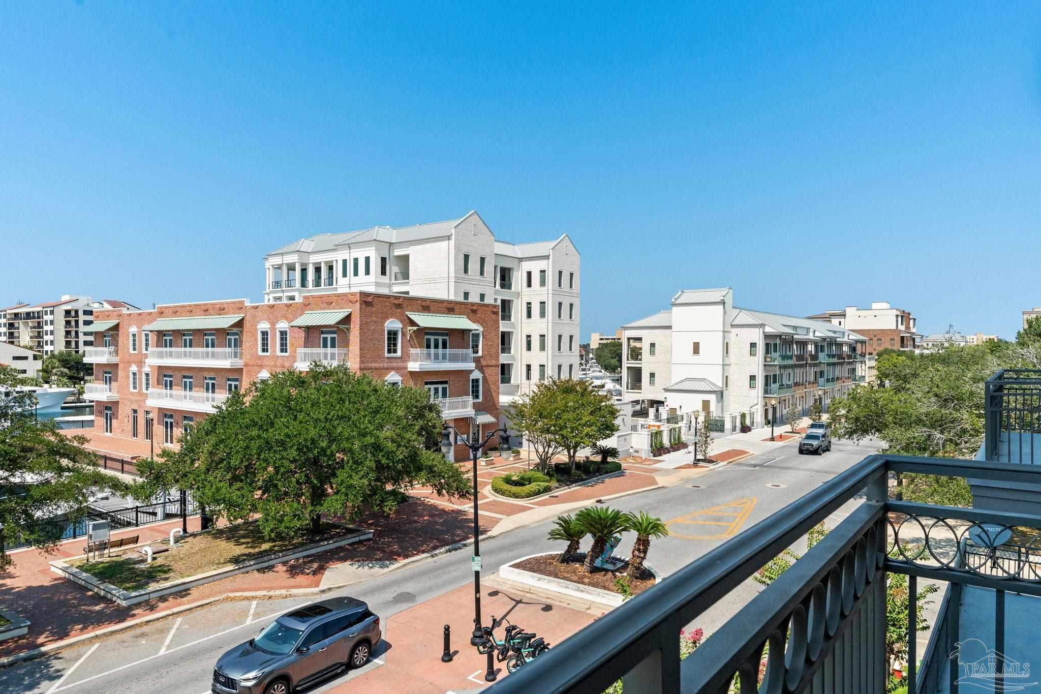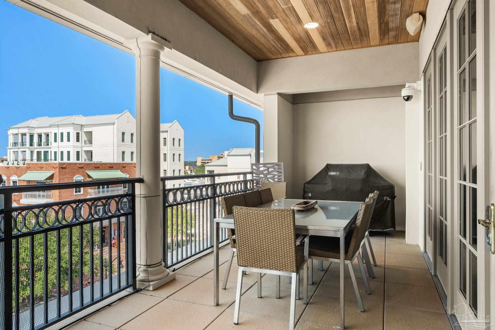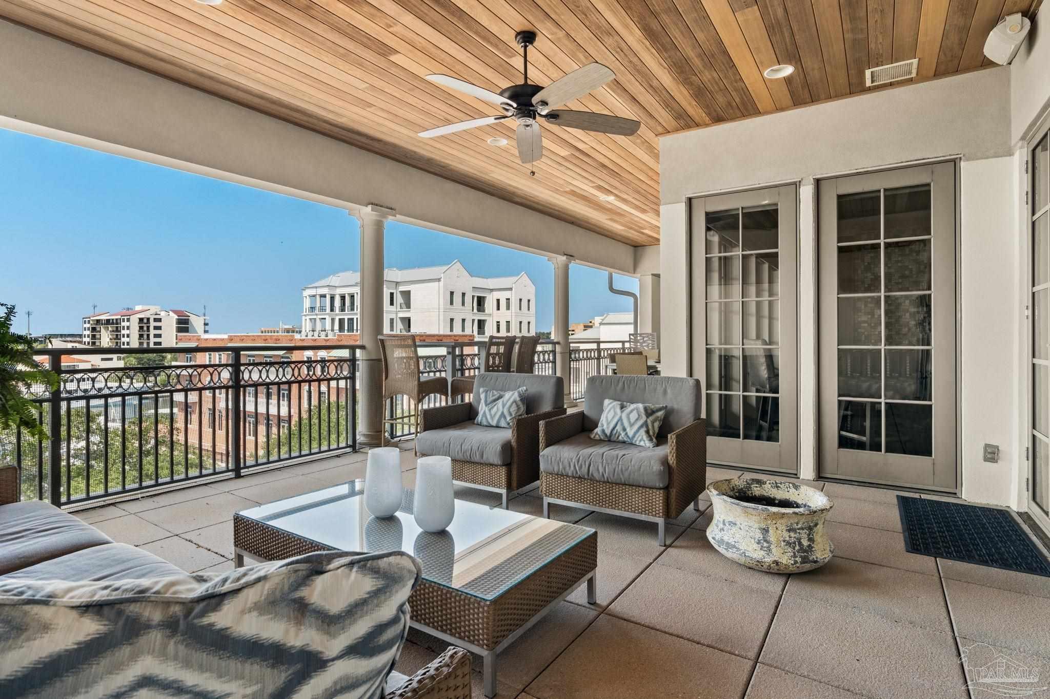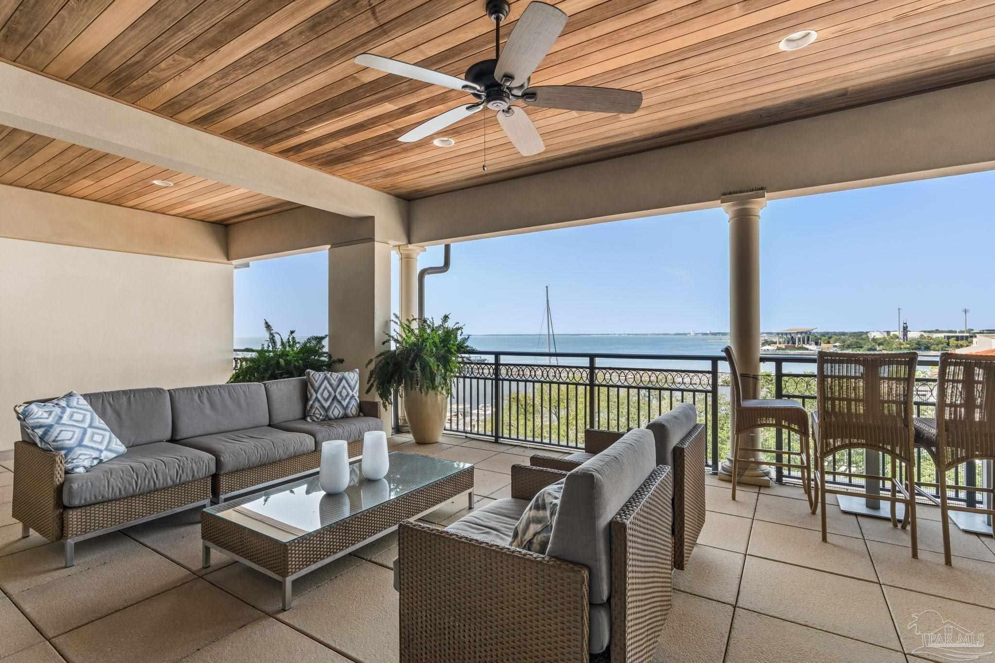 Welcome to 850 S Palafox St, a stunning 3-bedroom, 3.5-bath luxury bayfront condominium in the heart of downtown Pensacola, offering unrivaled panoramic views of Pensacola Bay from both sides. This exquisite residence masterfully blends sophisticated design, cutting-edge technology, and prime convenience for an unparalleled coastal lifestyle. Located just south of Main Street, it provides serene privacy while being steps from vibrant dining, boutique shopping, and Wahoos stadium. The main living area captivates with elegant coffered ceilings, expansive windows with Q-Motion motorized blinds, and an accordion door opening to a private balcony, creating seamless indoor-outdoor flow ideal for entertaining. The gourmet kitchen is a chef’s dream, boasting sleek concrete countertops, premium Wolf appliances, a built-in Sub-Zero refrigerator, a microwave with warming drawer, and stylish bar seating. Off the dining room, a bar room/butler’s pantry with custom cabinetry ensures effortless hosting. The primary suite is a private retreat, featuring its own balcony, dual custom walk-in closets, and luxurious his-and-hers bathrooms with granite finishes. Two additional en suite bedrooms, a dedicated office, and custom storage solutions provide versatility and comfort. Equipped with a state-of-the-art Control4 smart home system, this residence offers seamless control of lighting, audio/video, climate, security, window treatments, and entertainment. Perfectly balancing tranquility and urban energy, 850 S Palafox redefines coastal luxury in downtown Pensacola.