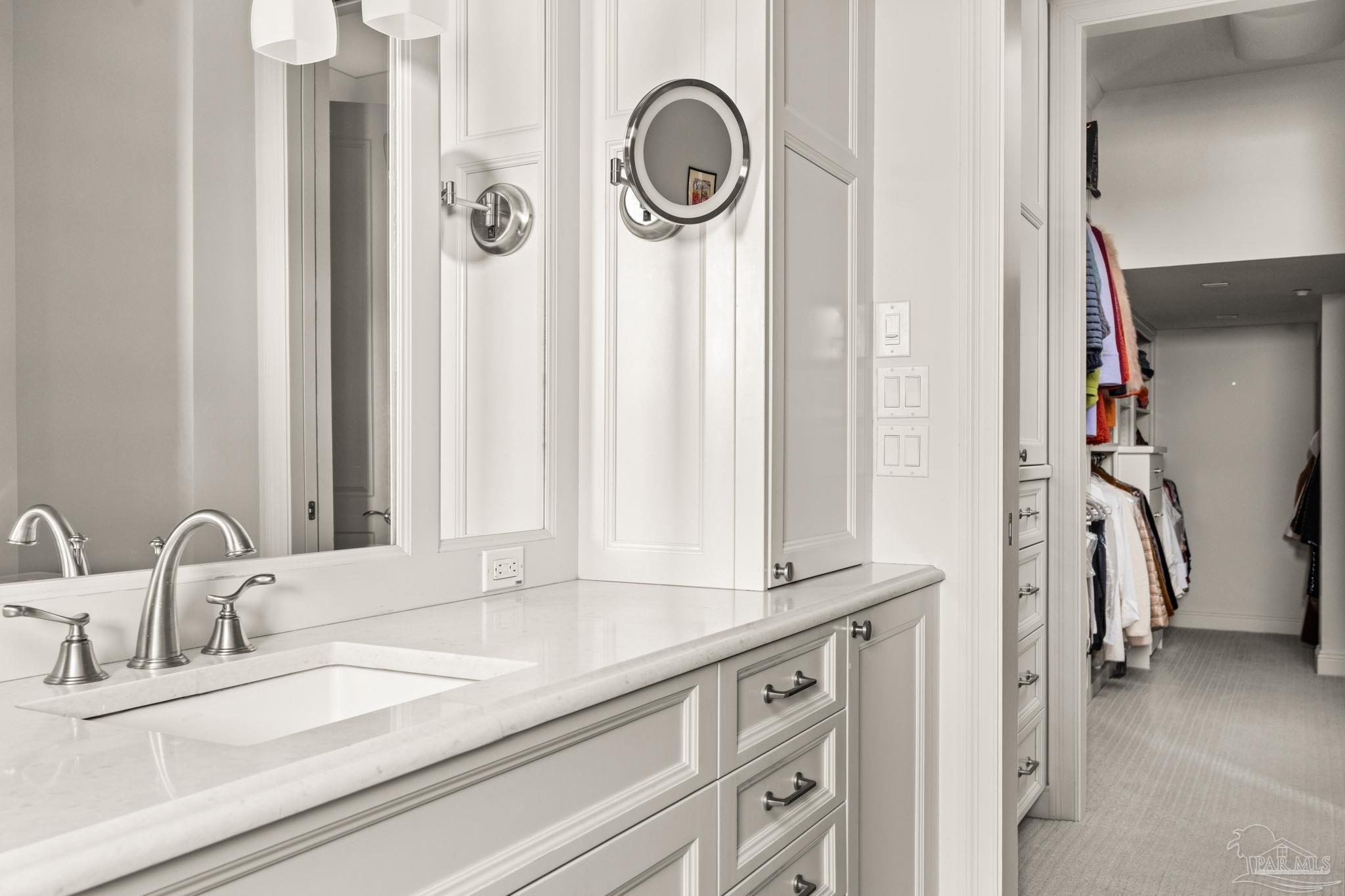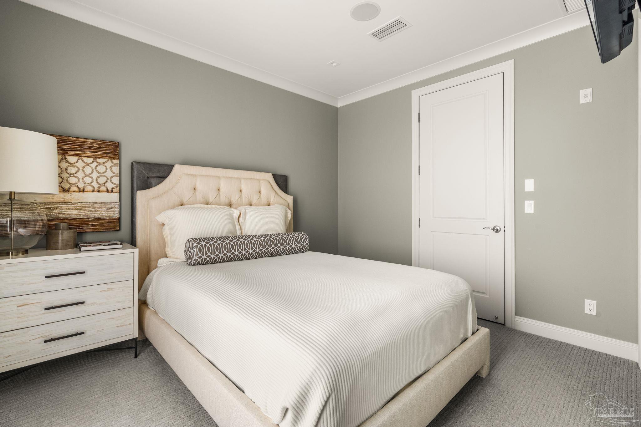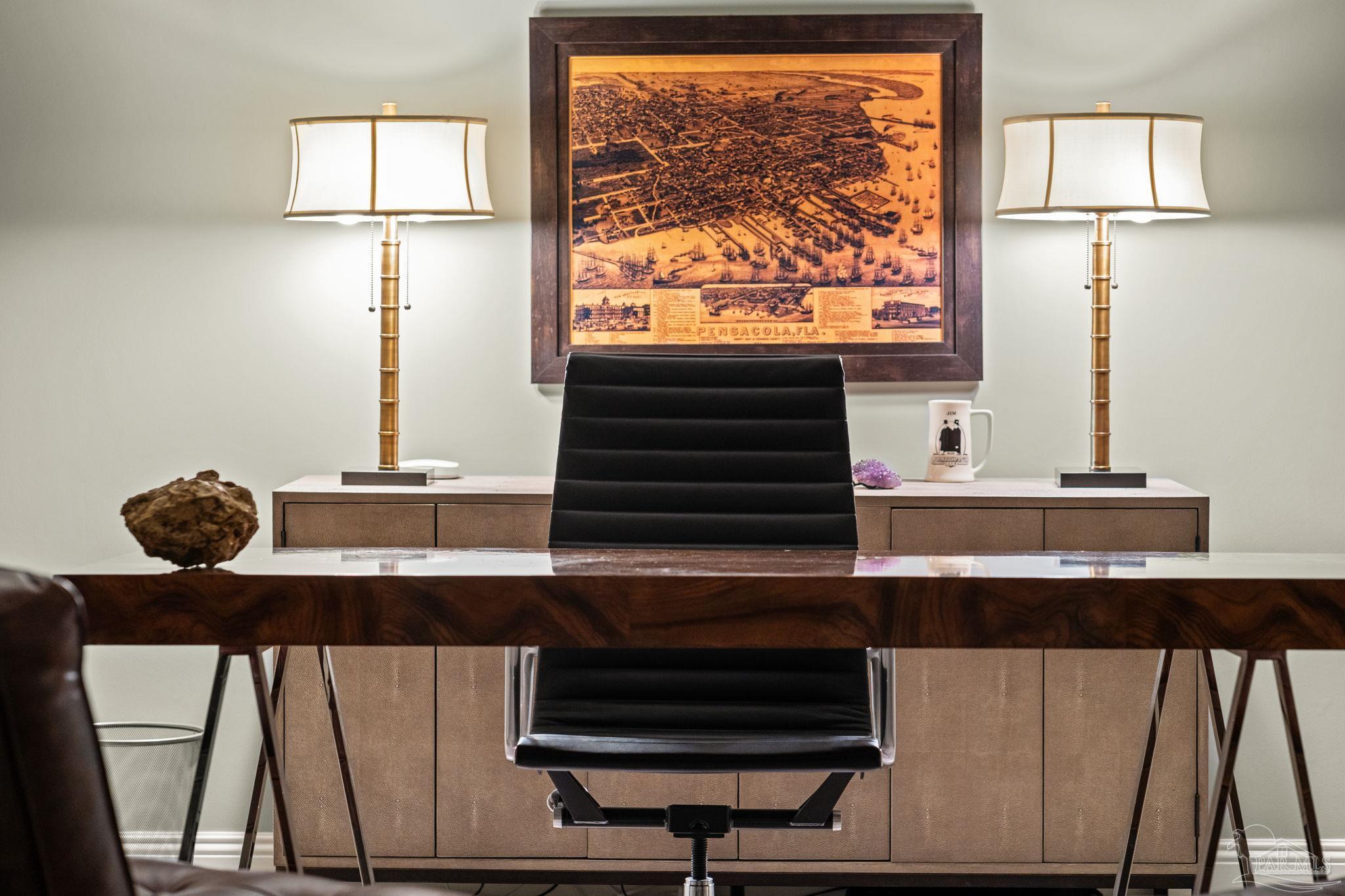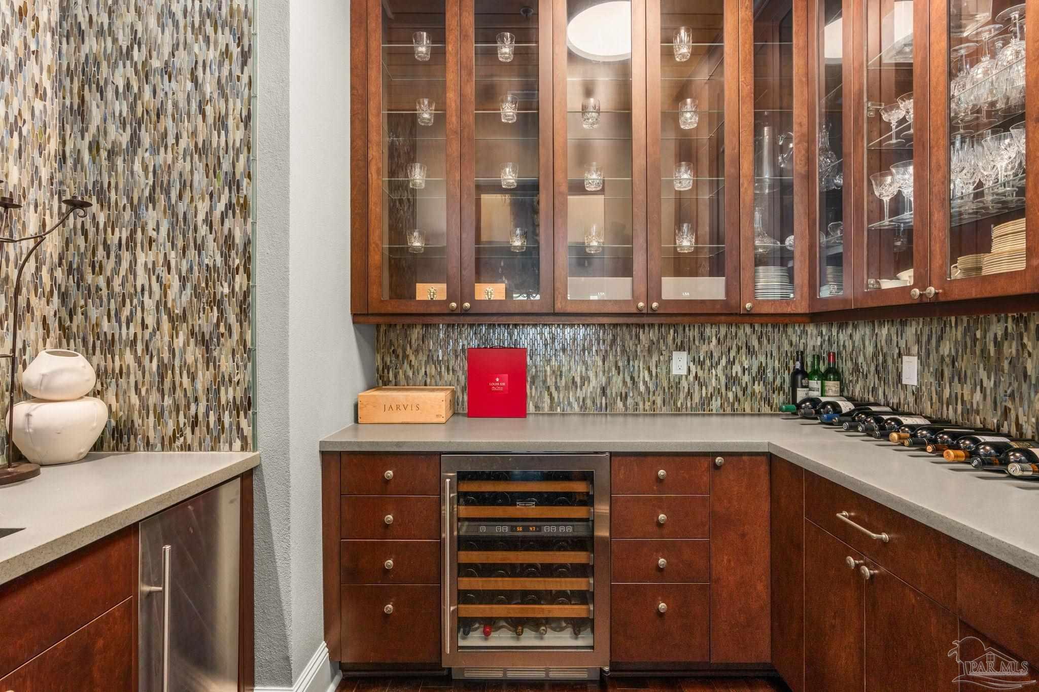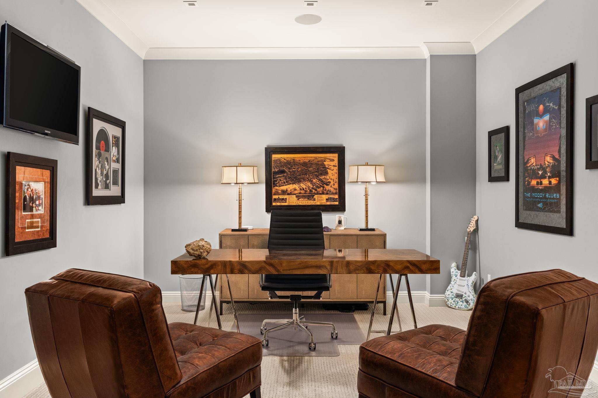 Welcome to 850 S Palafox St, a stunning 3-bedroom, 3.5-bath luxury bayfront condominium in the heart of downtown Pensacola, offering unrivaled panoramic views of Pensacola Bay from both sides. This exquisite residence masterfully blends sophisticated design, cutting-edge technology, and prime convenience for an unparalleled coastal lifestyle. Located just south of Main Street, it provides serene privacy while being steps from vibrant dining, boutique shopping, and Wahoos stadium. The main living area captivates with elegant coffered ceilings, expansive windows with Q-Motion motorized blinds, and an accordion door opening to a private balcony, creating seamless indoor-outdoor flow ideal for entertaining. The gourmet kitchen is a chef’s dream, boasting sleek concrete countertops, premium Wolf appliances, a built-in Sub-Zero refrigerator, a microwave with warming drawer, and stylish bar seating. Off the dining room, a bar room/butler’s pantry with custom cabinetry ensures effortless hosting. The primary suite is a private retreat, featuring its own balcony, dual custom walk-in closets, and luxurious his-and-hers bathrooms with granite finishes. Two additional en suite bedrooms, a dedicated office, and custom storage solutions provide versatility and comfort. Equipped with a state-of-the-art Control4 smart home system, this residence offers seamless control of lighting, audio/video, climate, security, window treatments, and entertainment. Perfectly balancing tranquility and urban energy, 850 S Palafox redefines coastal luxury in downtown Pensacola.