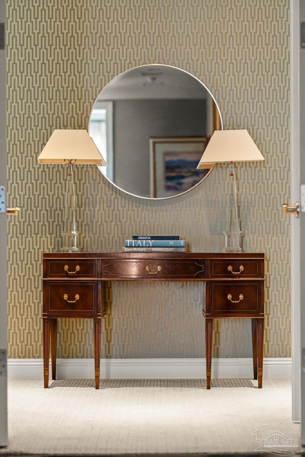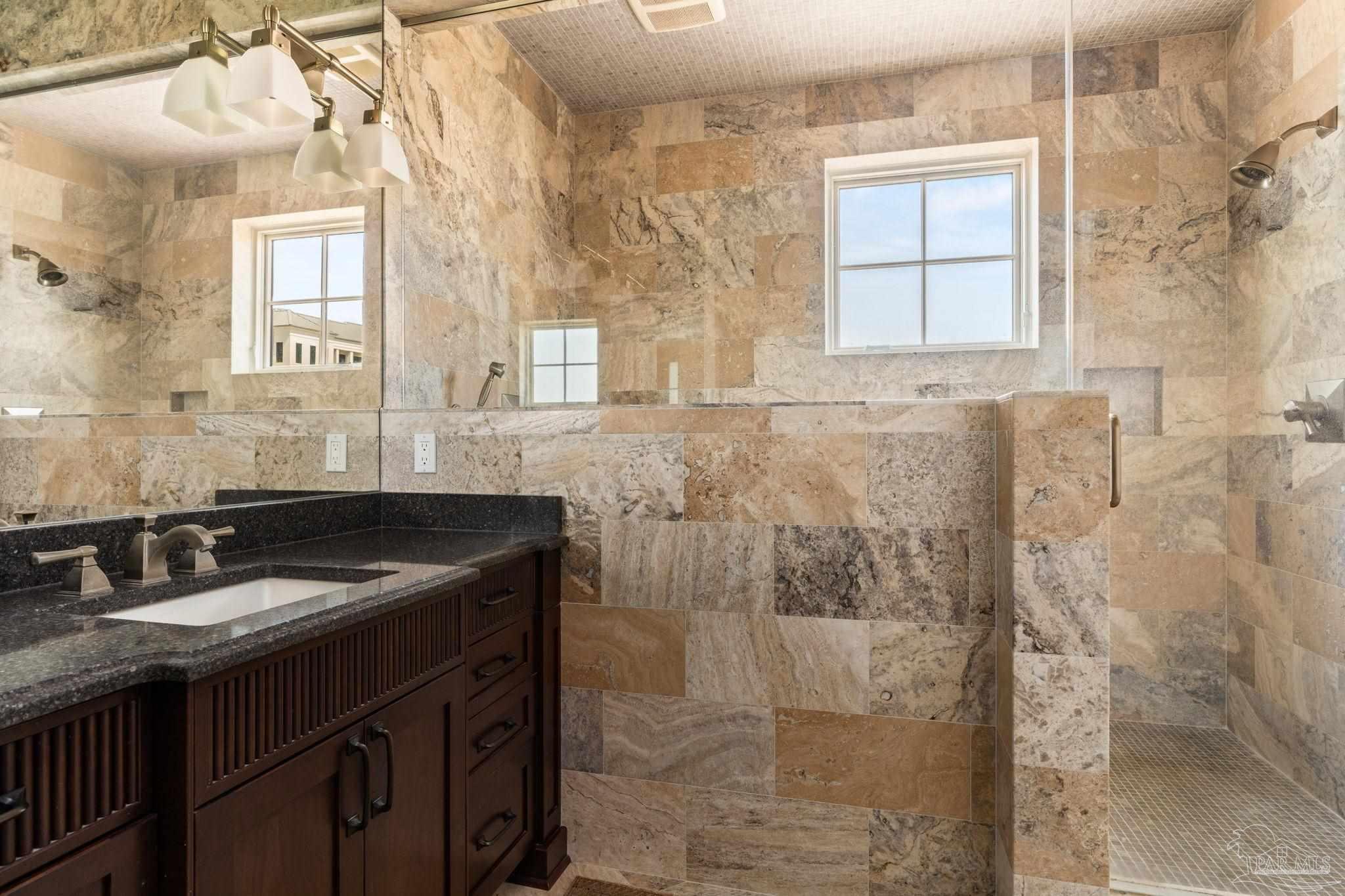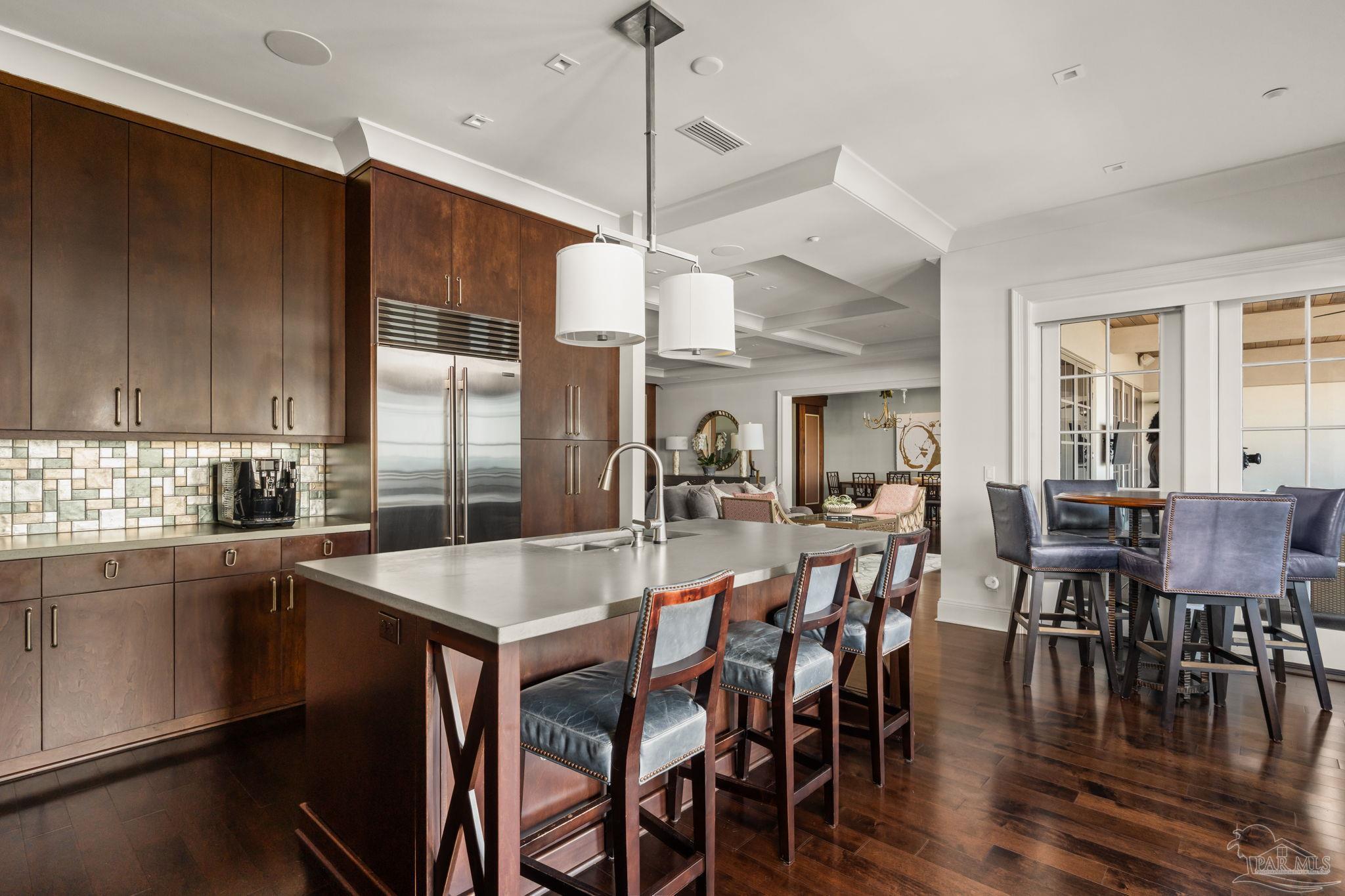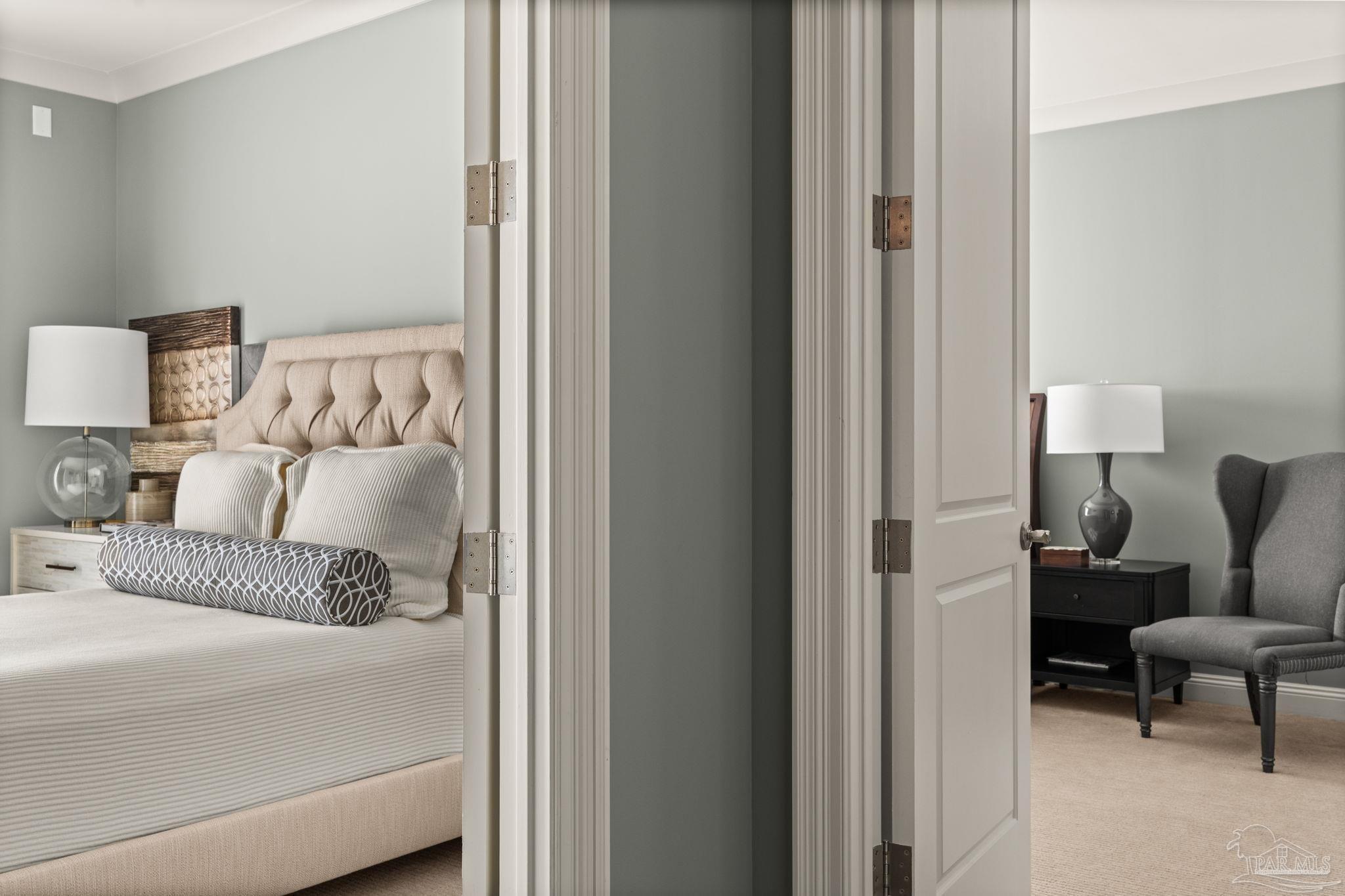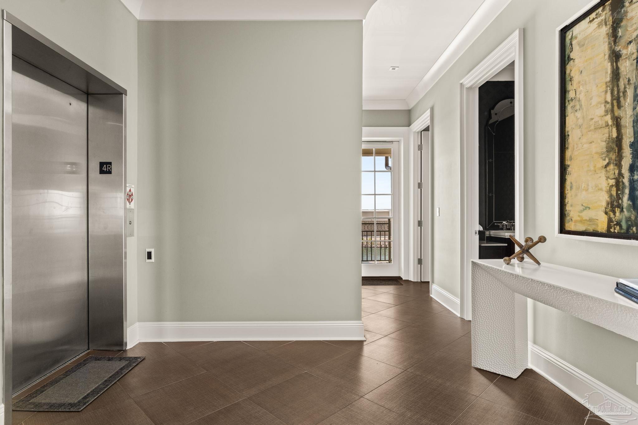 Welcome to 850 S Palafox St, a stunning 3-bedroom, 3.5-bath luxury bayfront condominium in the heart of downtown Pensacola, offering unrivaled panoramic views of Pensacola Bay from both sides. This exquisite residence masterfully blends sophisticated design, cutting-edge technology, and prime convenience for an unparalleled coastal lifestyle. Located just south of Main Street, it provides serene privacy while being steps from vibrant dining, boutique shopping, and Wahoos stadium. The main living area captivates with elegant coffered ceilings, expansive windows with Q-Motion motorized blinds, and an accordion door opening to a private balcony, creating seamless indoor-outdoor flow ideal for entertaining. The gourmet kitchen is a chef’s dream, boasting sleek concrete countertops, premium Wolf appliances, a built-in Sub-Zero refrigerator, a microwave with warming drawer, and stylish bar seating. Off the dining room, a bar room/butler’s pantry with custom cabinetry ensures effortless hosting. The primary suite is a private retreat, featuring its own balcony, dual custom walk-in closets, and luxurious his-and-hers bathrooms with granite finishes. Two additional en suite bedrooms, a dedicated office, and custom storage solutions provide versatility and comfort. Equipped with a state-of-the-art Control4 smart home system, this residence offers seamless control of lighting, audio/video, climate, security, window treatments, and entertainment. Perfectly balancing tranquility and urban energy, 850 S Palafox redefines coastal luxury in downtown Pensacola.