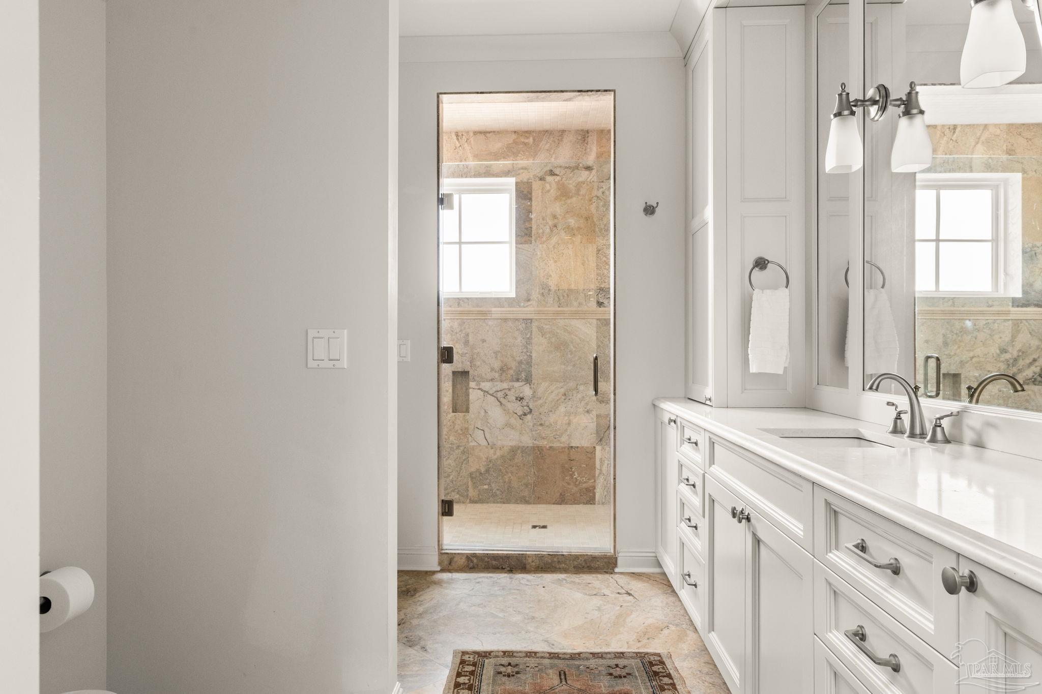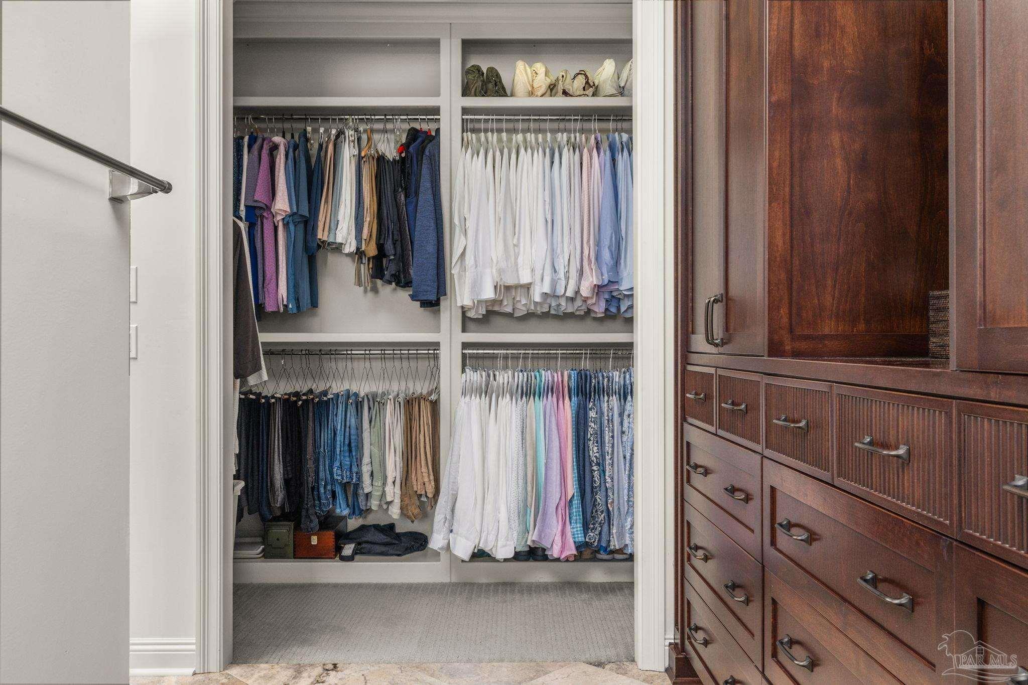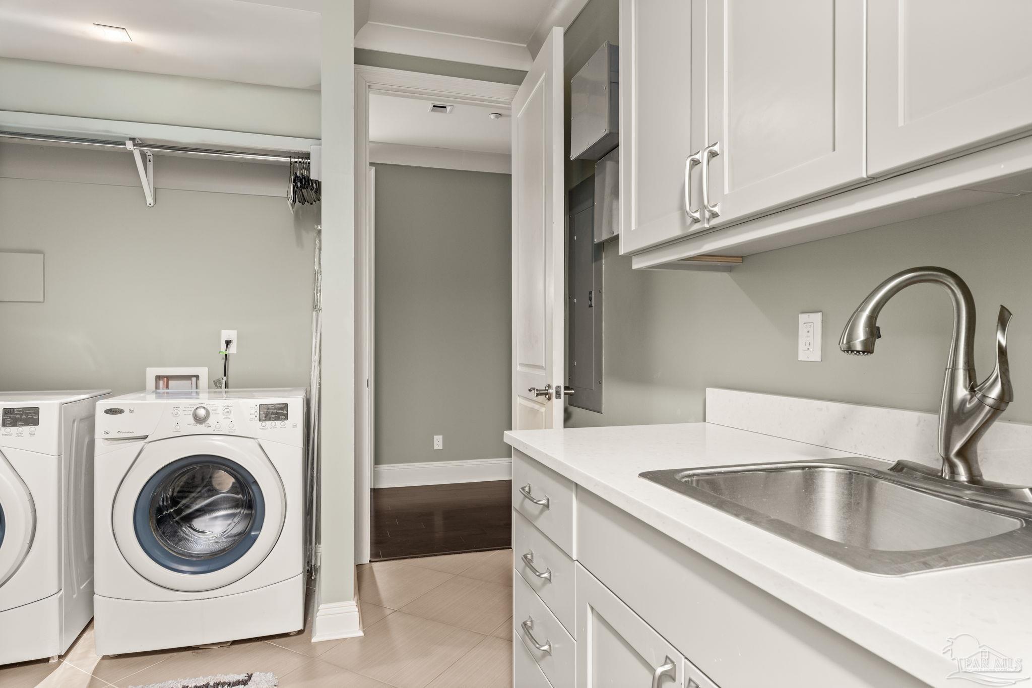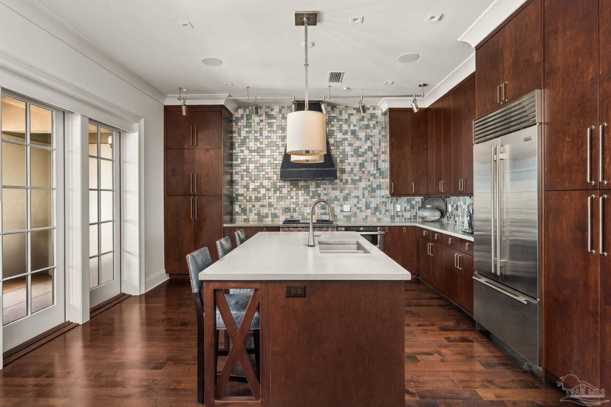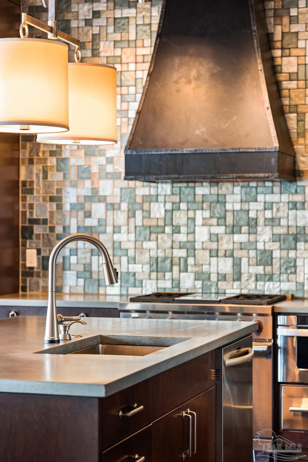 Welcome to 850 S Palafox St, a stunning 3-bedroom, 3.5-bath luxury bayfront condominium in the heart of downtown Pensacola, offering unrivaled panoramic views of Pensacola Bay from both sides. This exquisite residence masterfully blends sophisticated design, cutting-edge technology, and prime convenience for an unparalleled coastal lifestyle. Located just south of Main Street, it provides serene privacy while being steps from vibrant dining, boutique shopping, and Wahoos stadium. The main living area captivates with elegant coffered ceilings, expansive windows with Q-Motion motorized blinds, and an accordion door opening to a private balcony, creating seamless indoor-outdoor flow ideal for entertaining. The gourmet kitchen is a chef’s dream, boasting sleek concrete countertops, premium Wolf appliances, a built-in Sub-Zero refrigerator, a microwave with warming drawer, and stylish bar seating. Off the dining room, a bar room/butler’s pantry with custom cabinetry ensures effortless hosting. The primary suite is a private retreat, featuring its own balcony, dual custom walk-in closets, and luxurious his-and-hers bathrooms with granite finishes. Two additional en suite bedrooms, a dedicated office, and custom storage solutions provide versatility and comfort. Equipped with a state-of-the-art Control4 smart home system, this residence offers seamless control of lighting, audio/video, climate, security, window treatments, and entertainment. Perfectly balancing tranquility and urban energy, 850 S Palafox redefines coastal luxury in downtown Pensacola.
