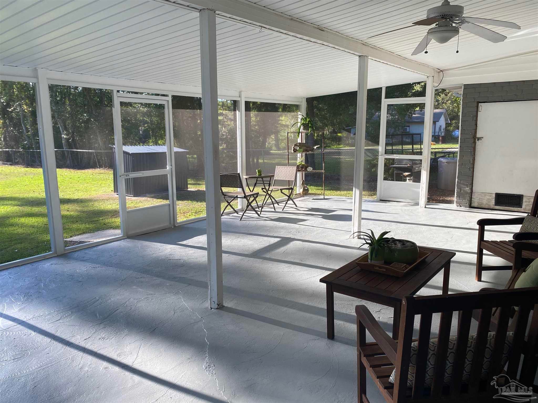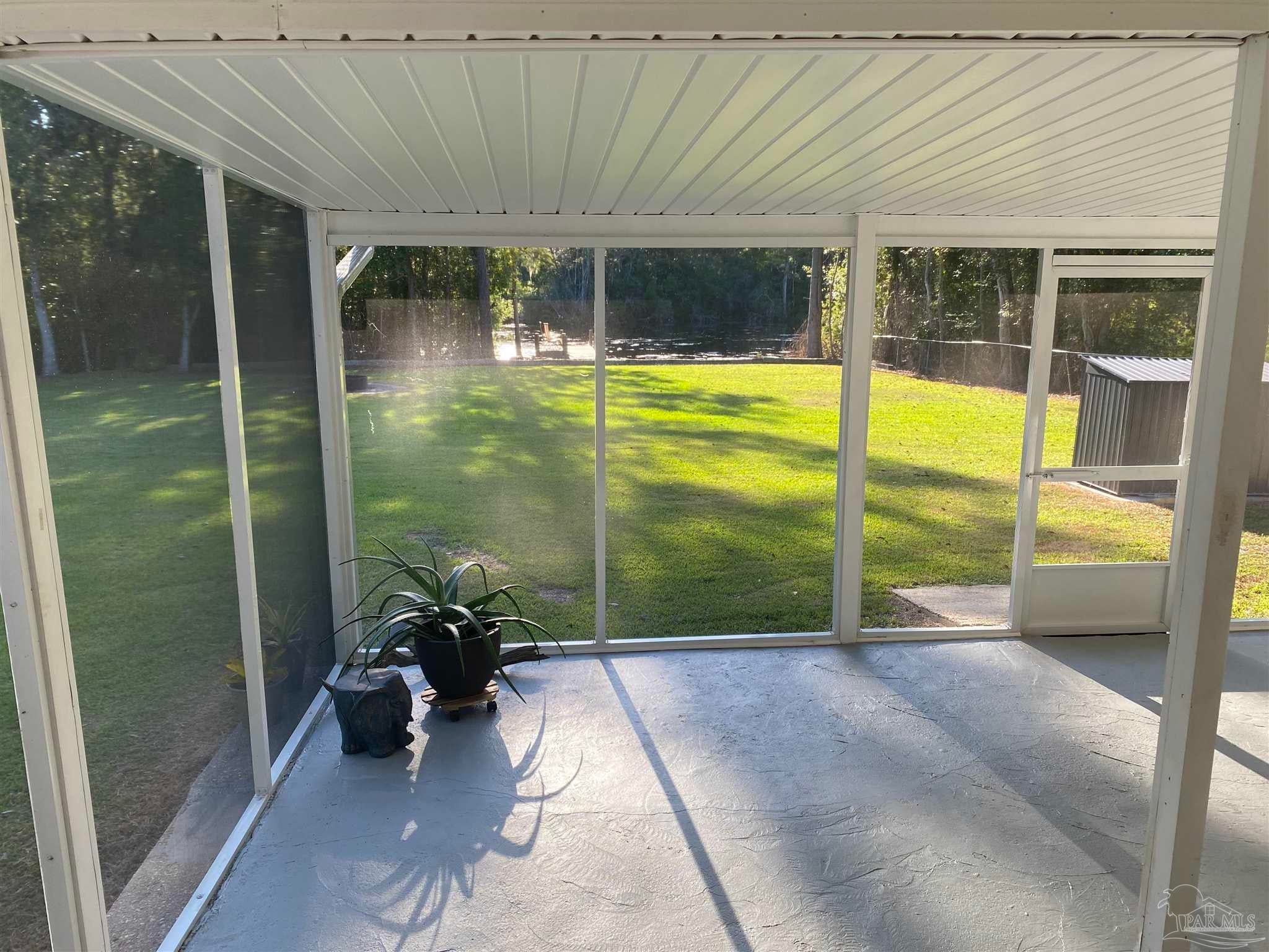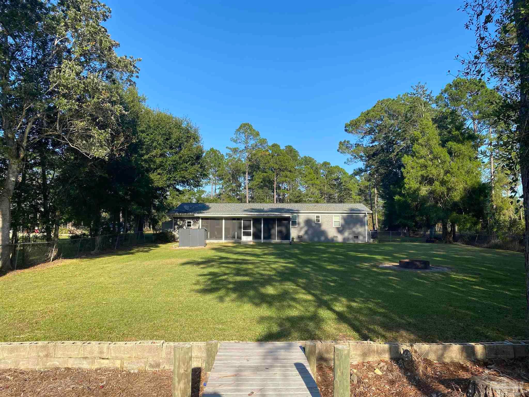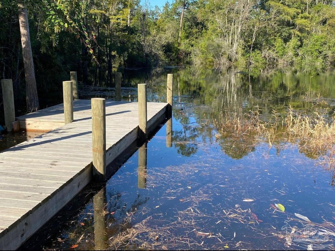 This 3 bedroom 2 bath brick home is situated on .63 acres with 99 feet of water frontage on a small bayou leading to Blackwater River. A paradise for any kayaker or fisherman with a mid size boat ready to get out to the open water. The dock was installed in 2023 and offers a seating area. Enjoy outdoor entertaining with over 500 sq ft of screened in covered patio that affords sunset views over the water. 2021 updates/upgrades include: new roof, kitchen cabinets, hard surface countertops and stainless steel appliances, bathroom vanities, mirrors, windows, hard surface flooring, lighting fixtures, and entry doors. In 2022 the crawl space was completely encapsulated for humidity and climate control and quiet close hurricane rated garage doors were added. 2025 updates include HVAC with Air Scrubber brand air purifiing system, well pump and pump house. This unique waterfront home has all the privacy you want, with all the amenities of being in town you need: with easy access to I10 and near downtown Milton, Walmart, Publix, Aldi, and restaurants, etc. Workshop and storage area are under the same roof as the large 2 car garage with automatic quiet close garage doors. Another amazing feature on site is a natural, ever-flowing Artisian well providing fresh, reliable, great tasting water. There are also RV hook ups on the right side of the house with a second driveway for easy access. Hurricane shutters are also transferable with the sale. A true waterfront paradise!