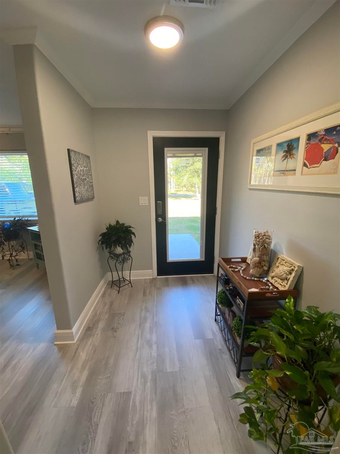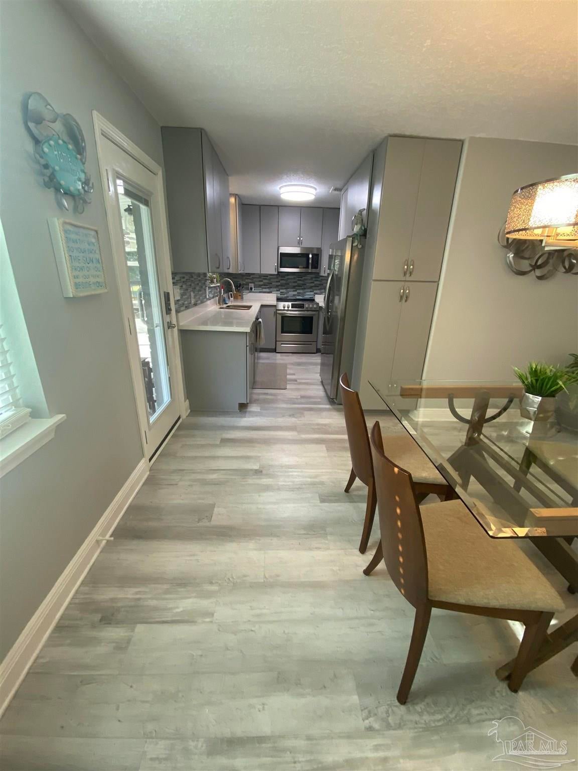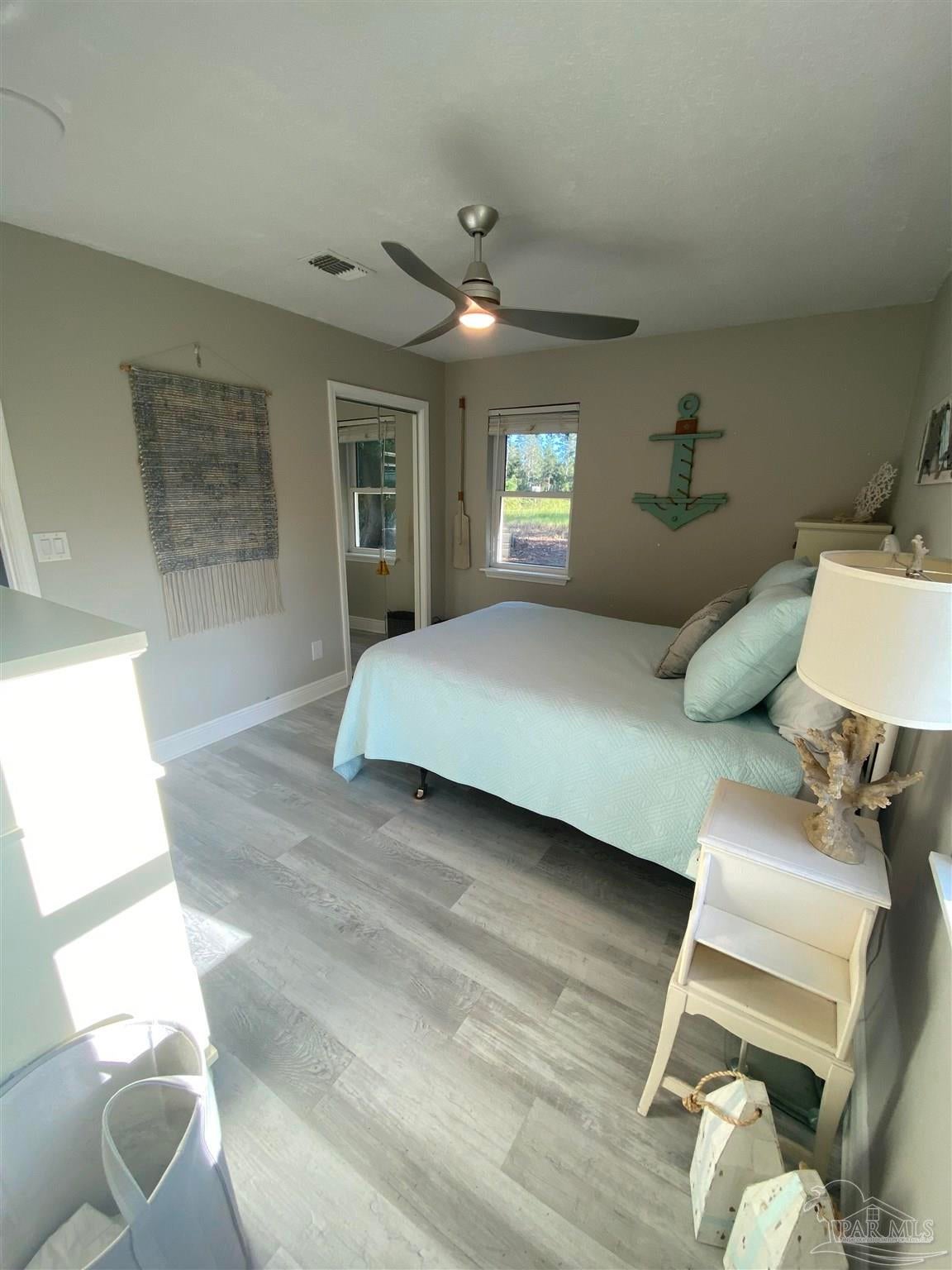 This 3 bedroom 2 bath brick home is situated on .63 acres with 99 feet of water frontage on a small bayou leading to Blackwater River. A paradise for any kayaker or fisherman with a mid size boat ready to get out to the open water. The dock was installed in 2023 and offers a seating area. Enjoy outdoor entertaining with over 500 sq ft of screened in covered patio that affords sunset views over the water. 2021 updates/upgrades include: new roof, kitchen cabinets, hard surface countertops and stainless steel appliances, bathroom vanities, mirrors, windows, hard surface flooring, lighting fixtures, and entry doors. In 2022 the crawl space was completely encapsulated for humidity and climate control and quiet close hurricane rated garage doors were added. 2025 updates include HVAC with Air Scrubber brand air purifiing system, well pump and pump house. This unique waterfront home has all the privacy you want, with all the amenities of being in town you need: with easy access to I10 and near downtown Milton, Walmart, Publix, Aldi, and restaurants, etc. Workshop and storage area are under the same roof as the large 2 car garage with automatic quiet close garage doors. Another amazing feature on site is a natural, ever-flowing Artisian well providing fresh, reliable, great tasting water. There are also RV hook ups on the right side of the house with a second driveway for easy access. Hurricane shutters are also transferable with the sale. A true waterfront paradise!