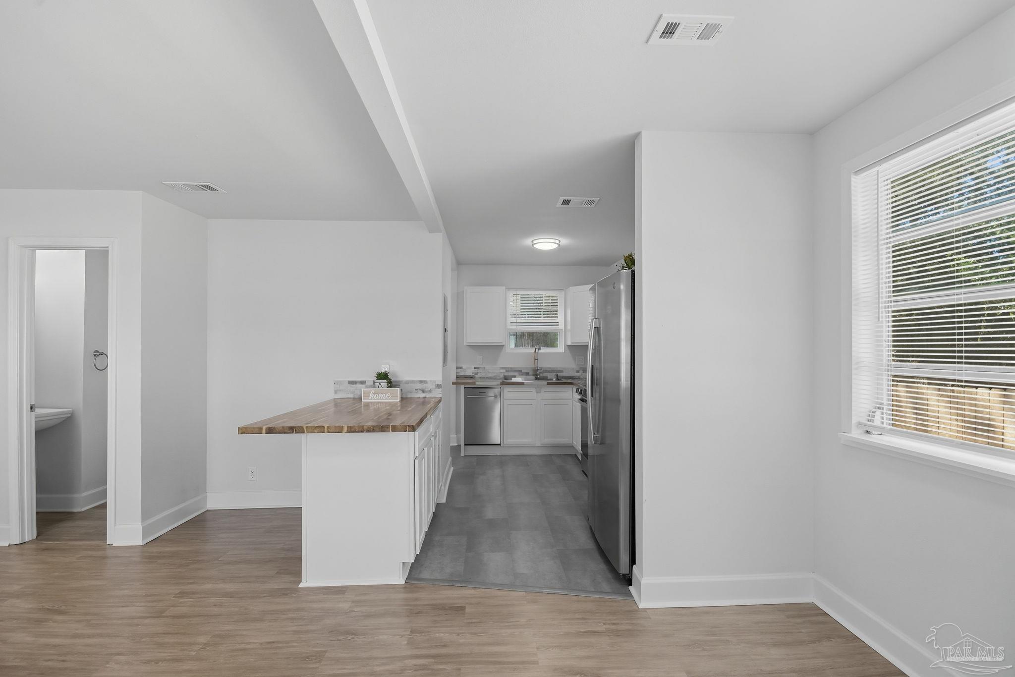 Welcome to this updated 2 bedroom, 1.5 bath home in the desirable Navy Point area of Pensacola. This property has been thoughtfully renovated with major improvements including a brand-new HVAC system, total electrical rewire, new plumbing, and a new hot water heater. The kitchen features new stainless steel appliances, easy-close cabinets, butcher block countertops, and a garbage disposal. Additional highlights include new LVP flooring throughout, a new privacy fence, and attractive curb appeal. With an 8-year-old roof and modern updates inside and out, this move-in ready home offers both comfort and peace of mind, all just minutes from Pensacola’s beaches, military bases, and downtown. If you're looking for a short-term rental to invest in ,this would be it!!