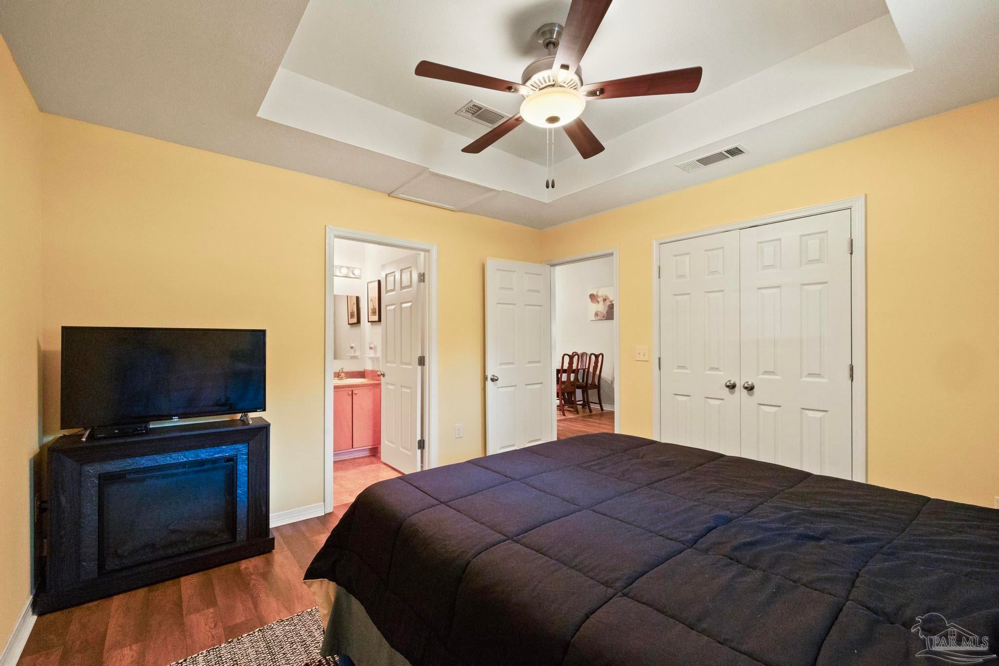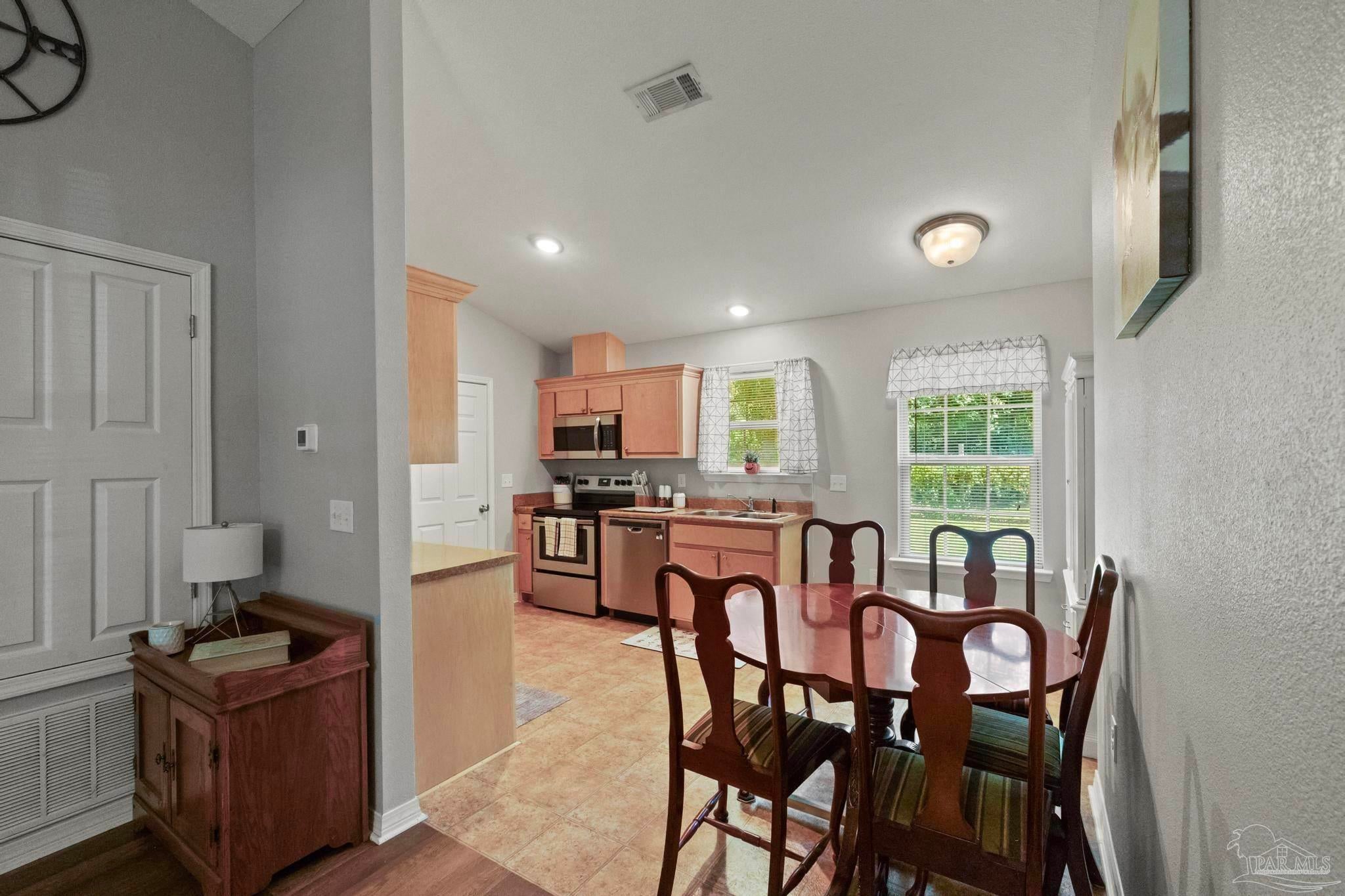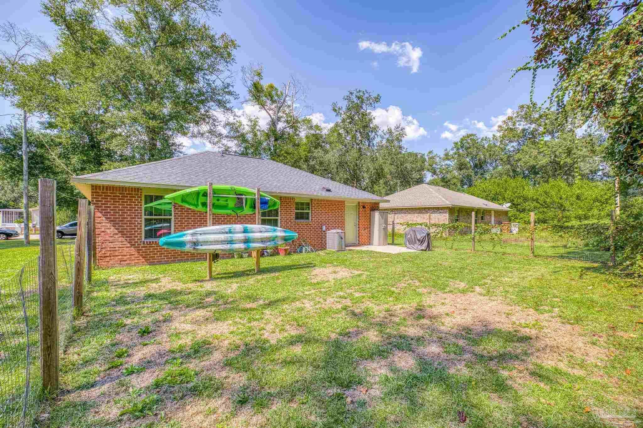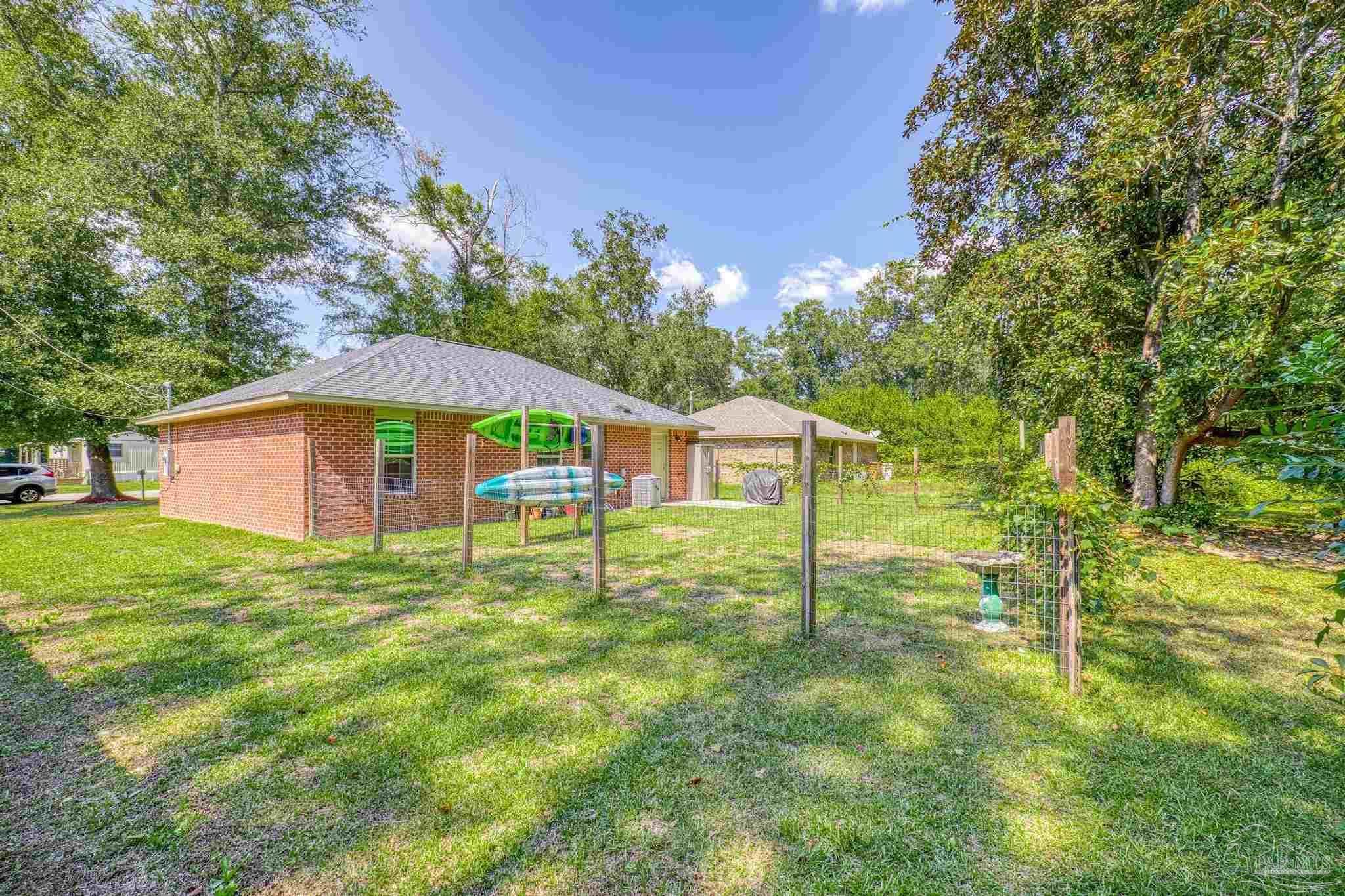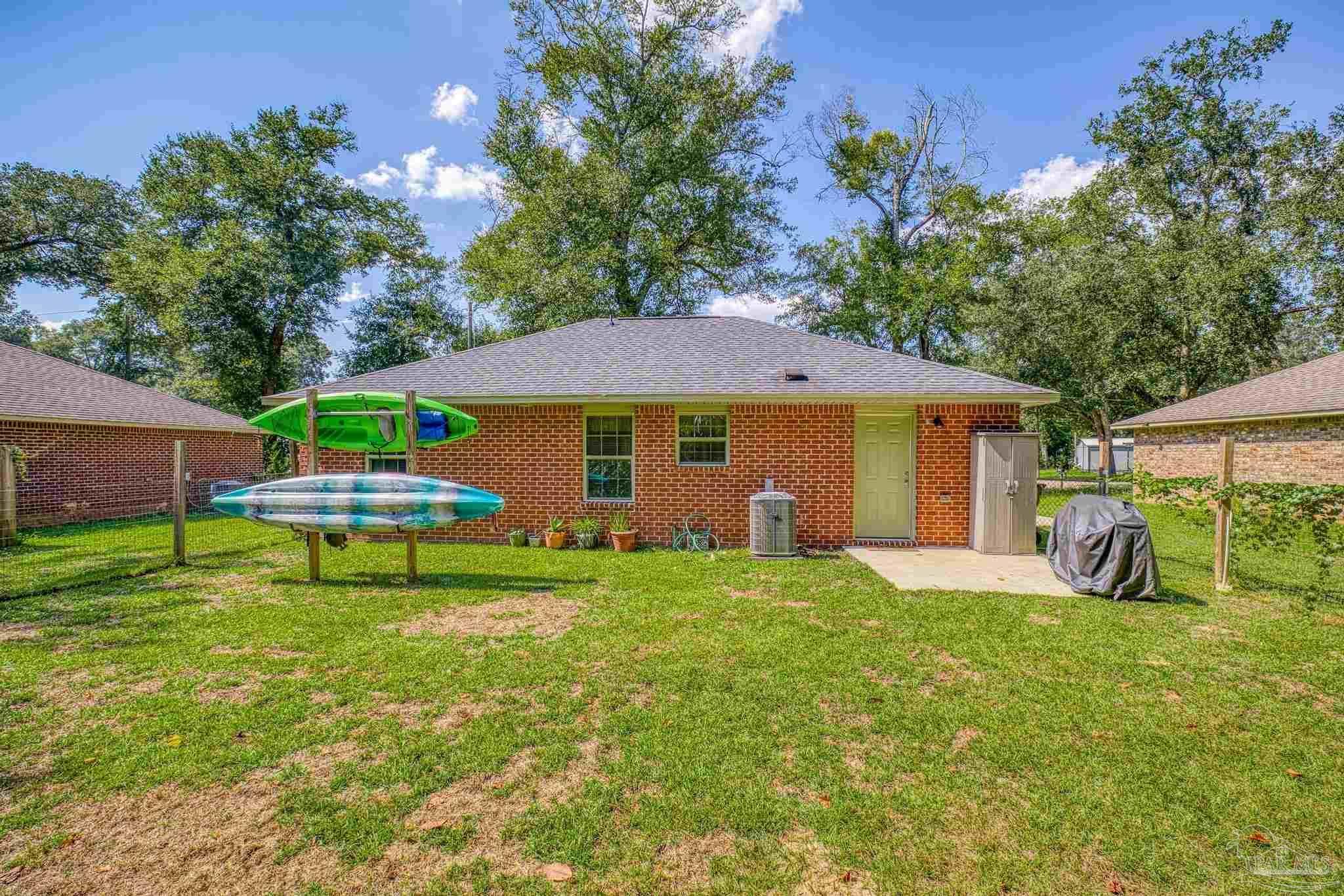 Welcome to this beautifully maintained 3 bedroom, 2 bathroom brick home that blends comfort, style, and privacy. Step inside to an inviting living space filled with natural light and tasteful finishes that create a warm, welcoming atmosphere. The primary suite features its own private ensuite bathroom, providing a peaceful retreat. Two additional bedrooms offer flexibility, ideal for a growing family, guests, or a dedicated home office. The expansive backyard is a standout feature; perfect for kids to play, gardening projects, or simply enjoying your own private oasis. The .34 acre lot extends well beyond the current fence and tree line, offering even more space and potential. With its classic brick exterior, charming front porch, and excellent curb appeal, this home is as attractive outside as it is inside. Conveniently located near schools, parks & shopping...and best of all, no HOA!