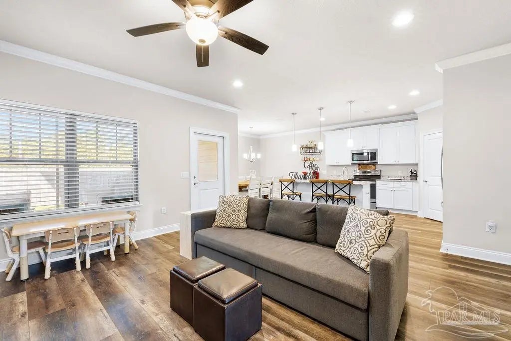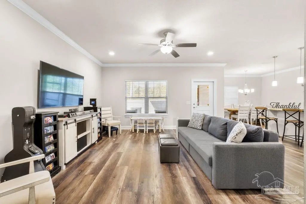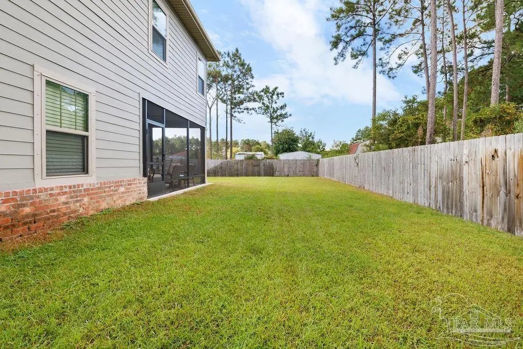 Come see your Dream Home! Tucked away on a peaceful cul-de-sac in beautiful Navarre, this spacious two-story home offers 4 bedrooms, 2.5 bathrooms, and an oversized lot – the perfect blend of comfort, style, and functionality. Step inside to discover a bright, open layout with thoughtful upgrades throughout. The kitchen is a true centerpiece, featuring granite countertops, stainless steel appliances, a breakfast bar, and a custom-shelved pantry to keep everything organized. The main floor also includes a dining room, living room, and a convenient half bath – ideal for entertaining. Upstairs, you’ll find four generously sized bedrooms with plenty of closet space. The primary suite is a private retreat, complete with tray ceilings, a custom walk-in closet, double vanity, tiled shower, and a relaxing garden tub – your very own spa-like escape. Enjoy Florida living at its best on the screened, covered patio overlooking the fully fenced backyard – perfect for playing, gardening, or entertaining guests. Additional features include gutters, a well-fed sprinkler system, grinder pump, Trimlight holiday lights, epoxy-coated garage floors, and overhead garage storage shelves to make organization effortless. Located just minutes from Navarre’s white-sand beaches, top-rated schools, and shopping, this home combines convenience with quiet cul-de-sac living. Don’t miss your chance to make this beautifully maintained, move-in-ready home yours!