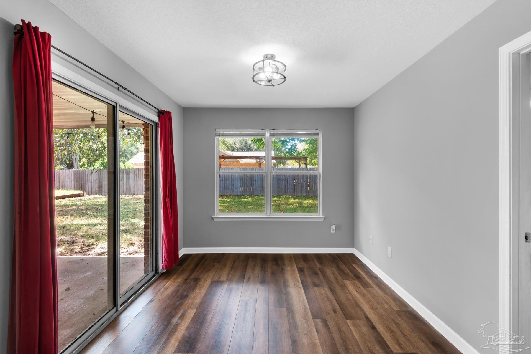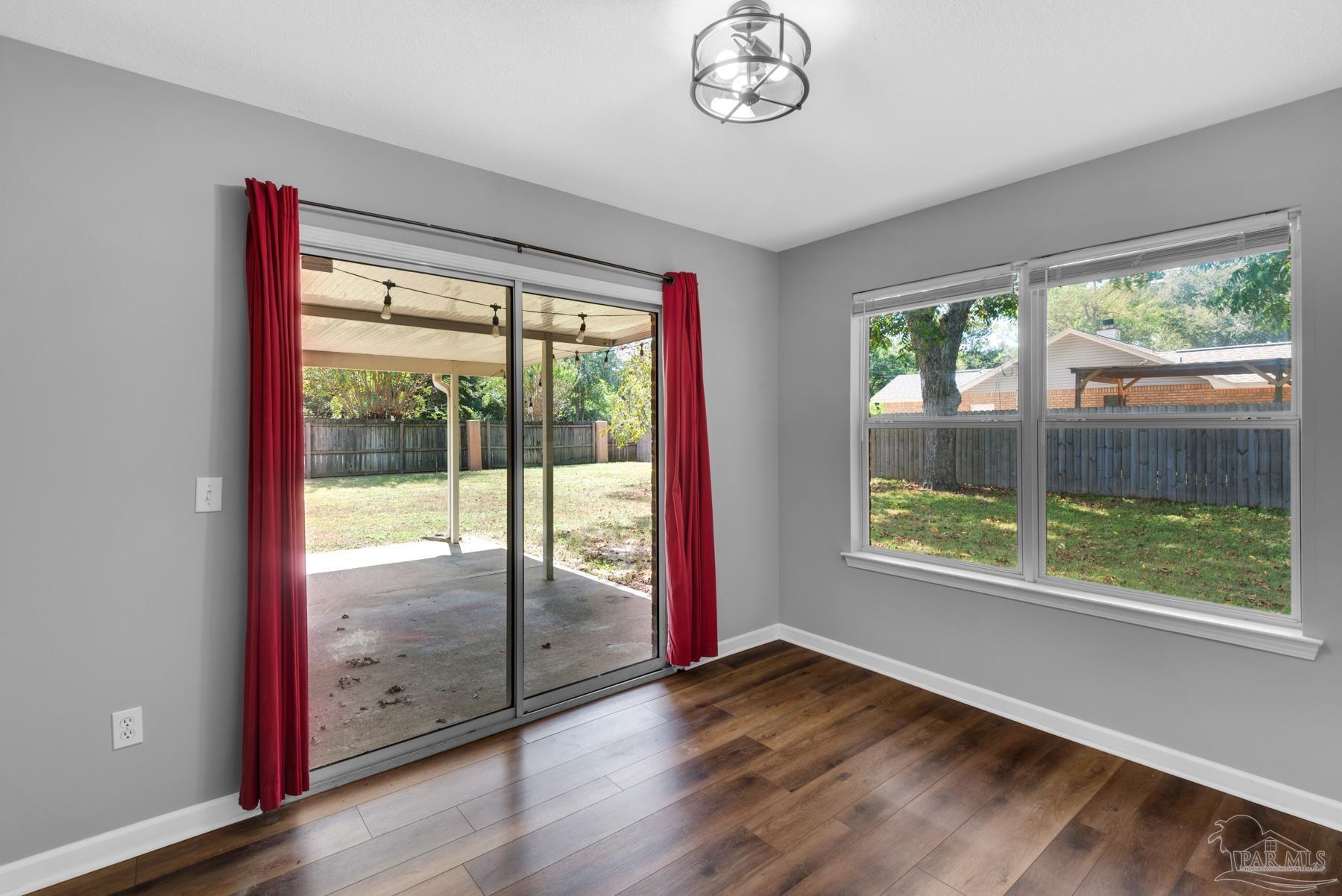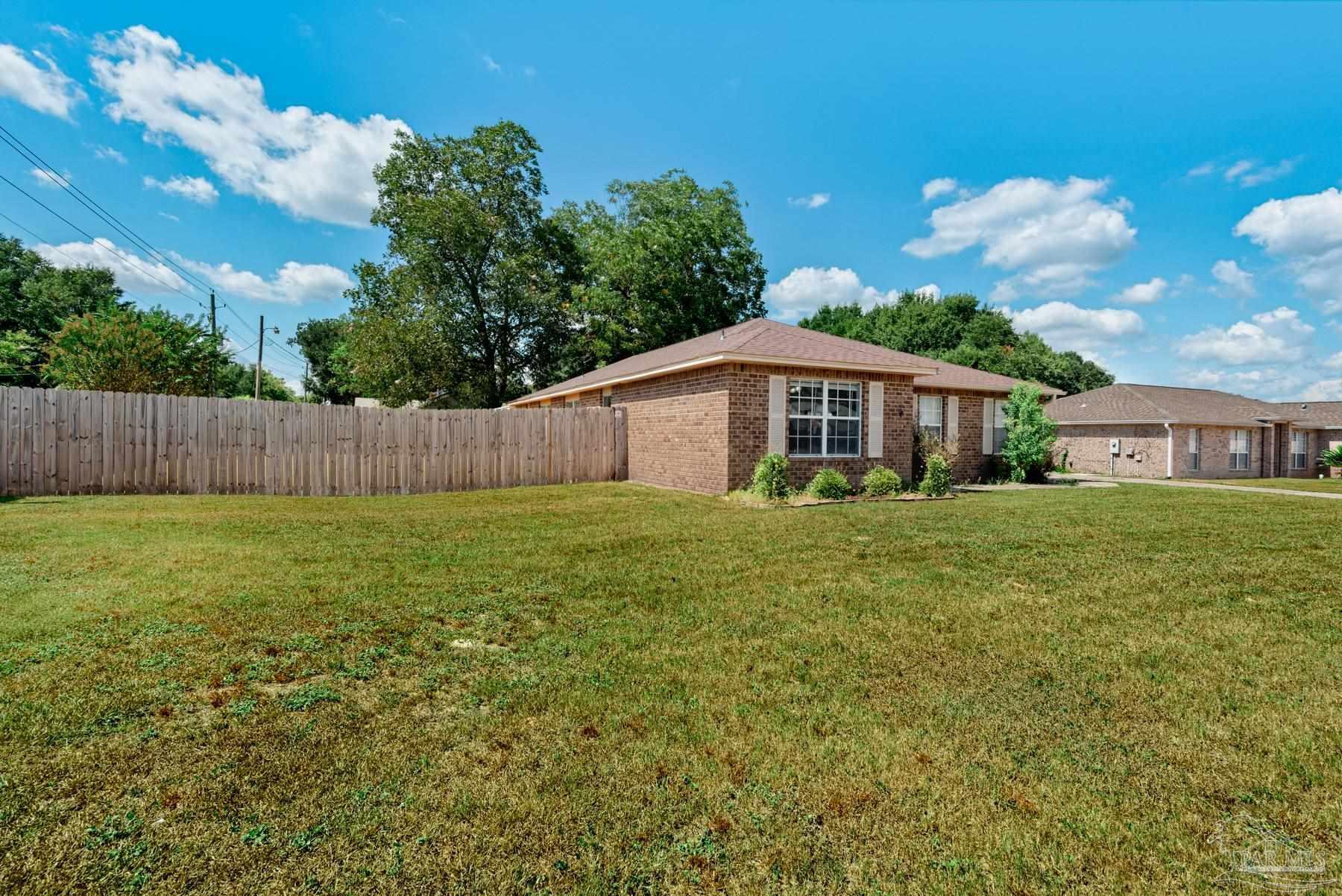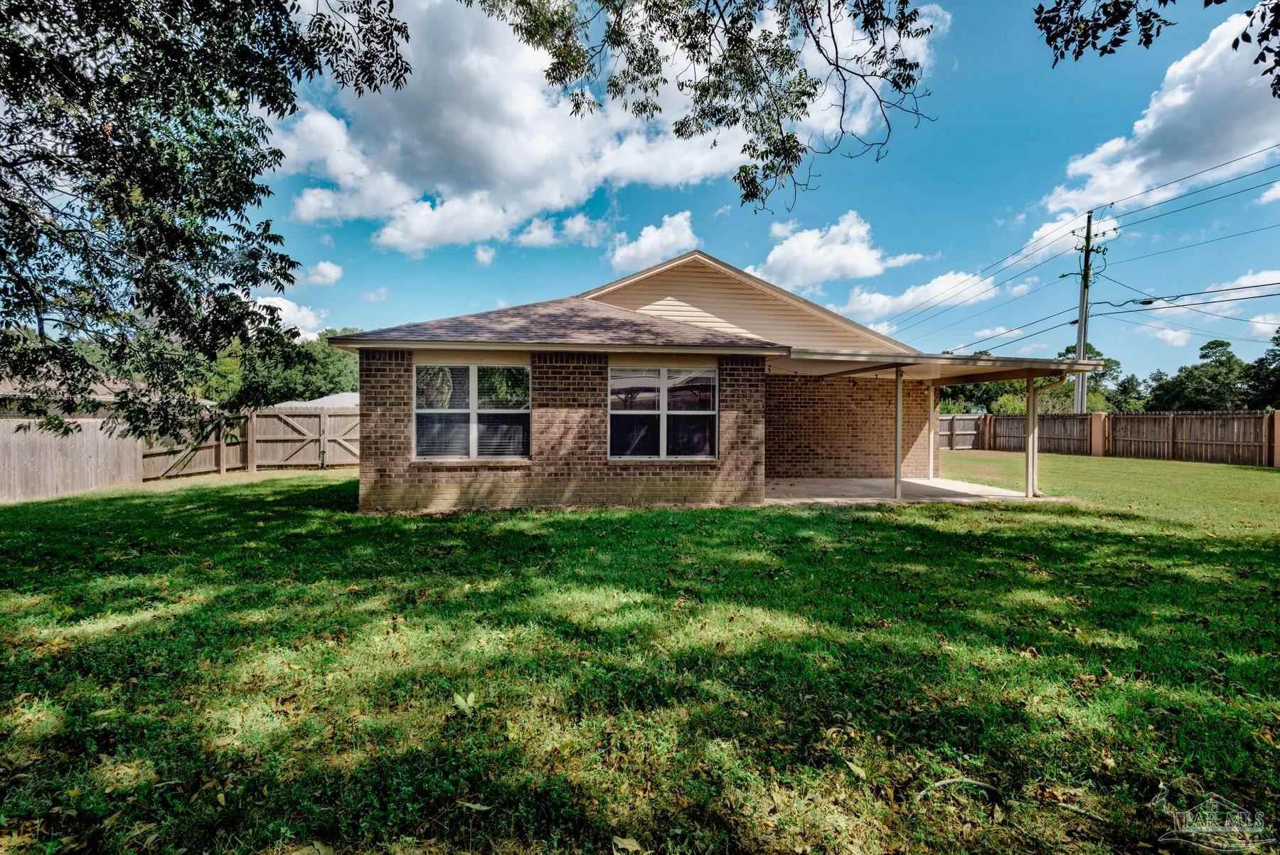 This 4-bedroom, 2-bath brick home is move-in ready with practical updates and a layout that works beautifully for today’s lifestyles. The open floorplan connects the kitchen, dining, and living areas into a central hub for daily life and entertaining, while still offering a sense of privacy for the home’s occupants. Just off the great room, a bonus space feels right for a playroom, home office, or cozy reading nook, with direct access to the covered patio. Bright bedrooms and a thoughtful layout allow for easy living, whether you’re raising a family or need defined spaces for hobbies or work. Recent upgrades bring peace of mind, including a brand-new roof and water heater in 2025, plus newer kitchen appliances just a couple of years old. The large fenced backyard features mature trees that add shade and character, offering plenty of room for pets, play, or the outdoor oasis you envision. Located in a stable neighborhood with highly regarded schools, this home offers a welcoming blend of comfort, convenience, and community in the heart of Cantonment.