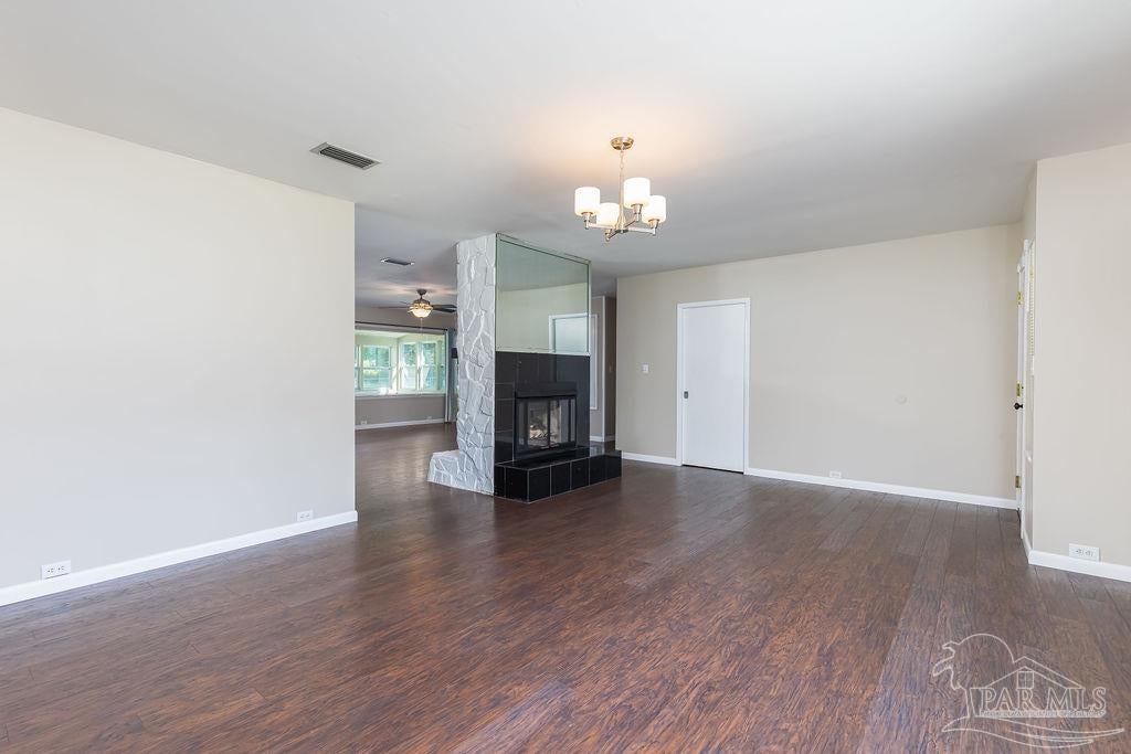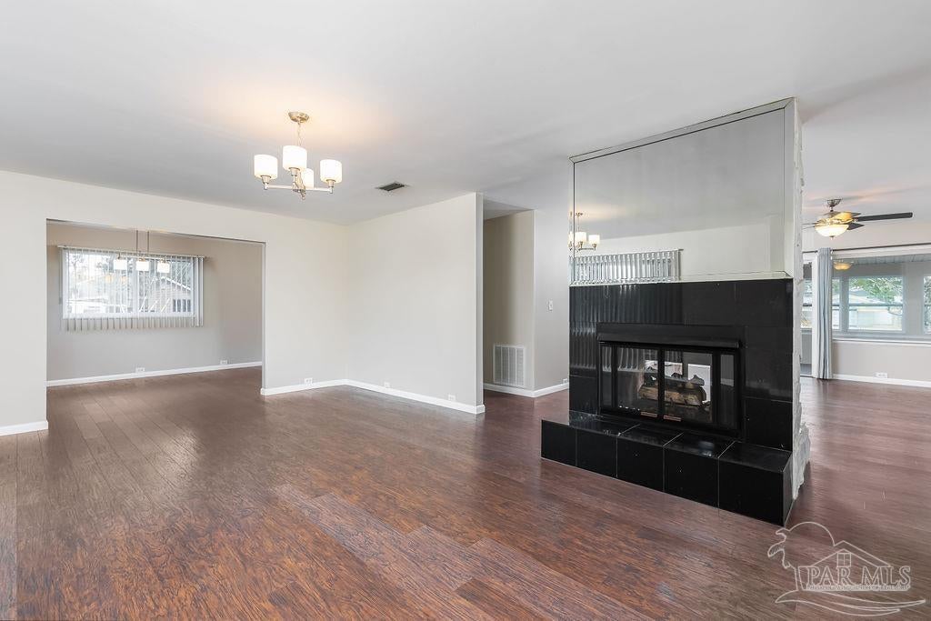 Located at the corner of 74th Ave and W Jackson St., this well maintained and beautifully updated 4 bedroom, 2.5 bathroom ranch style home- sitting on a generous 0.78-acre corner lot- rests in a friendly neighborhood. With timeless curb appeal featuring cedar accent columns, shutters, a two-car garage, and two parking pads for plenty of parking or even an RV/camper- this home combines character with modern design and utility. Inside, you’ll find a freshly painted interior throughout, luxury vinyl flooring throughout the living areas with ceramic tile in the kitchen and bathrooms, and recessed lighting. The large kitchen is perfect for gathering—complete with white cabinets, granite countertops, brushed gold hardware, and a central island/breakfast bar. You'll love the massive indoor laundry room featuring plenty of storage, and pantry right off the kitchen. A formal dining room is conveniently located just through the kitchen, ideal for entertaining. At the heart of the home are two spacious living areas divided by a stunning floating fireplace, creating both warmth and versatility. From there, step into the enclosed, heated & cooled, Florida room separated by a sliding glass door with its own wood burning fireplace—perfect for year-round relaxation. The bedrooms are generously sized, offering comfort and ample storage throughout the home- pocket doors galore. The hallway bathroom boasts plenty of space, including room for a makeup vanity or additional customization. All major systems in this home have been recently updated, including: new water heater, freshly blown attic insulation, all vinyl double pane windows, new soffit & fascia, a 2018 roof equipped with ice & water shield, and equipped with an ADT security system. With nearly an acre of land fenced in, outdoor possibilities are endless—whether for gardening, play, or simply enjoying the peaceful setting. This home checks all the boxes: style, space, and setting. Don’t miss the chance to make it yours!