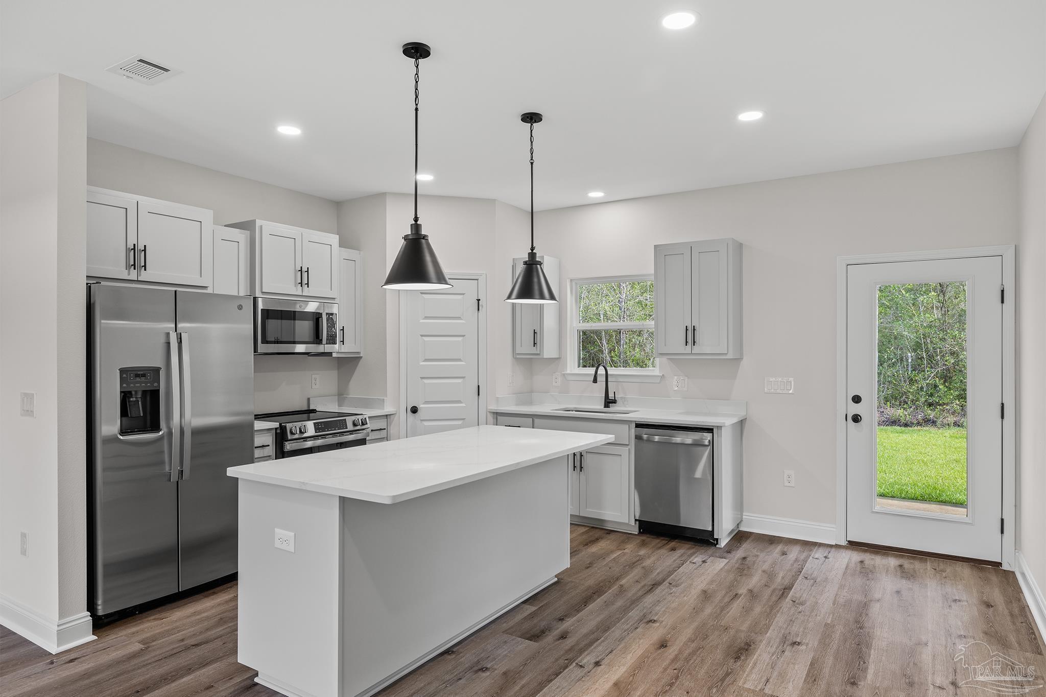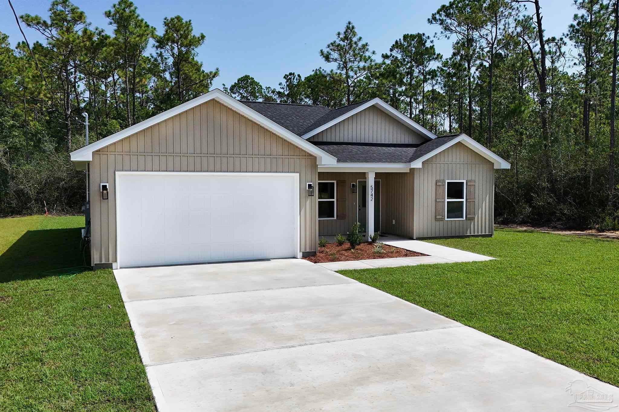 Step into the light—literally. This brand-new, split floorplan 3-bed, 2-bath was designed to soak up the Florida sun with its north-facing open-concept layout. From the moment you walk in, you’re greeted with clean lines, airy vibes, and natural light that flows from room to room like it was meant to be there. The kitchen is dialed in with quartz countertops that run throughout the home, tying it all together with a modern, elevated feel. The primary suite is its own vibe—featuring a large walk-in closet and the kind of bathroom that makes mornings feel like a reset. But here’s the magic: You’re 3 minutes from I-10, 18 minutes to downtown, 25 minutes to the white sands of Pensacola Beach, and 30 minutes from the trails and rivers of BlackwaterState Forest. Whether you're headed out for surf, city, or serenity—you’re right in the pocket. New construction means lower bills and less to worry about. Ask about builder incentives that make it even easier to own your brand new home before the holidays.