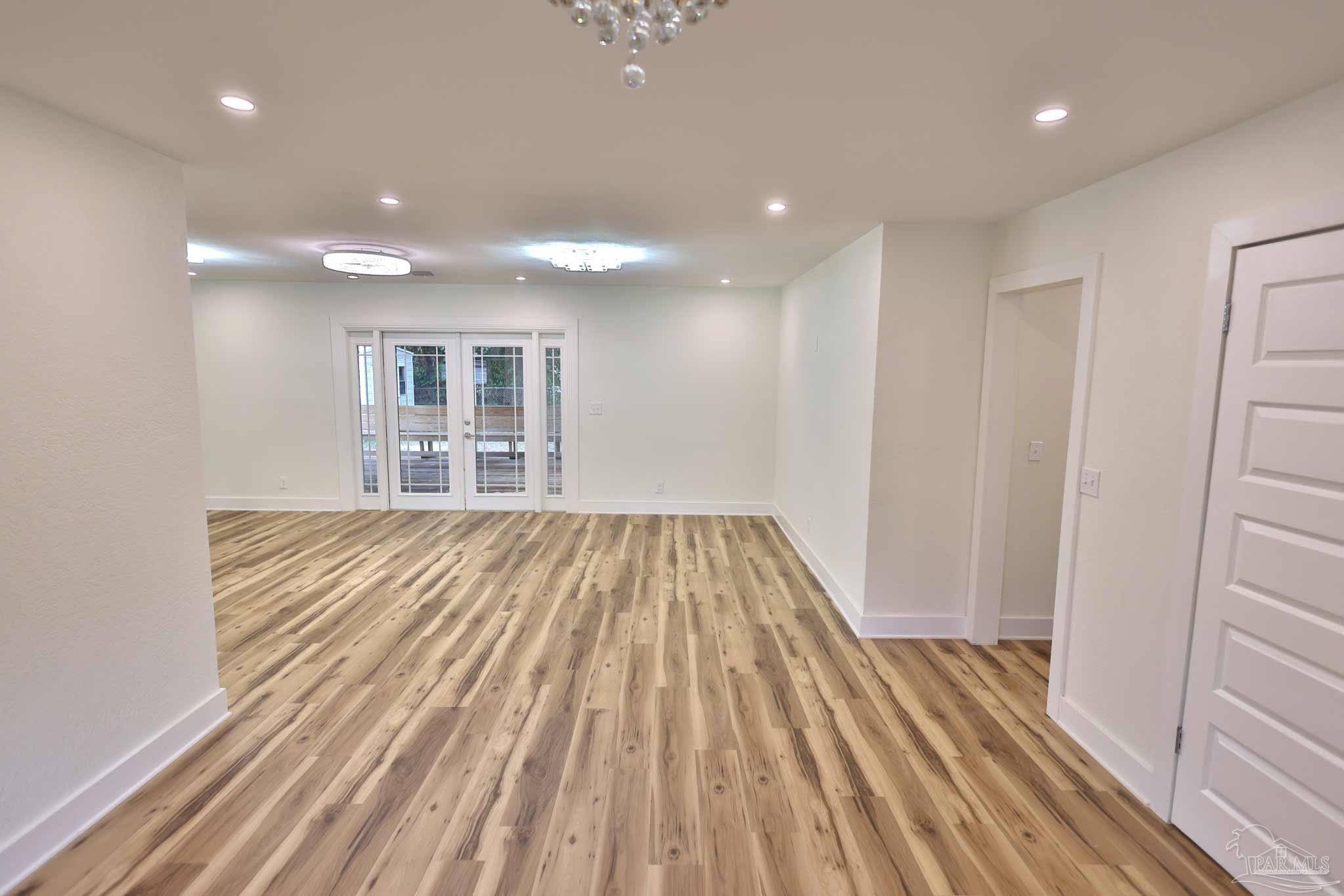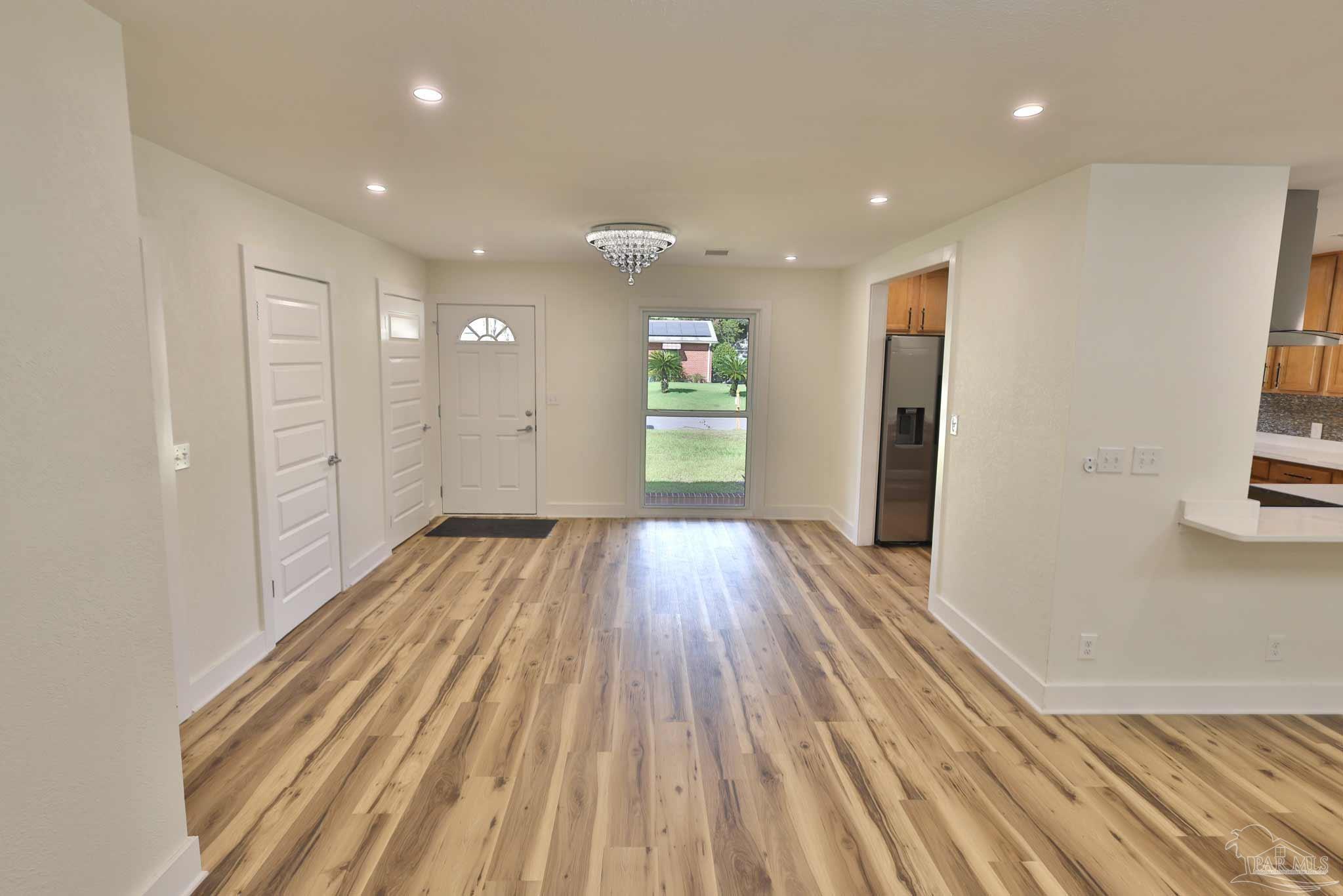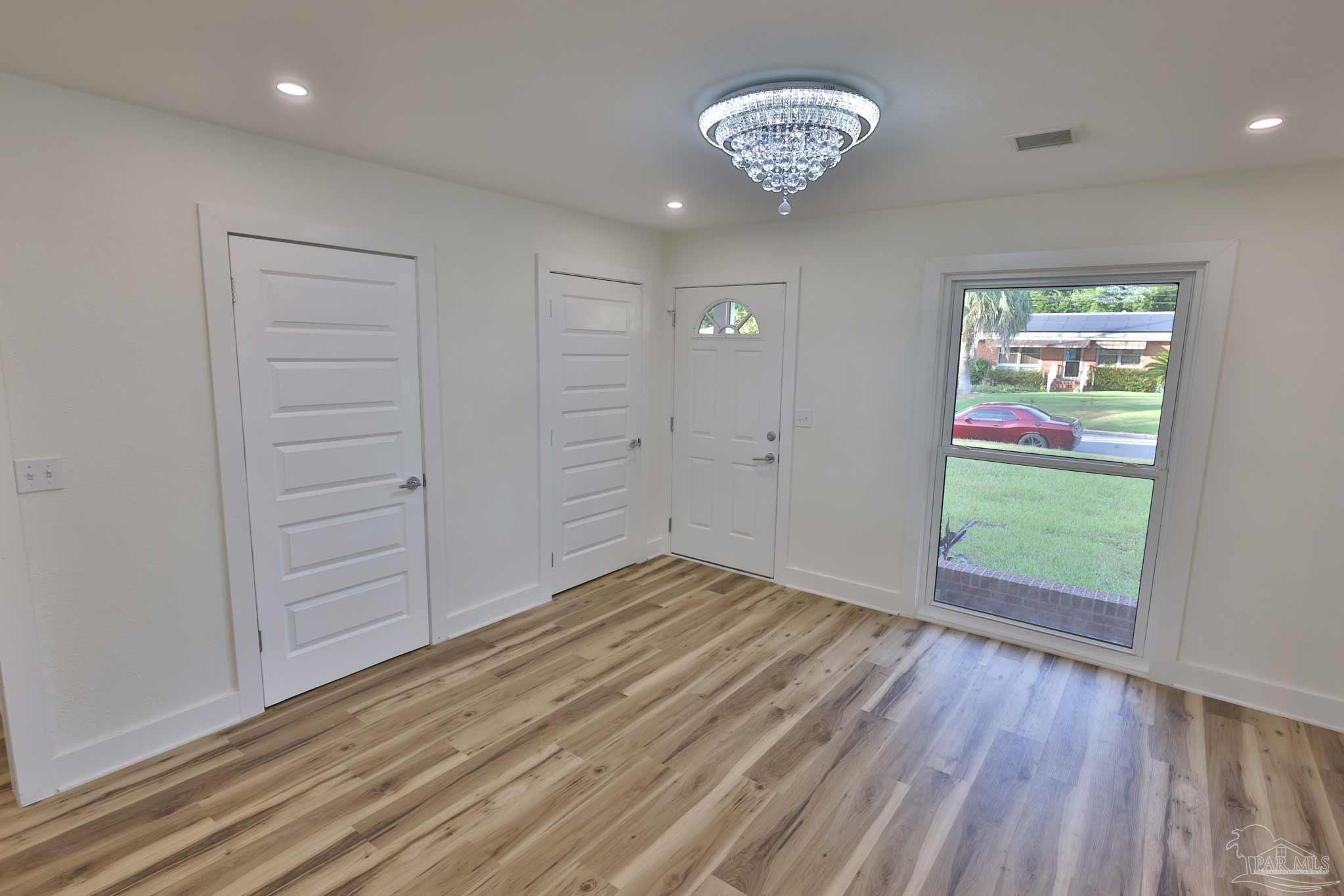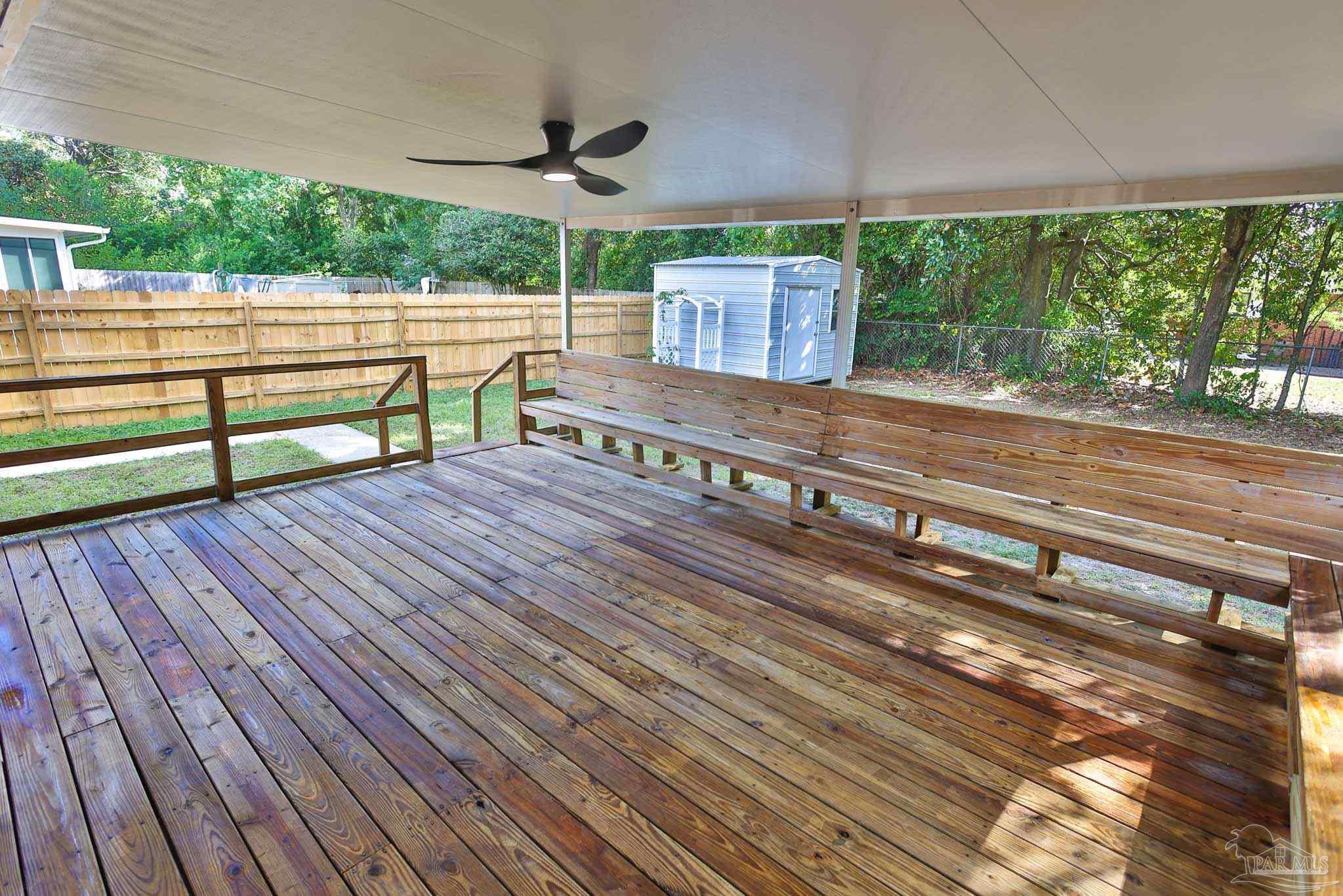 Welcome to your fully renovated dream home in Scenic Heights! No HOA! This stunning 3-bedroom, 2-bath home features an open floor plan, brand-new flooring, designer light fixtures, and chandelier ceiling fans with remote & WiFi control. The luxury kitchen boasts high-end cabinets, quartz countertops, a unique shell backsplash, modern range hood, new appliances, and elegant chandeliers—perfect for entertaining. Both bathrooms are spa-inspired, with floor-to-ceiling matching tile, Bluetooth exhaust fans with speakers, and customizable lighting you can control from your phone. A spacious bonus room with fireplace and private entrance offers endless possibilities: man cave, media/game room, studio apartment, or in-law suite. The large laundry room includes great storage and pantry space. Step outside to a large covered deck with built-in seating and ceiling fan—perfect for entertaining or simply relaxing. The generous backyard offers space to add a pool, plus a large metal shed for storage. Updates include a brand-new roof and privacy fence (coming soon). Located in one of Pensacola’s best neighborhoods—close to schools, hospitals, shopping, and downtown—this home is completely move-in ready. Schedule your showing today!
