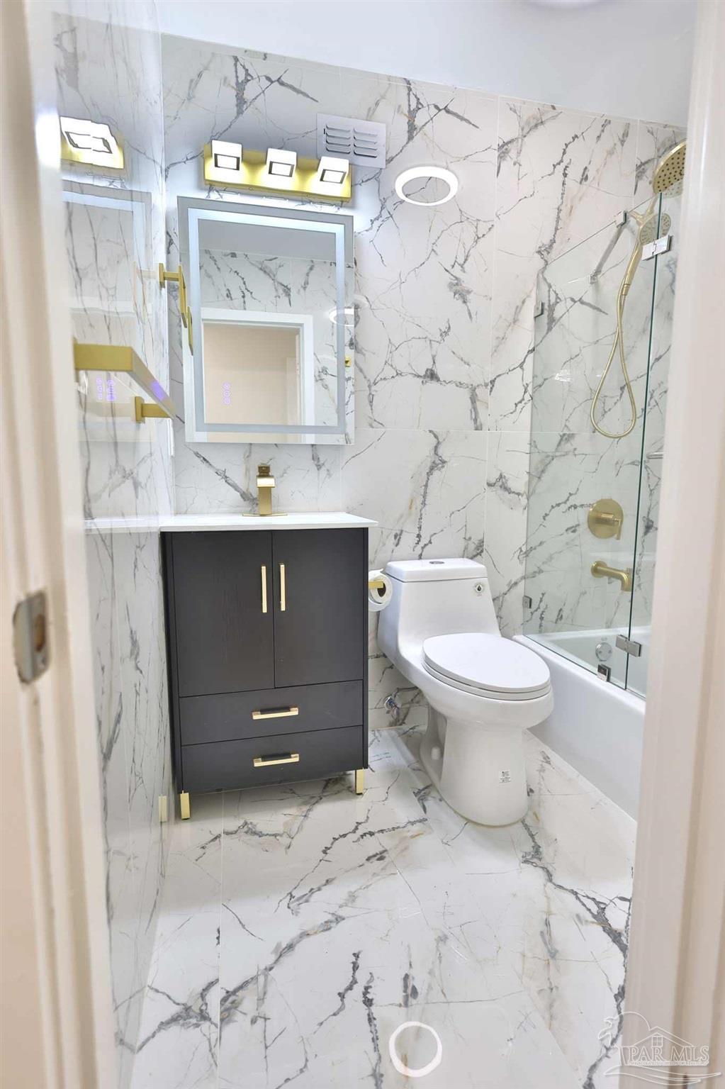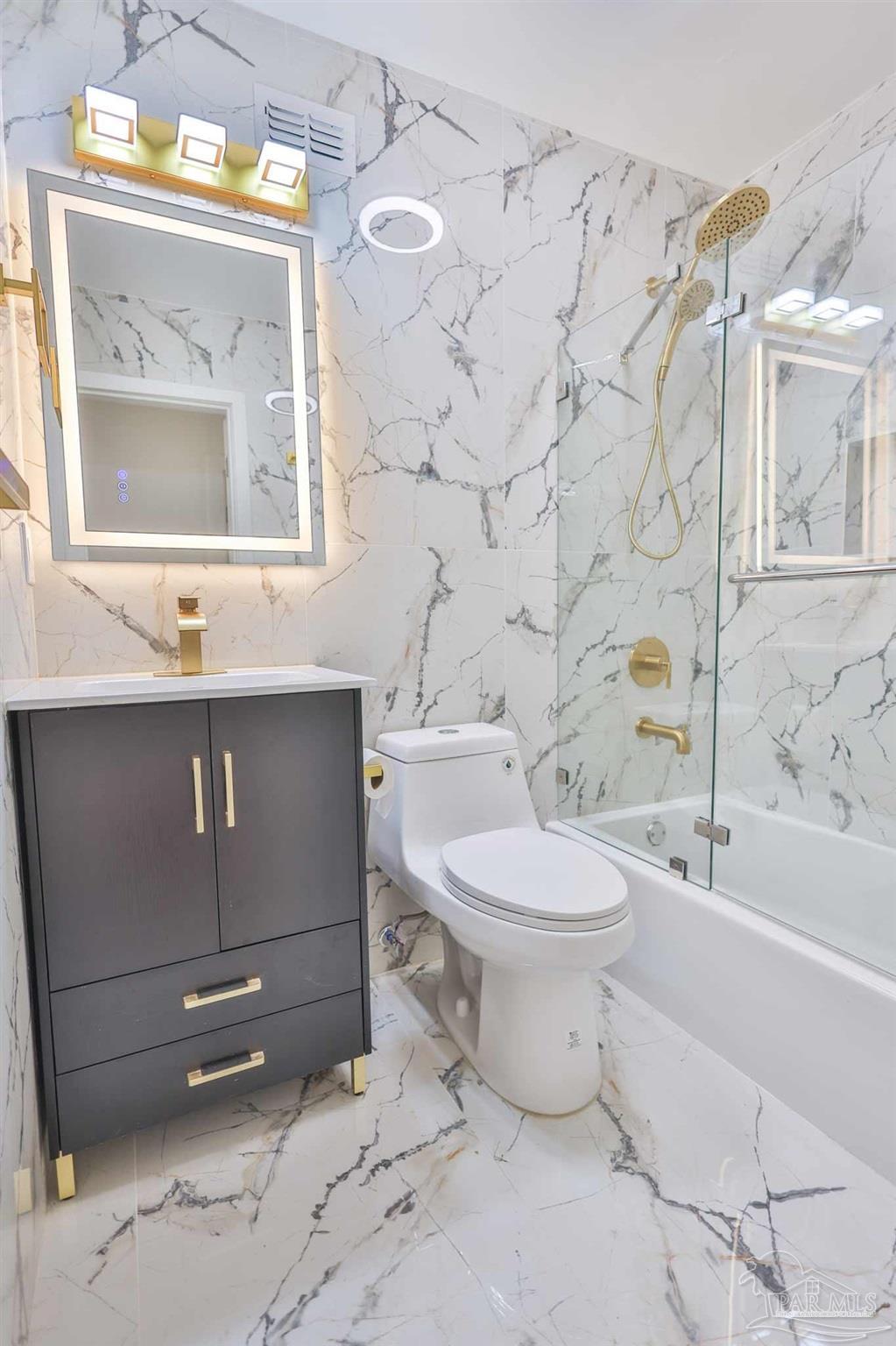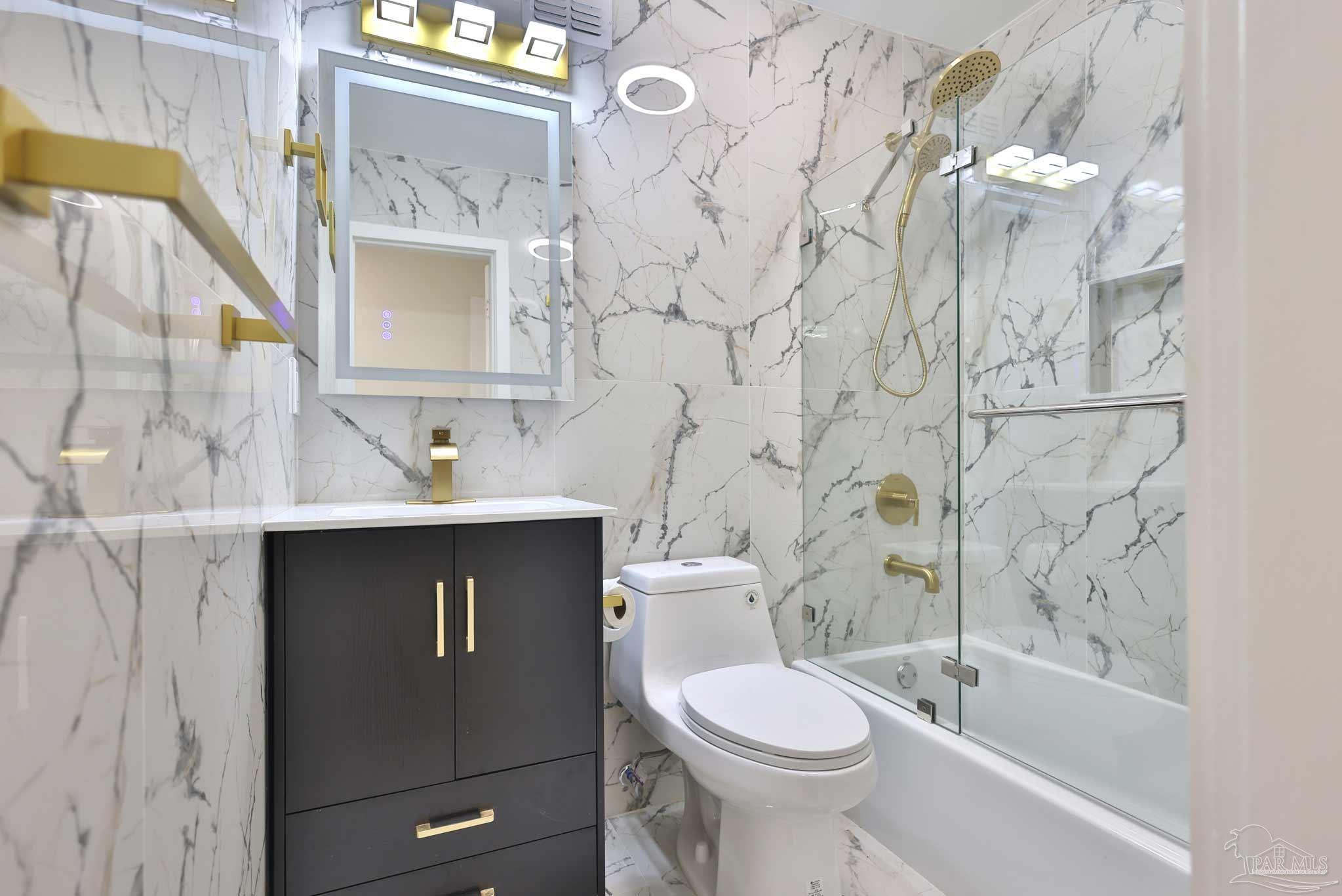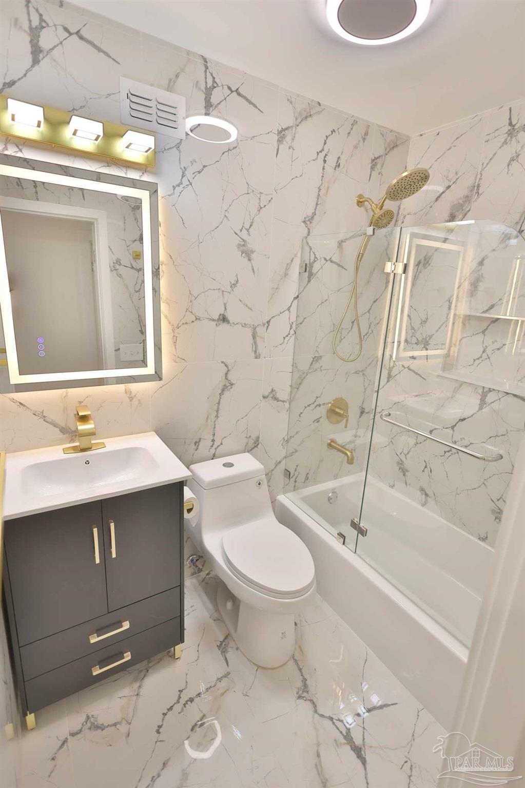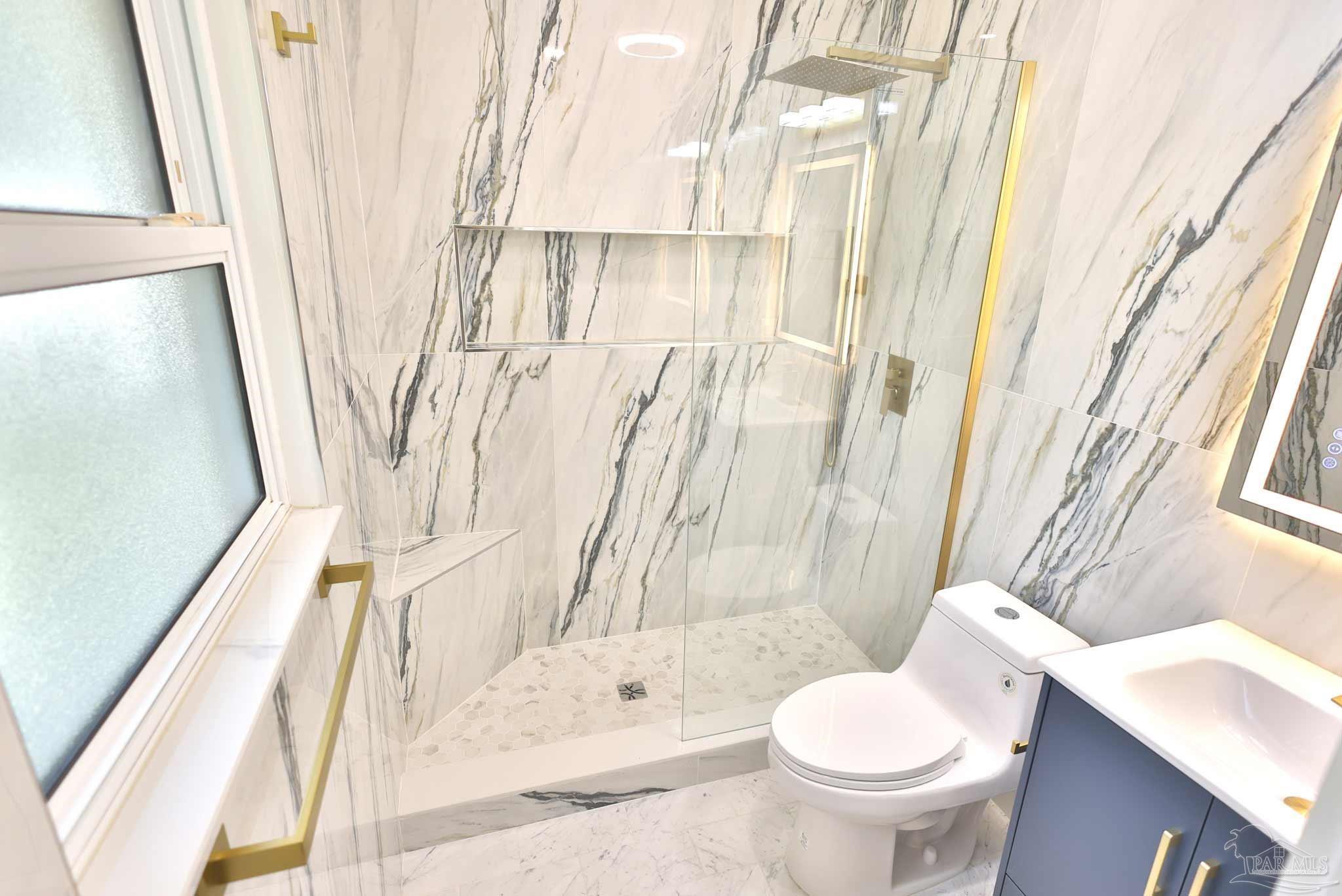 Welcome to your fully renovated dream home in Scenic Heights! No HOA! This stunning 3-bedroom, 2-bath home features an open floor plan, brand-new flooring, designer light fixtures, and chandelier ceiling fans with remote & WiFi control. The luxury kitchen boasts high-end cabinets, quartz countertops, a unique shell backsplash, modern range hood, new appliances, and elegant chandeliers—perfect for entertaining. Both bathrooms are spa-inspired, with floor-to-ceiling matching tile, Bluetooth exhaust fans with speakers, and customizable lighting you can control from your phone. A spacious bonus room with fireplace and private entrance offers endless possibilities: man cave, media/game room, studio apartment, or in-law suite. The large laundry room includes great storage and pantry space. Step outside to a large covered deck with built-in seating and ceiling fan—perfect for entertaining or simply relaxing. The generous backyard offers space to add a pool, plus a large metal shed for storage. Updates include a brand-new roof and privacy fence (coming soon). Located in one of Pensacola’s best neighborhoods—close to schools, hospitals, shopping, and downtown—this home is completely move-in ready. Schedule your showing today!