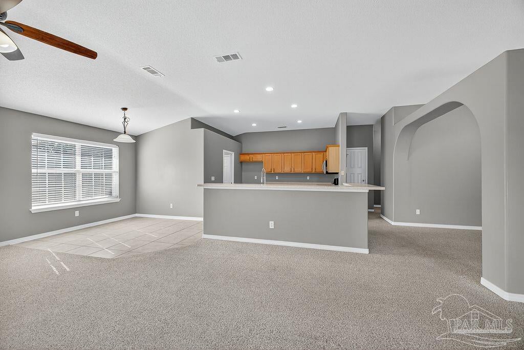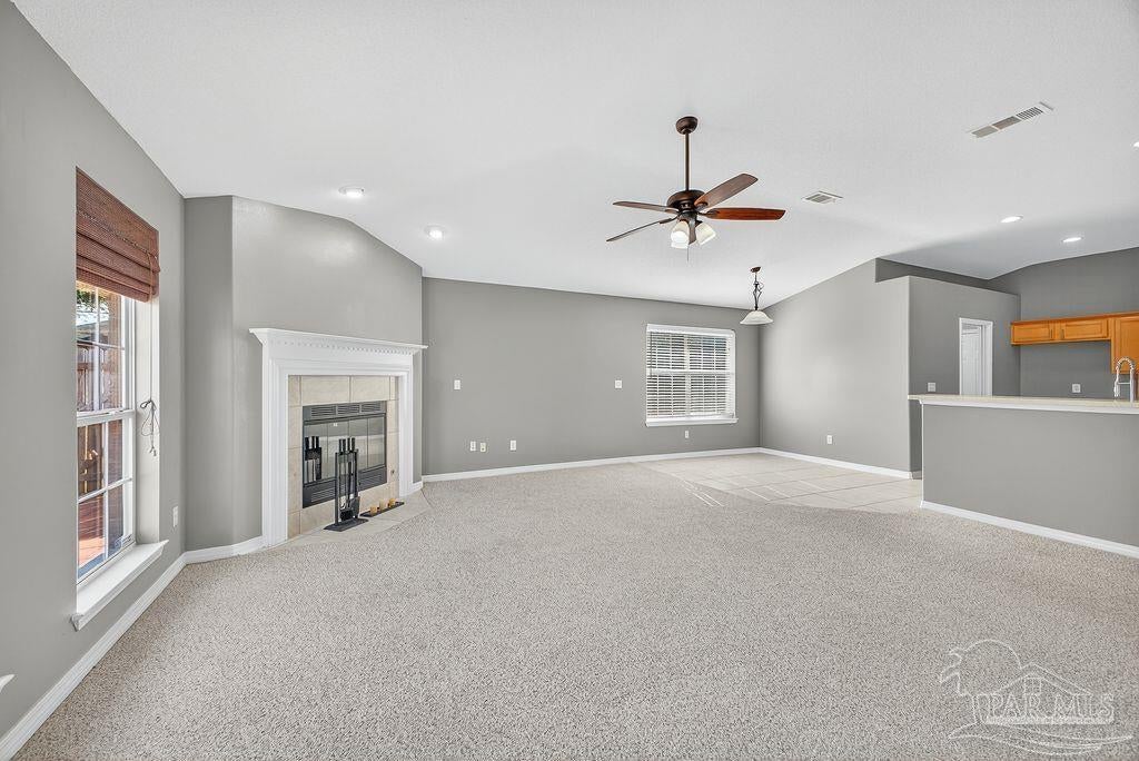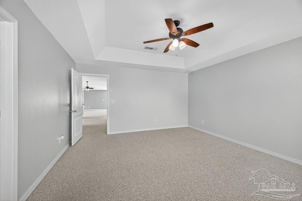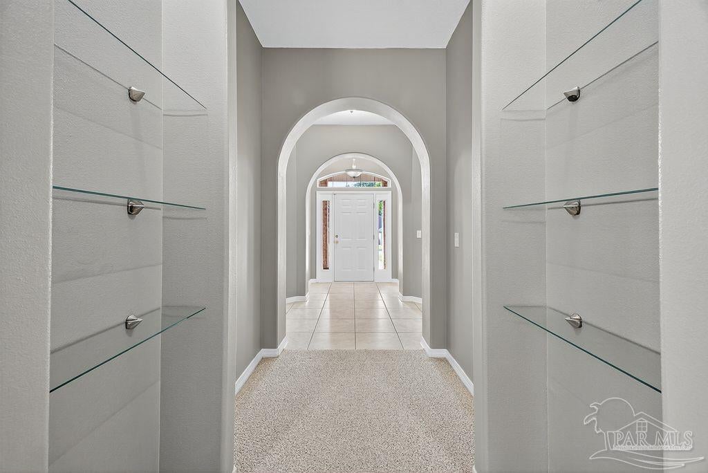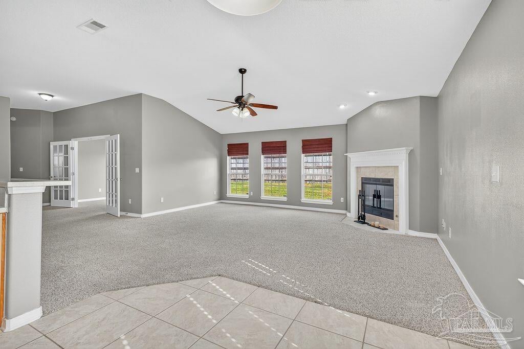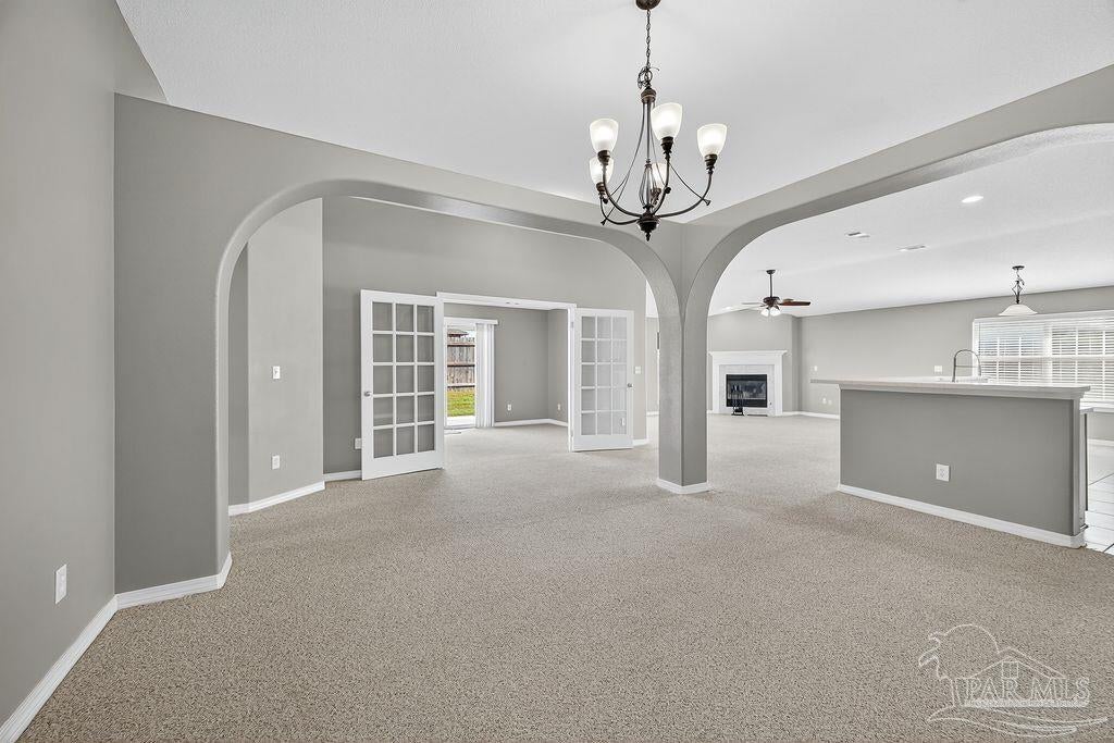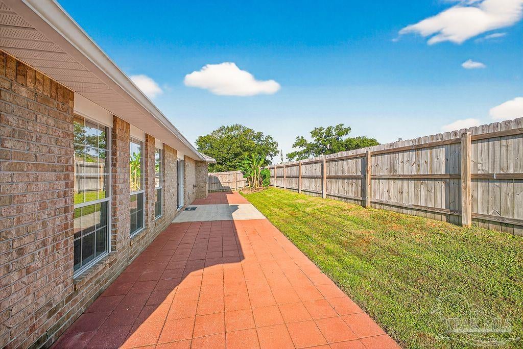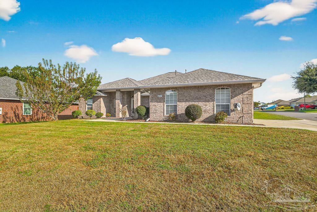 This breathtaking 2,589 sq. ft. all-brick home is perfectly situated on a premium corner lot in a well-established and peaceful neighborhood. Featuring 4 spacious bedrooms and 2.5 bathrooms; this home offers a thoughtfully designed layout that provides ample space for comfortable living and elegant entertaining. Step onto the inviting covered front porch and into a warm foyer, where you'll find a private study with French doors and a formal dining room—ideal for working from home or hosting family dinners. The living room/family room features a cozy fireplace, creating a warm and inviting atmosphere perfect for gatherings during any season. Dream Kitchen Highlights: Abundant cabinet and countertop space Central island for food prep and casual meals Breakfast nook for relaxed morning dining Stainless steel gas range, mounted microwave, and dishwasher Convenient pantry Opens into both the formal dining area and a spacious family room, ideal for entertaining and everyday living A convenient half bath is located just off the foyer. Interior Features: Beautiful carpet flooring in the main living areas for comfort and easy care Spacious owner’s suite with box ceiling and ceiling fan Owner's bath includes: Large walk-in closets Garden tub Separate shower Double vanity with stylish countertops Linen closet for additional storage The three additional bedrooms are generously sized and share a well-appointed full bathroom. Exterior & Additional Features: Fully sodded yard with a sprinkler system, Three-car garage with two garage doors, Roof replaced in 2025, offering peace of mind for years to come. Prime Location: This home is conveniently located near: NAS Pensacola, Perdido Beach, Pensacola Beach, And many other local amenities, shopping, and dining options Don't miss the opportunity to own this exceptional home that combines space, comfort, and location!